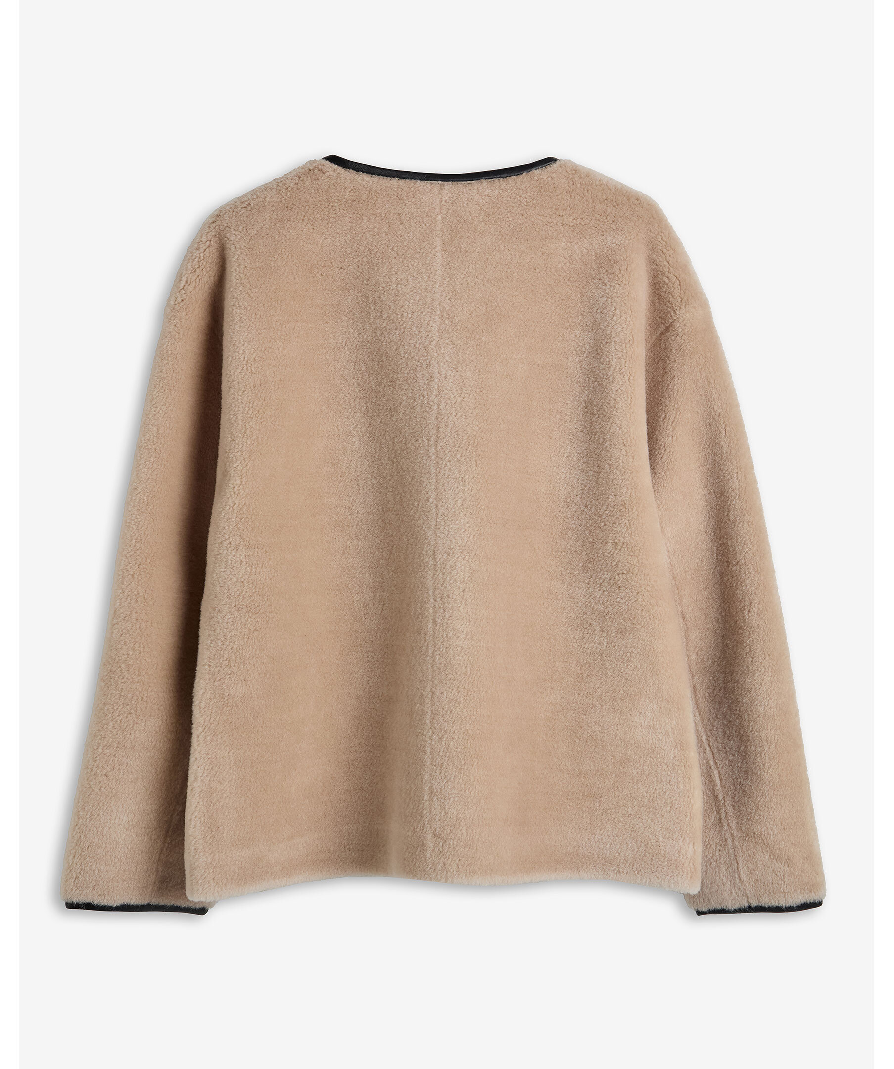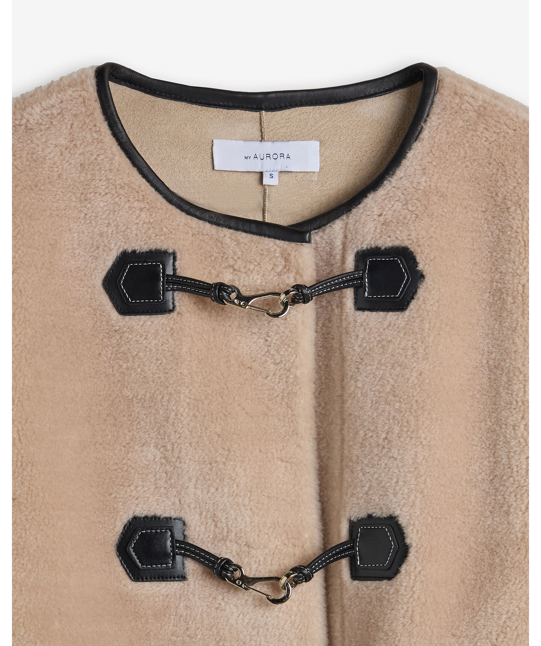 Sandfärgad jacka från My Aurora – en lyxig damjacka i fuskpäls som förenar stil och värme på ett elegant sätt. Jackan har en mjuk och omfamnande struktur, med en avslappnad passform som gör den till ett perfekt ytterplagg för både vardag och fest.