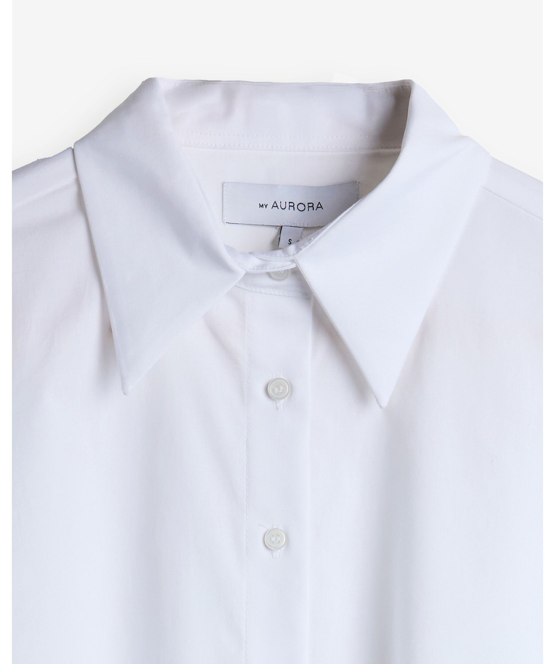 Vit skjorta från My Aurora. Skjortan stängs med knappar och har en spetsig krage. Tillverkad i en bomullsblandning.