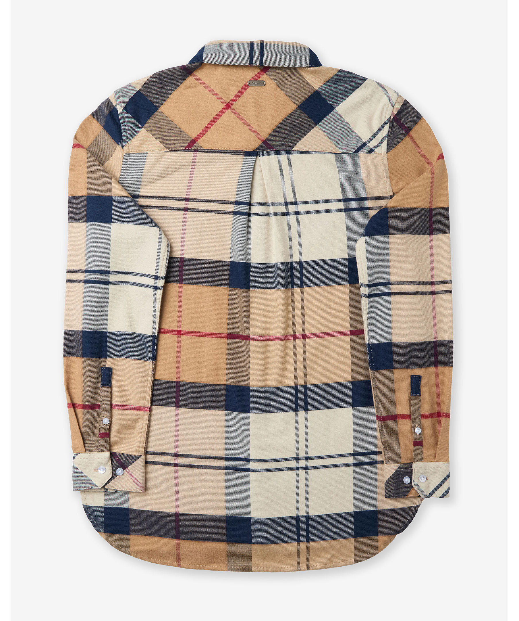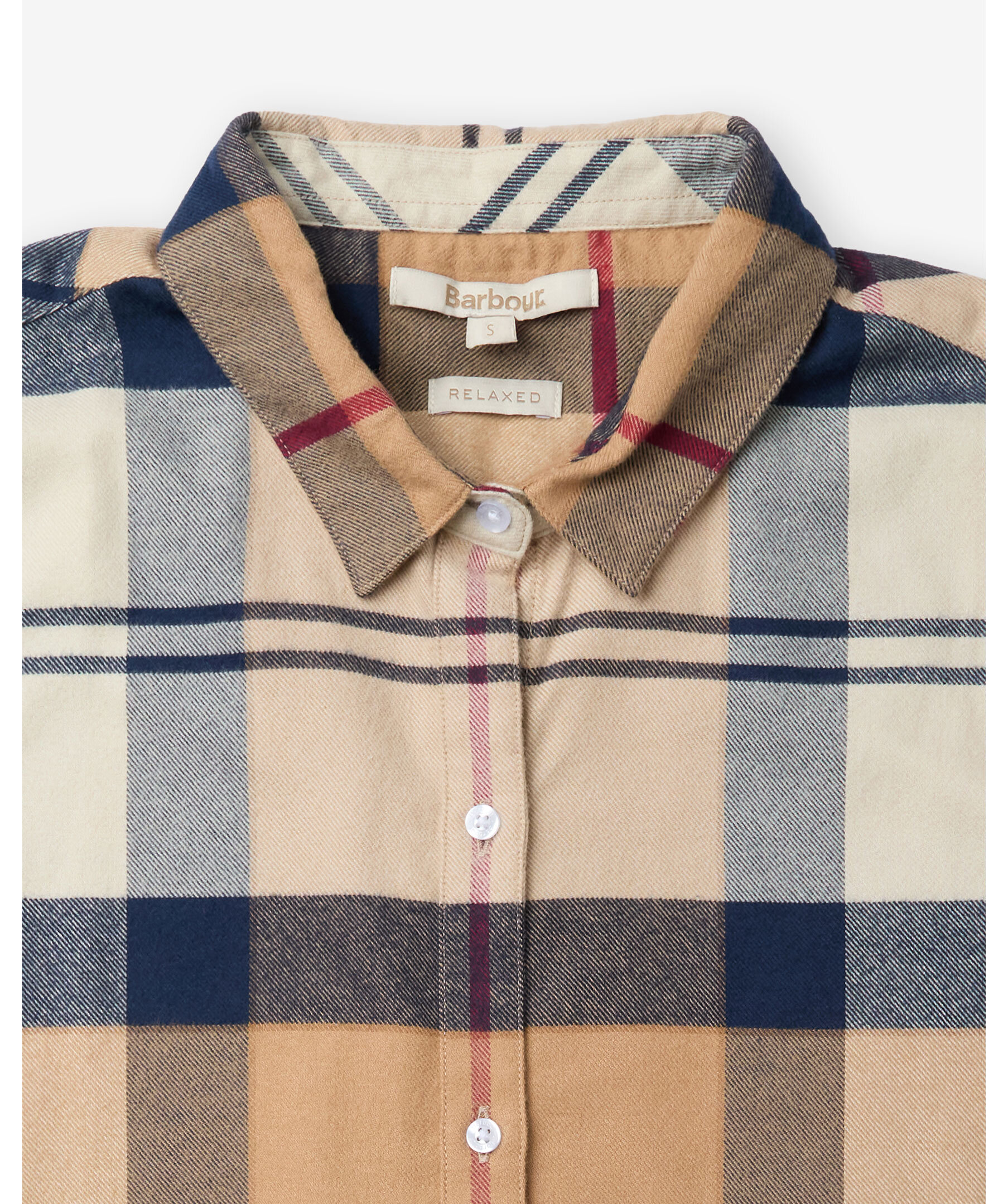 Beige, tartanmönstrad flanellskjorta från Barbour. Skjortan stängs med knappar framtill och har en liten logotyp i metall vid nacken. Tillverkad i ett skönt bomullstyg.