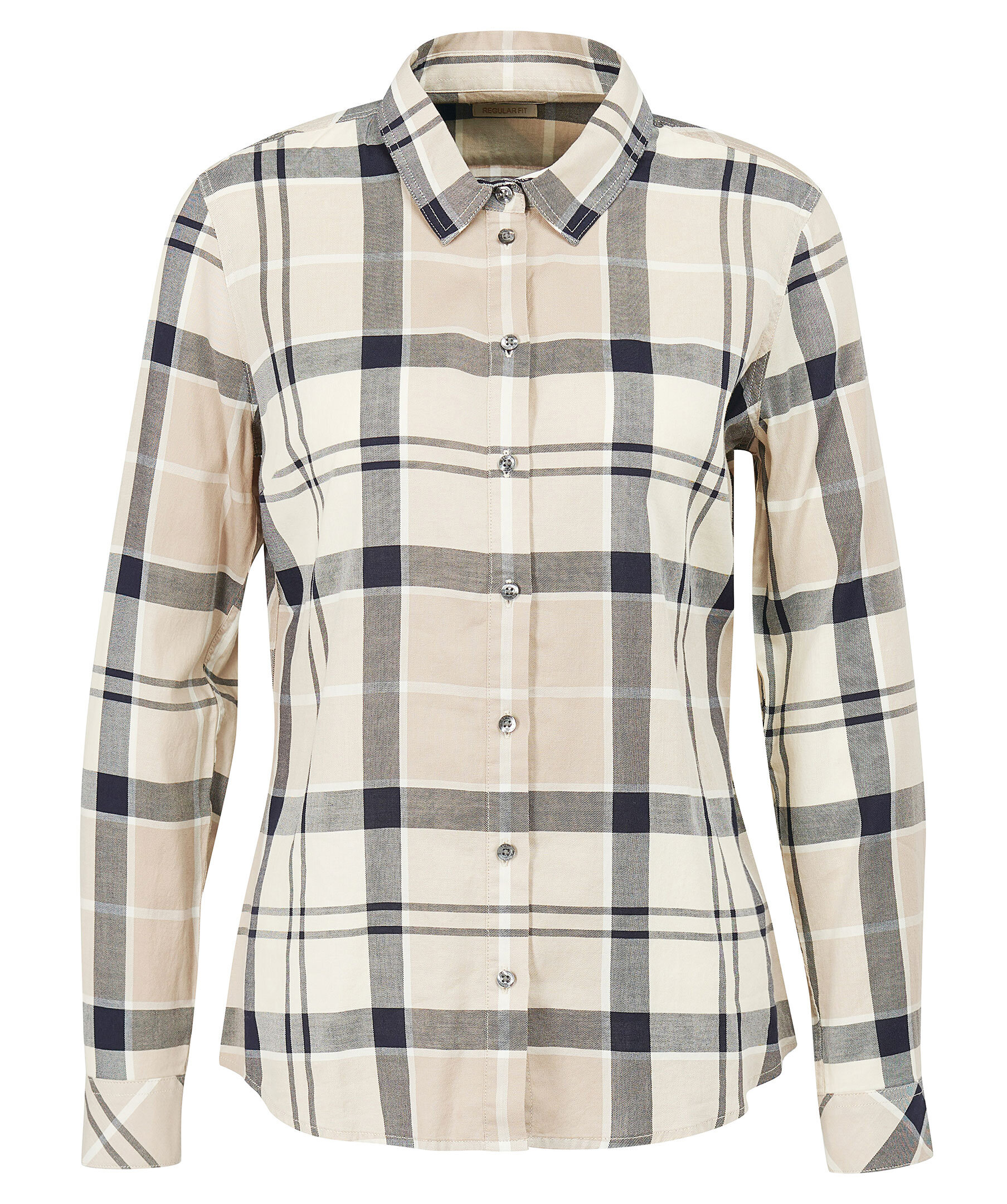 Beige, rutig skjorta från Barbour tillverkat av 100% bomull. Normal passform med långa ärmar och knäppning framtill och i ärmslut. Guldfärgad bricka i metall med logotyp i nacken.