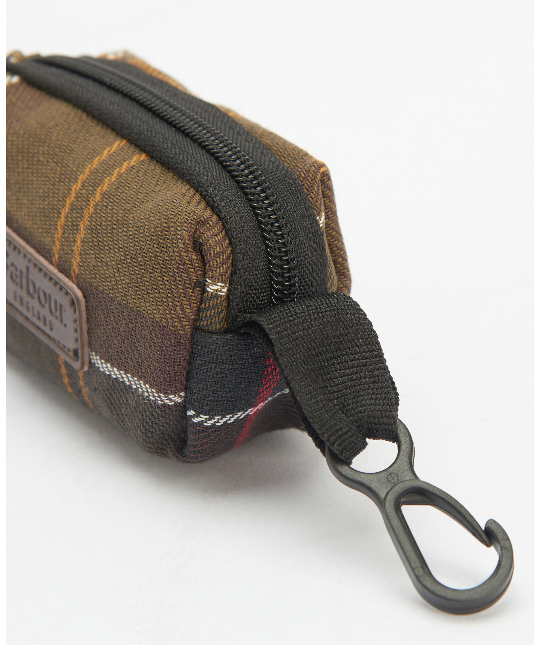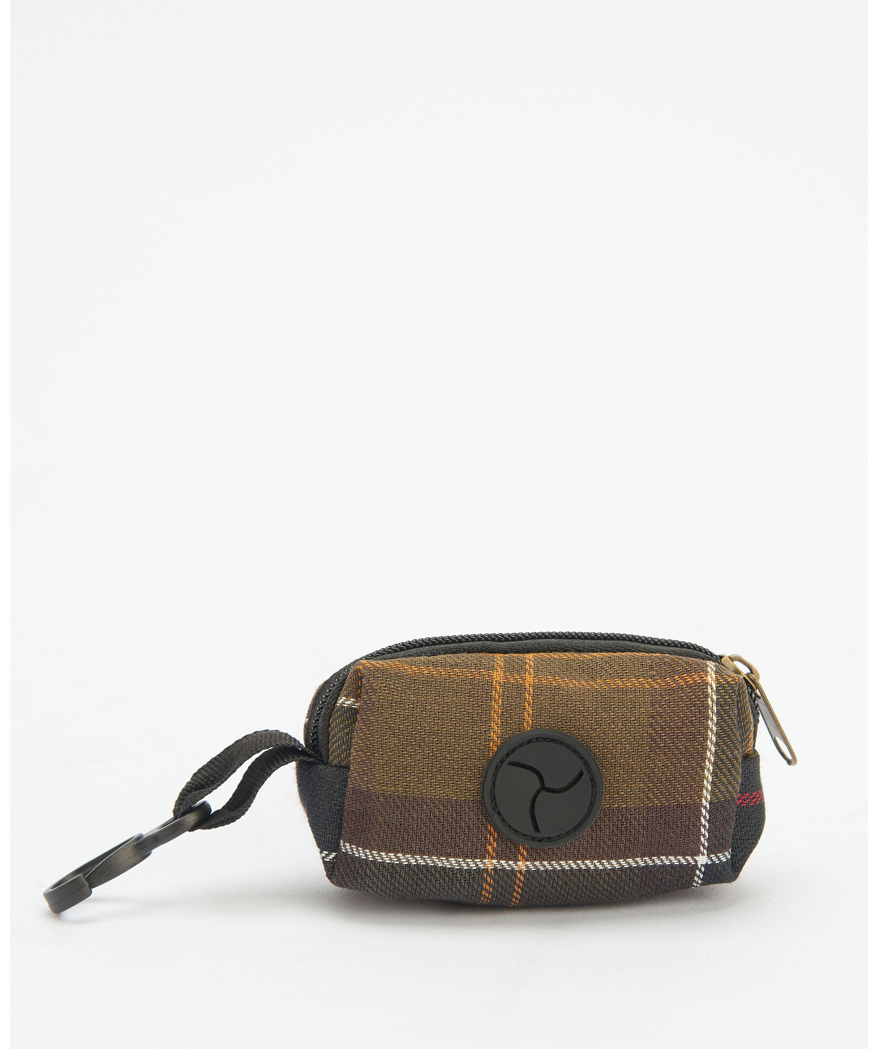 Grön rutigt fodral för påsar till hunden från Barbour. Stängs med dragkedja. Öppning i gummi för enkel åtkomst till påsar. Patch i läder med embossad logotyp. hake i plast för att sätta fast i kopplet. Fodralets mått: B 7 cm X H 6cm.