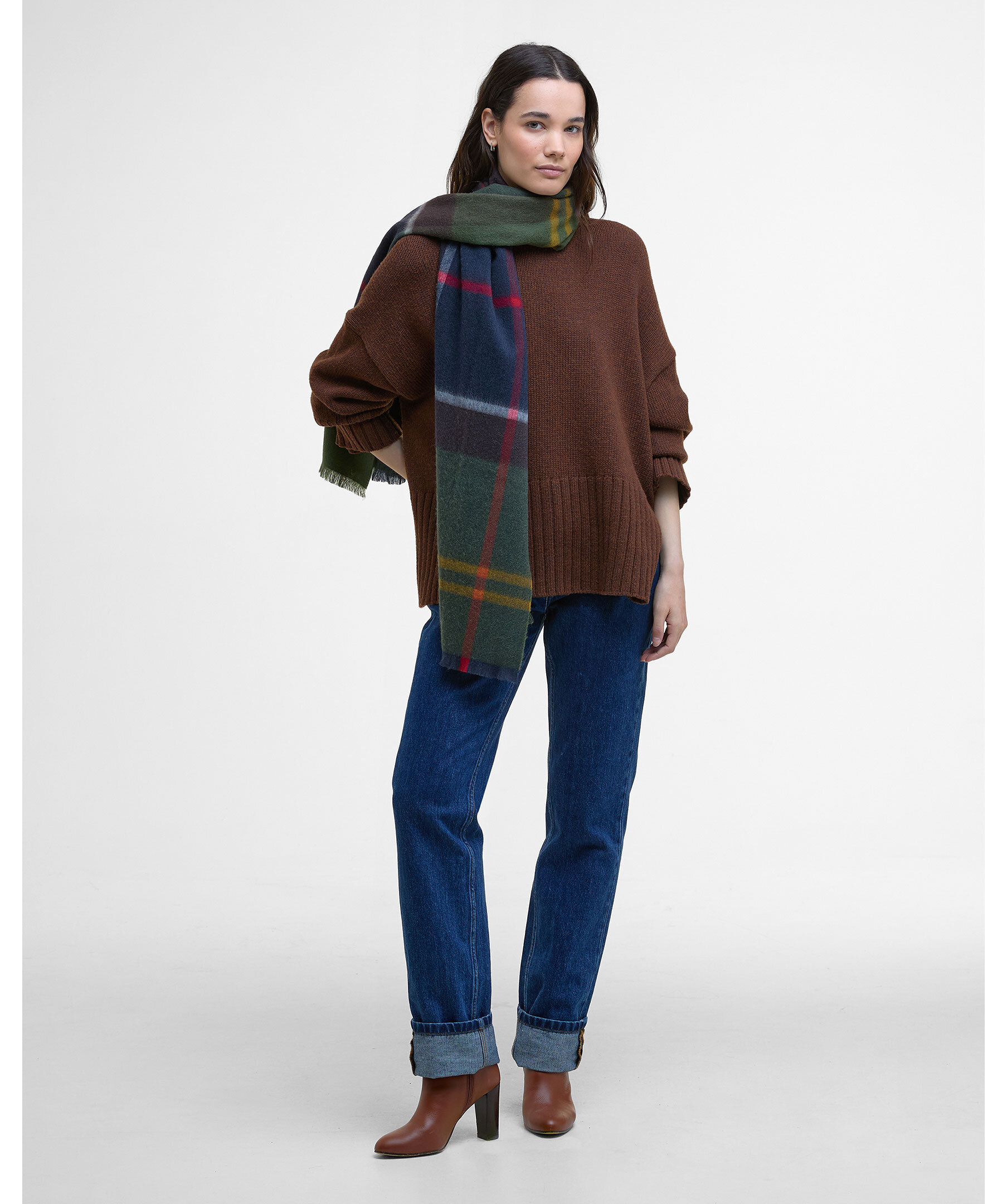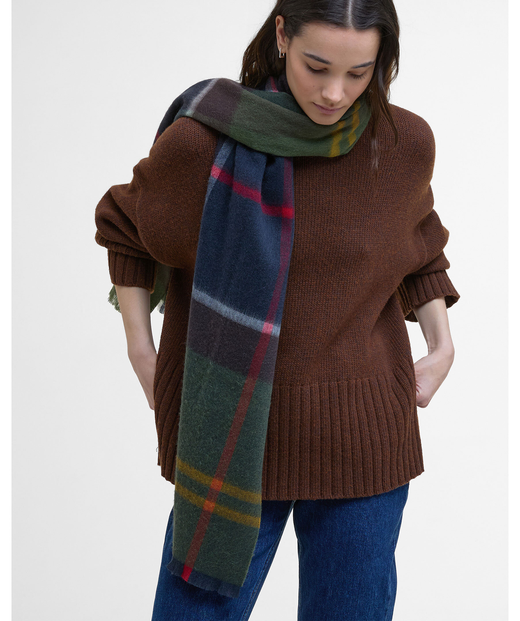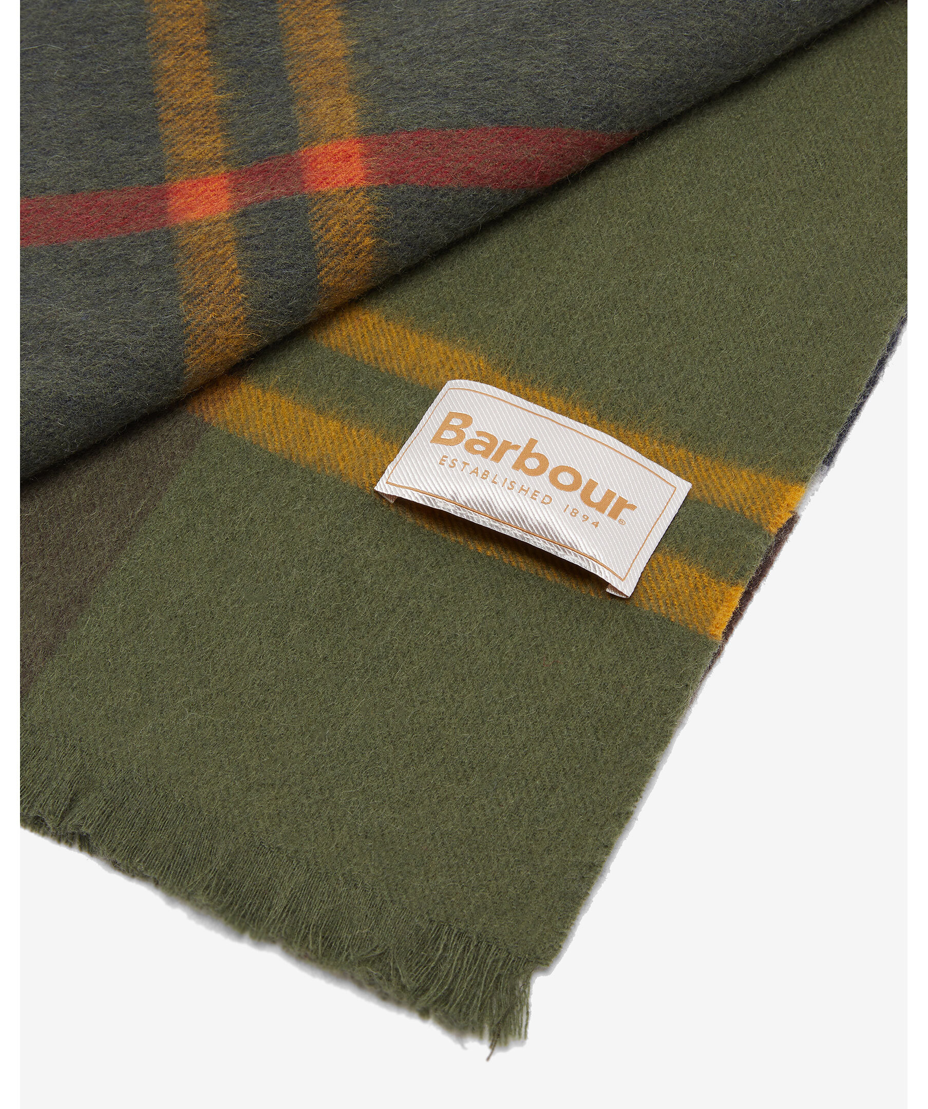 Stilren och värmande halsduk med tartanmönster från Barbour. Vävd i mjukt premium-lammull. Mått: 180cm x 50cm.