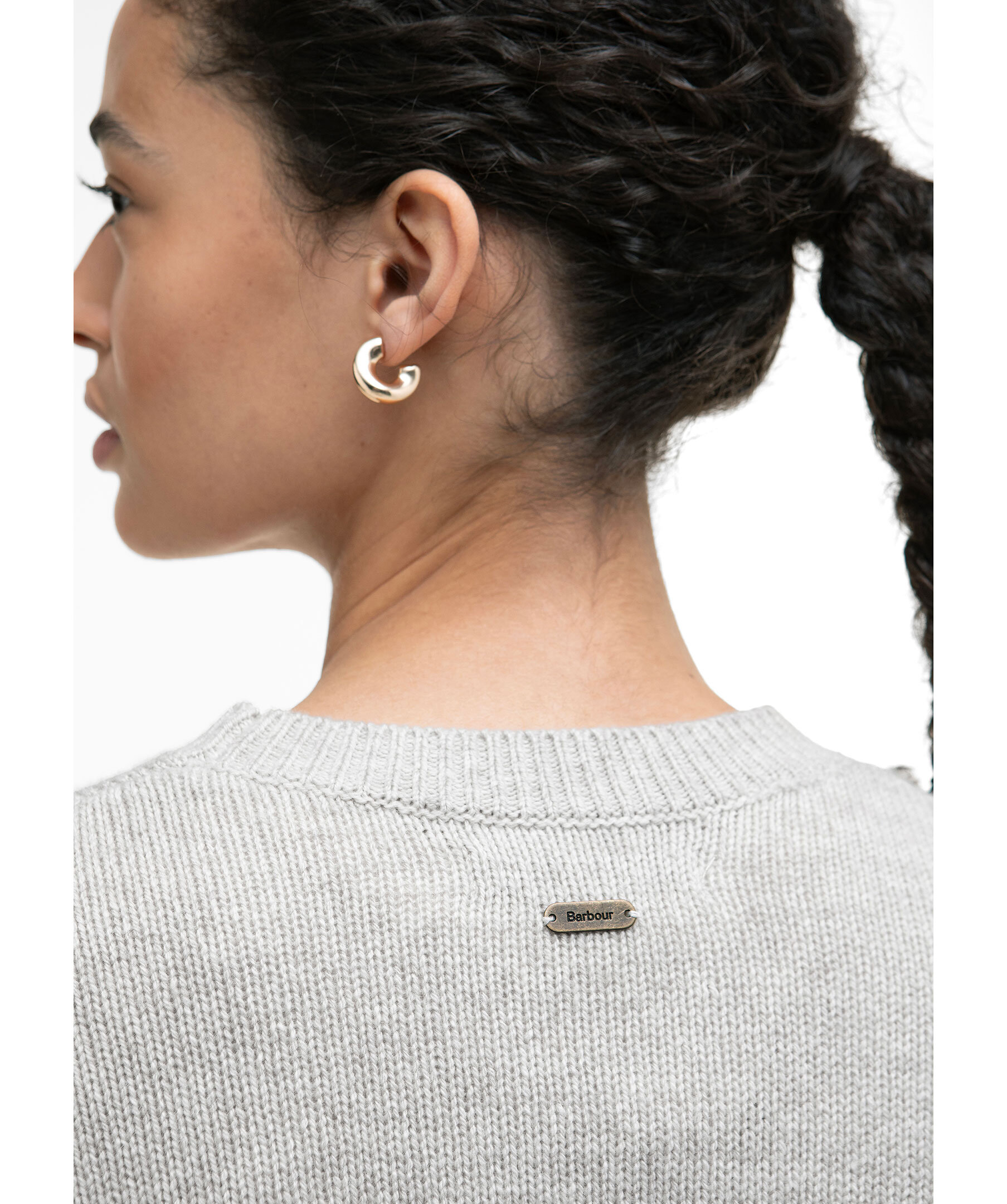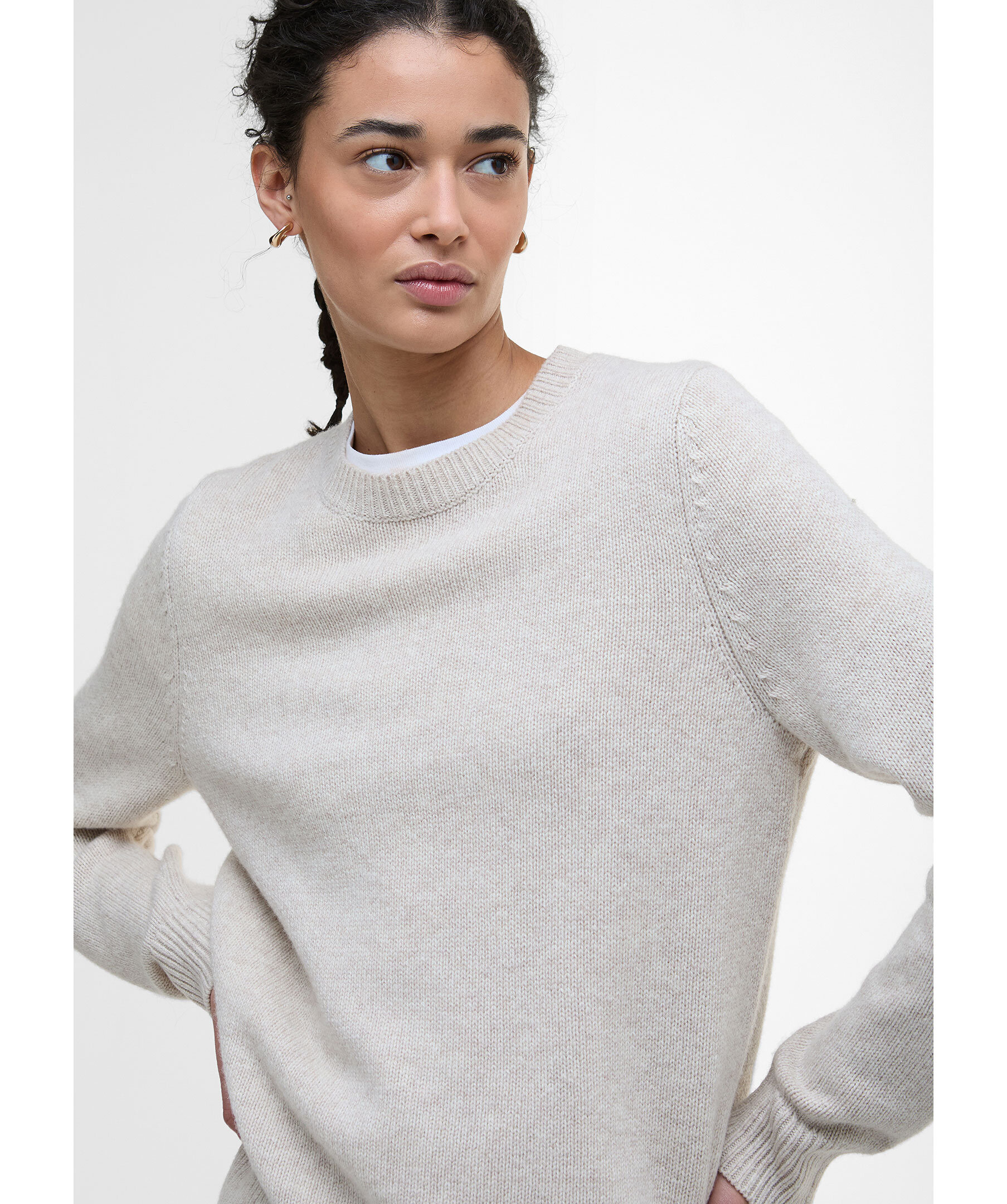 Stickad pullover från Barbour. Tröjan har en rund och ribbstickad halsringning samt ribbstickade muddar vid ärm- och plaggslut. Tillverkad i en ull- och kashmirblandning.
