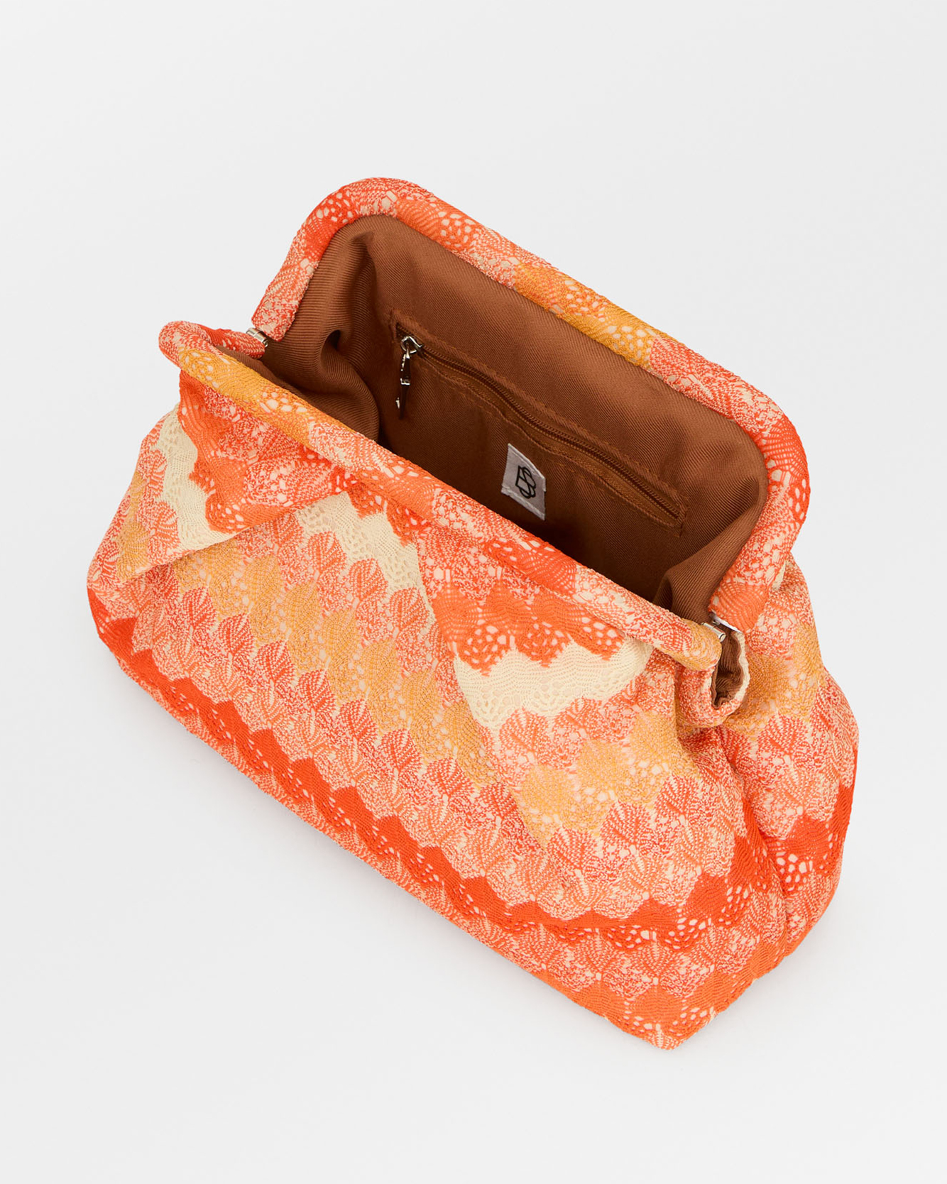 Mönstrad väska från Becksöndergaard Aps. Väskan har en öppning till ett större fack samt en mindre ficka inuti med dragkedja. Tillverkad i polyester. Mått: 26x18 cm.