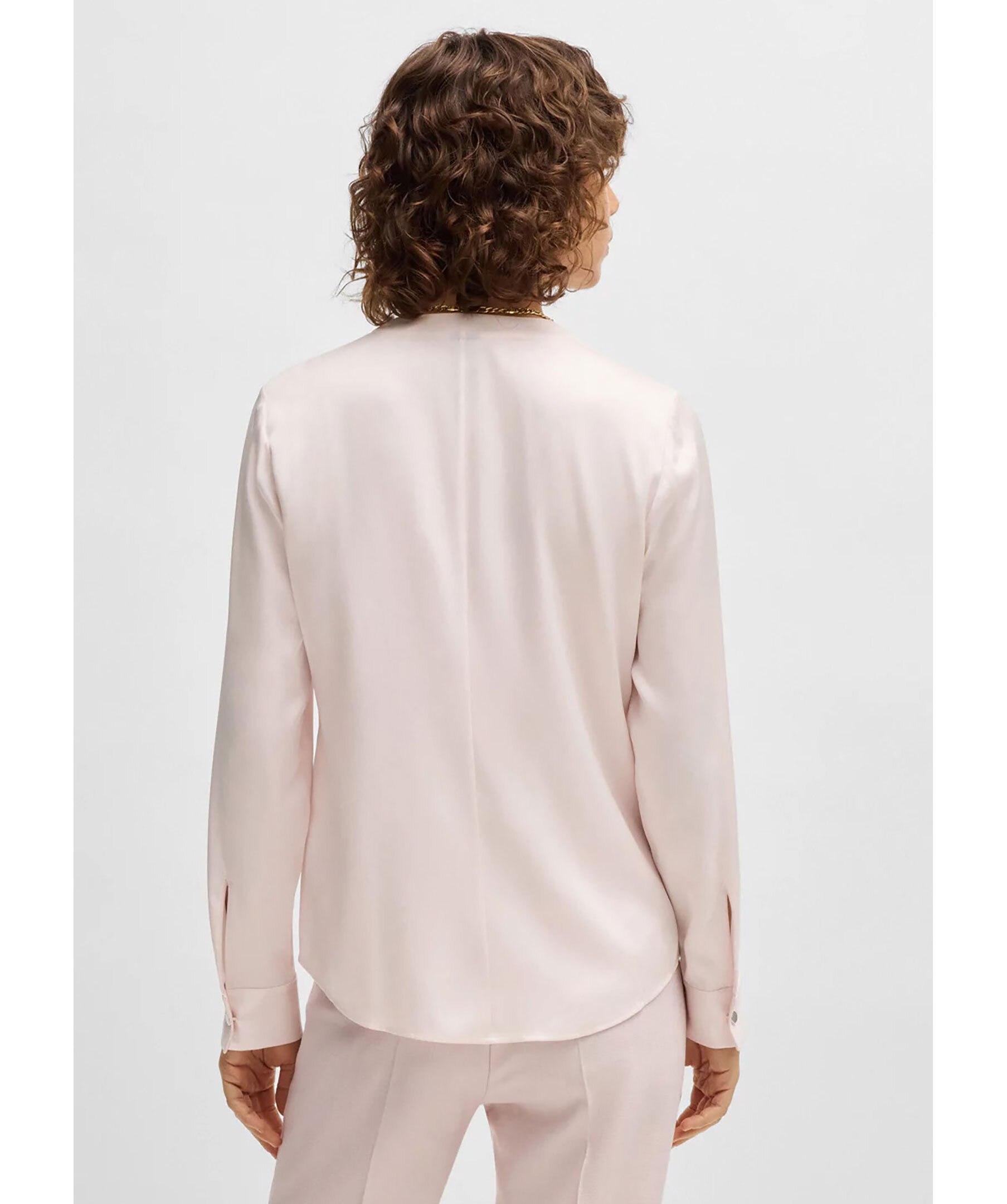 Ljusrosa blus utan krage från BOSS Black. Designad med rynkad halsringning samt dolda knappar framtill. Tillverkad i en sidenblandning.