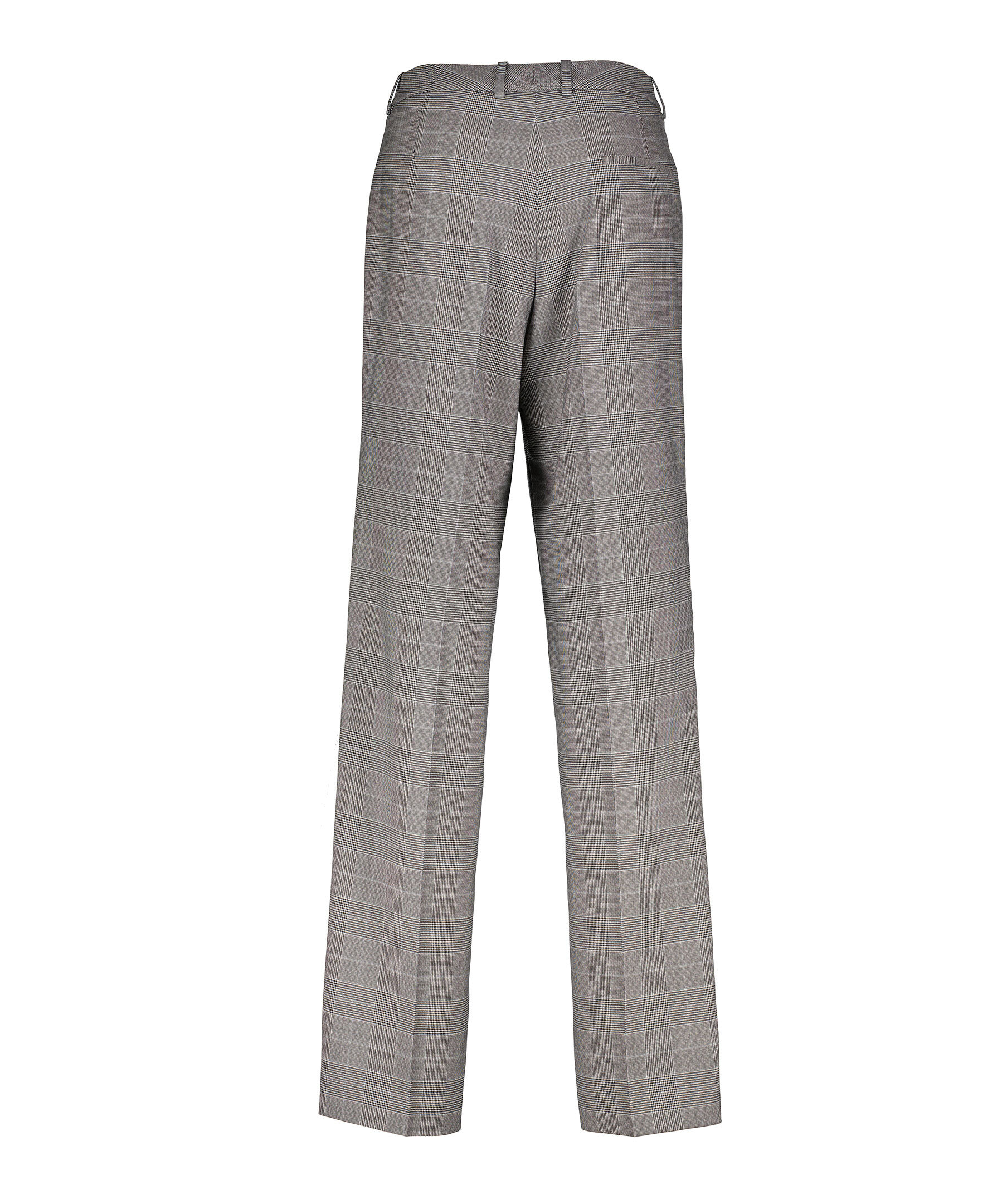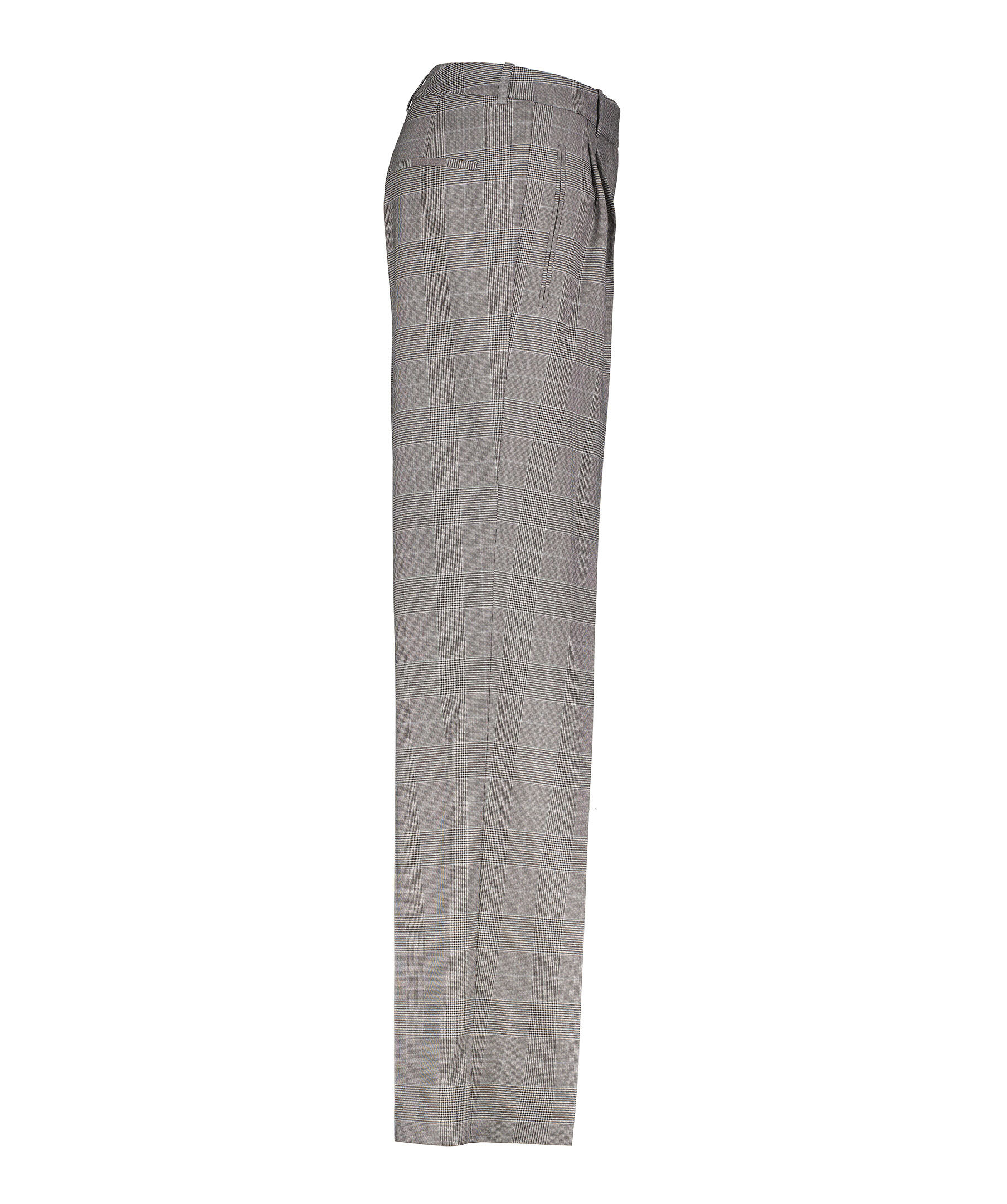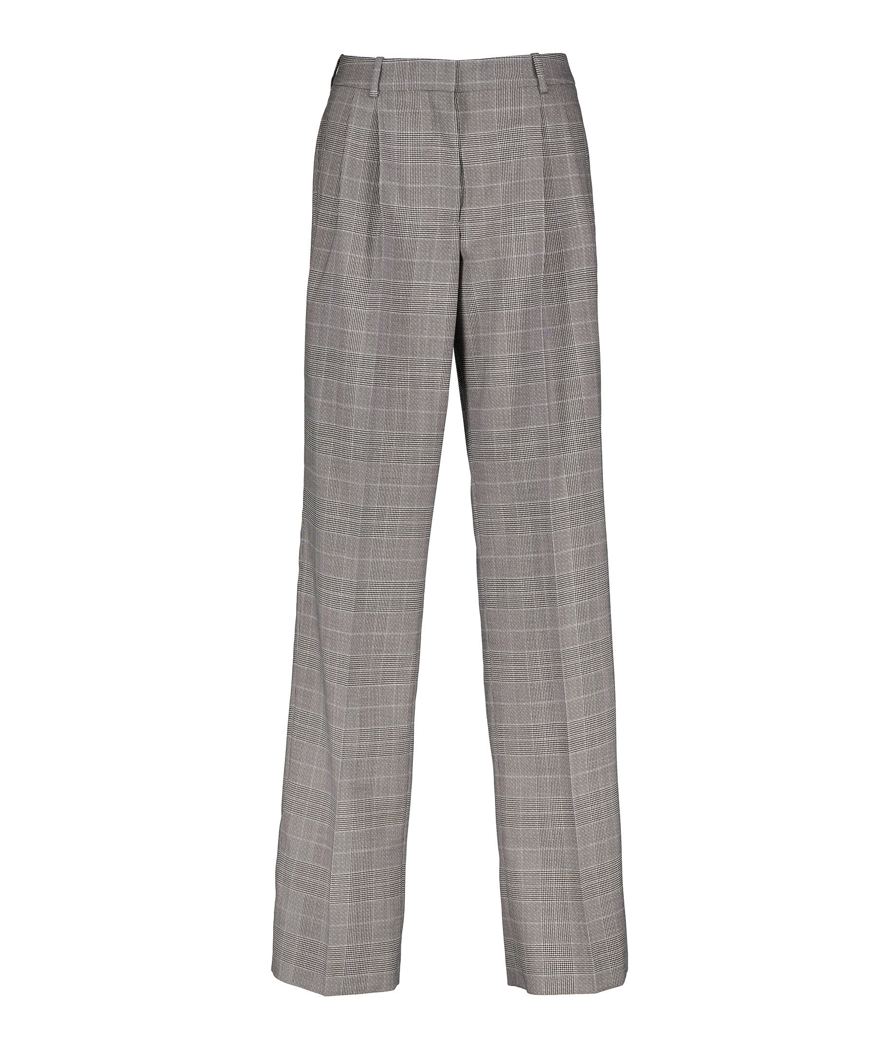 Grå rutiga kostymbyxor från Boss Black. Byxorna har pressveck fram och bak, stängs med dragkedja knapp och hake. Passpoalfickor fram, och en passpoalficka bak. Raka ben och bälteshällor. Tillverkad av en ullblandning.