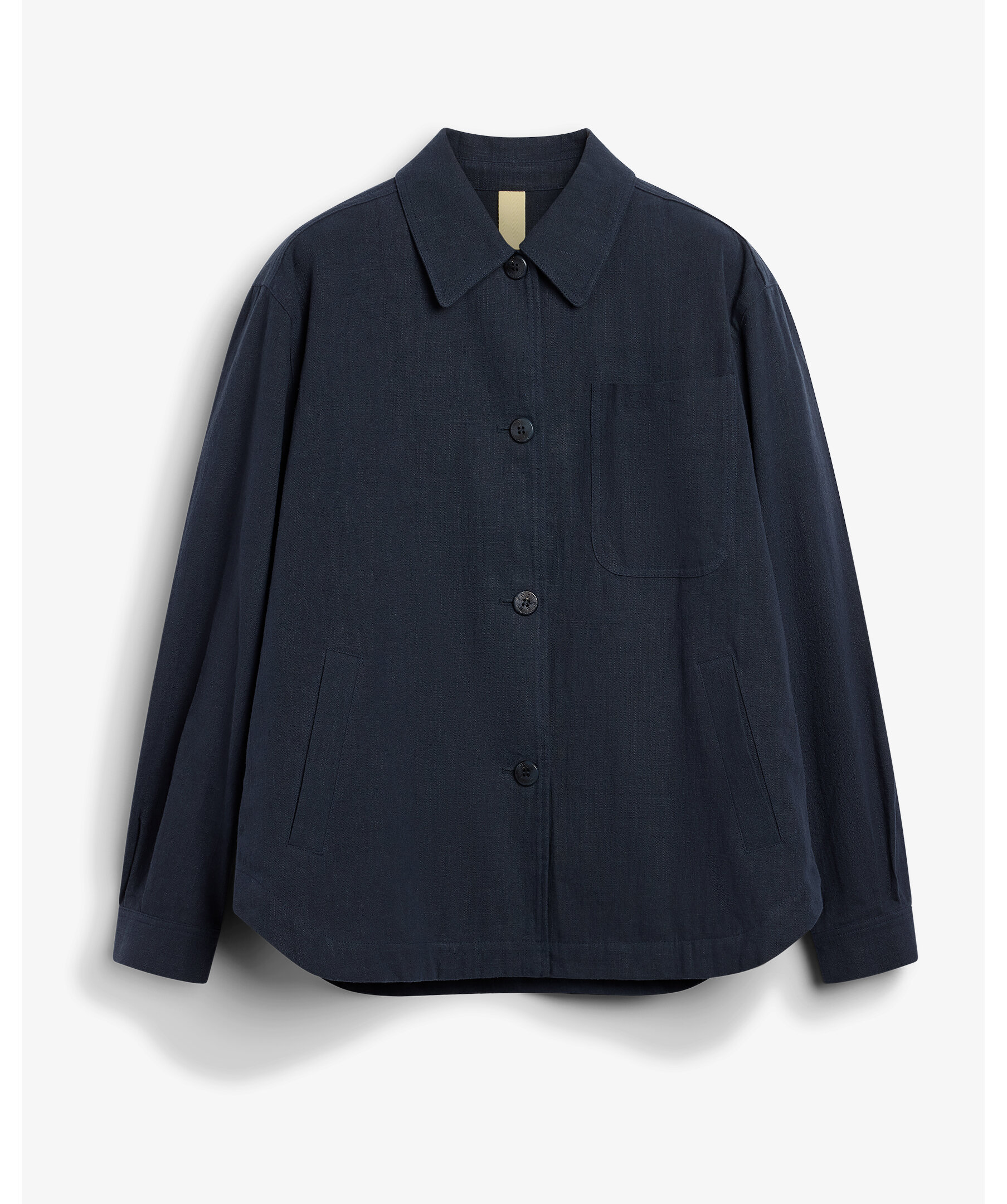 Overshirt från brixtol Textiles tillverkad i en linne- och bomullsblandning som har tvättats för att ge en mjuk känsla. Den har påsydda knappar framtill och vid ärmsluten samt snedställda passpoalfickor i sidorna.