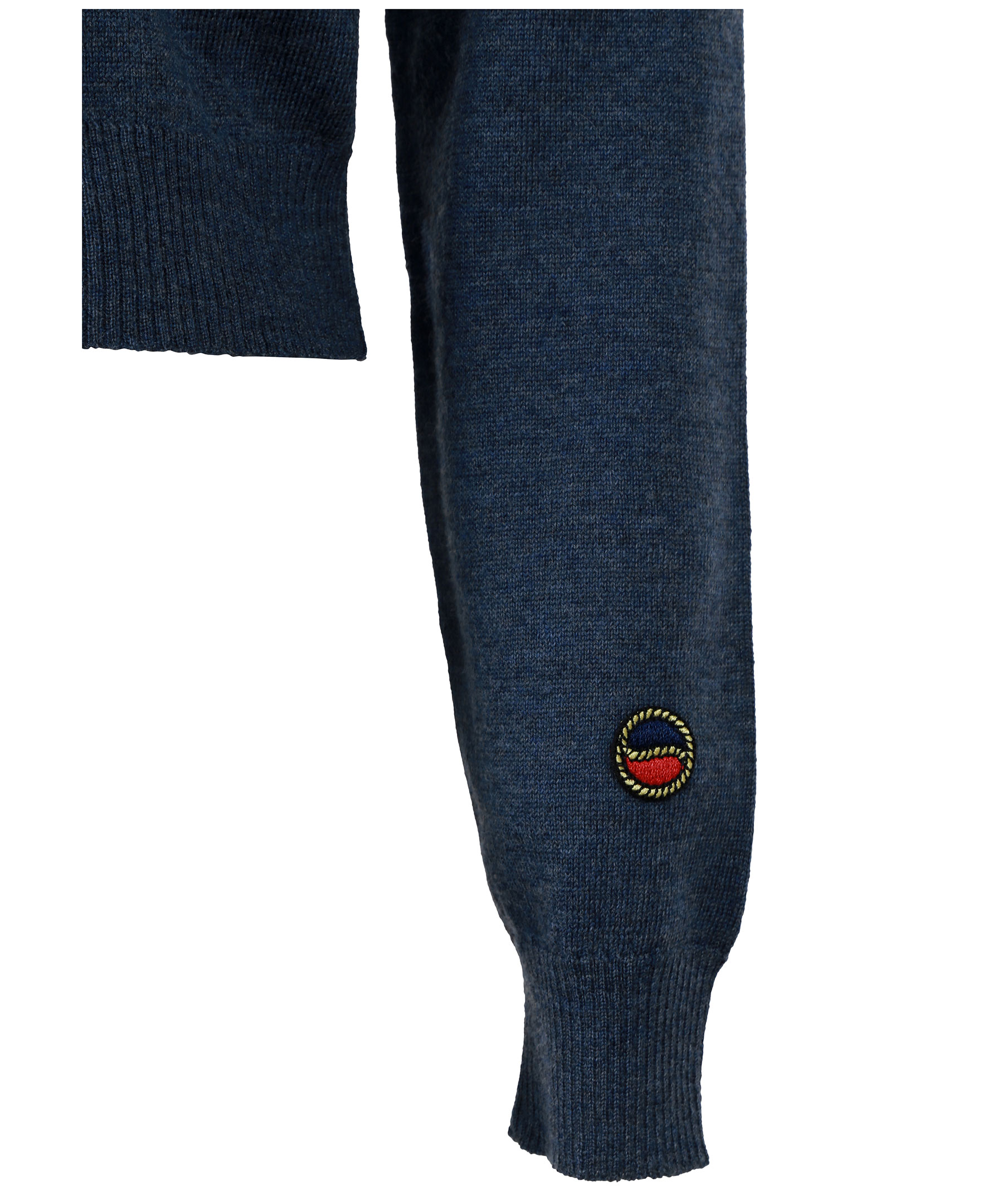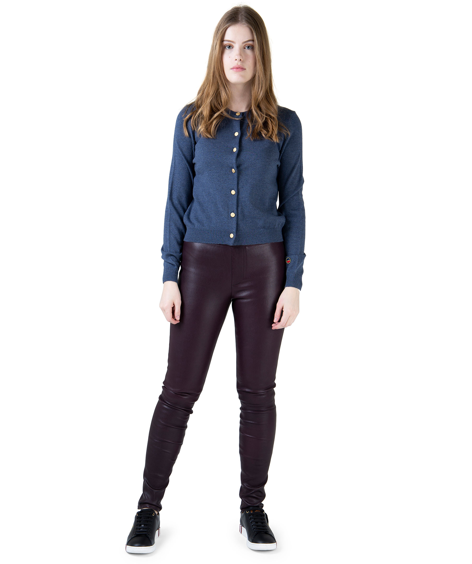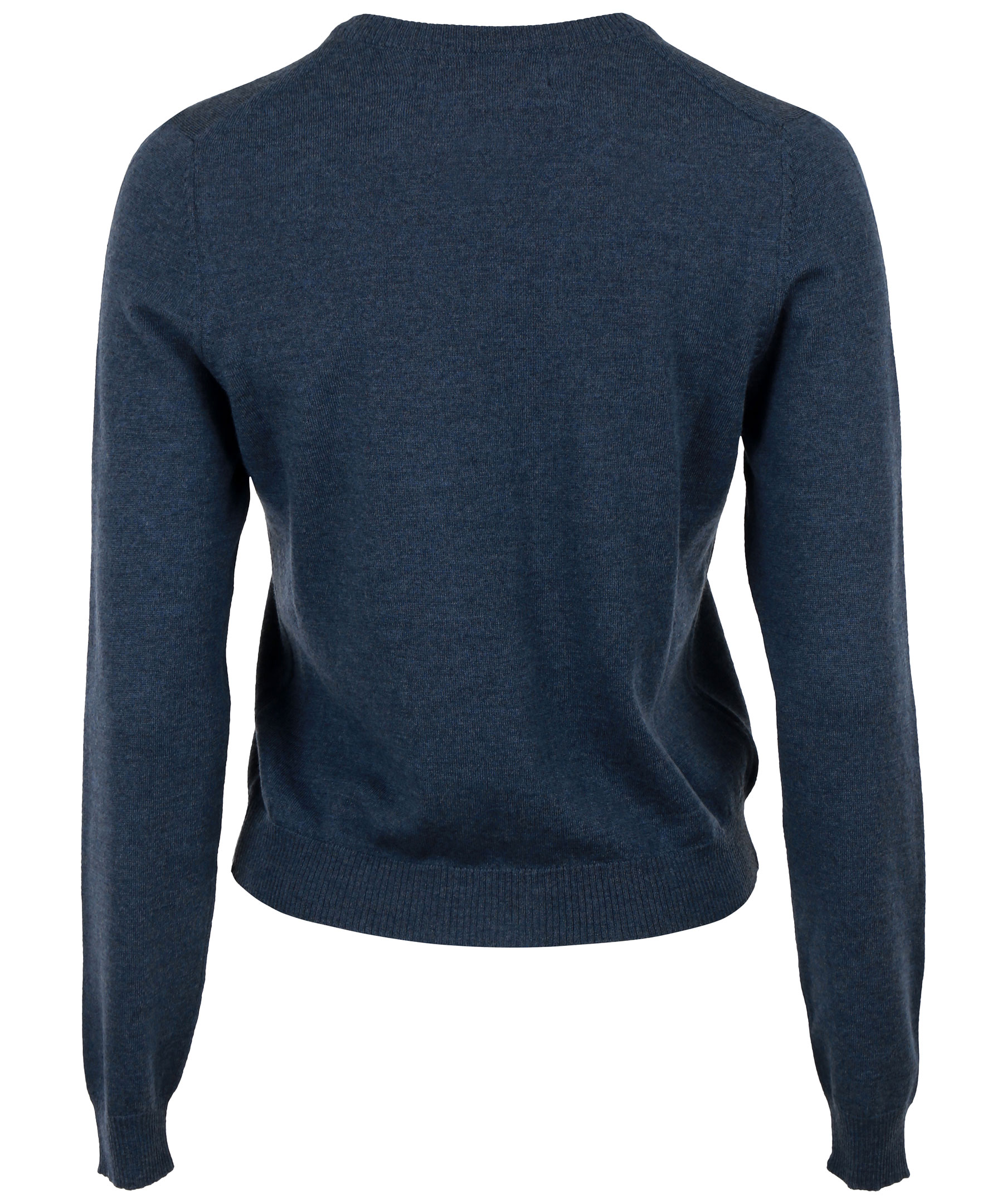 Gråblå cardigan i kortmodell från Busnel med ribbstickade detaljer. Rak passform. Stängs med guldfärgade knappar längst mitten. Logga nertill på vänster ärm. Tillverkad i 100% merinoull. Modellen är 173 cm lång och bär storlek 36.