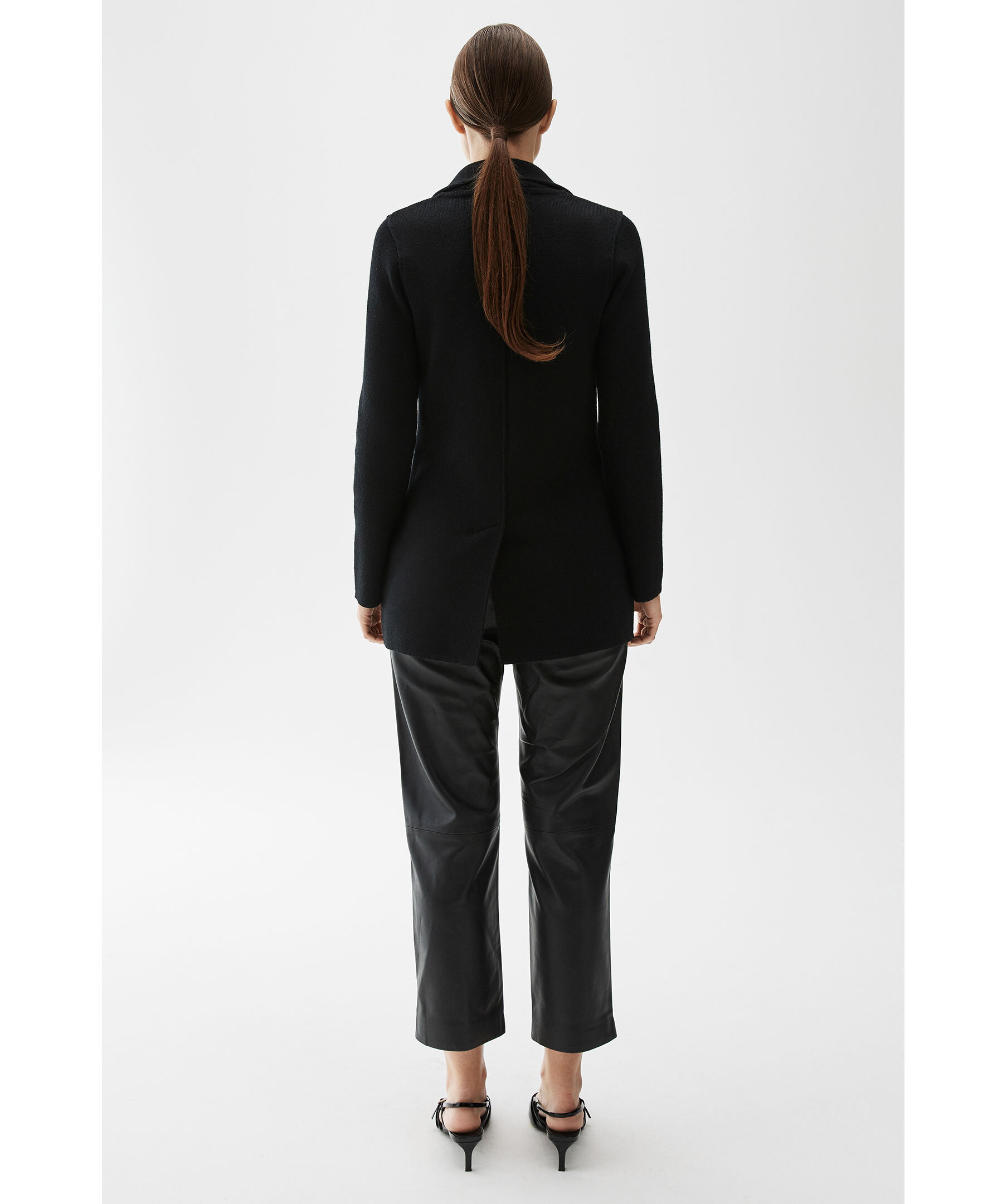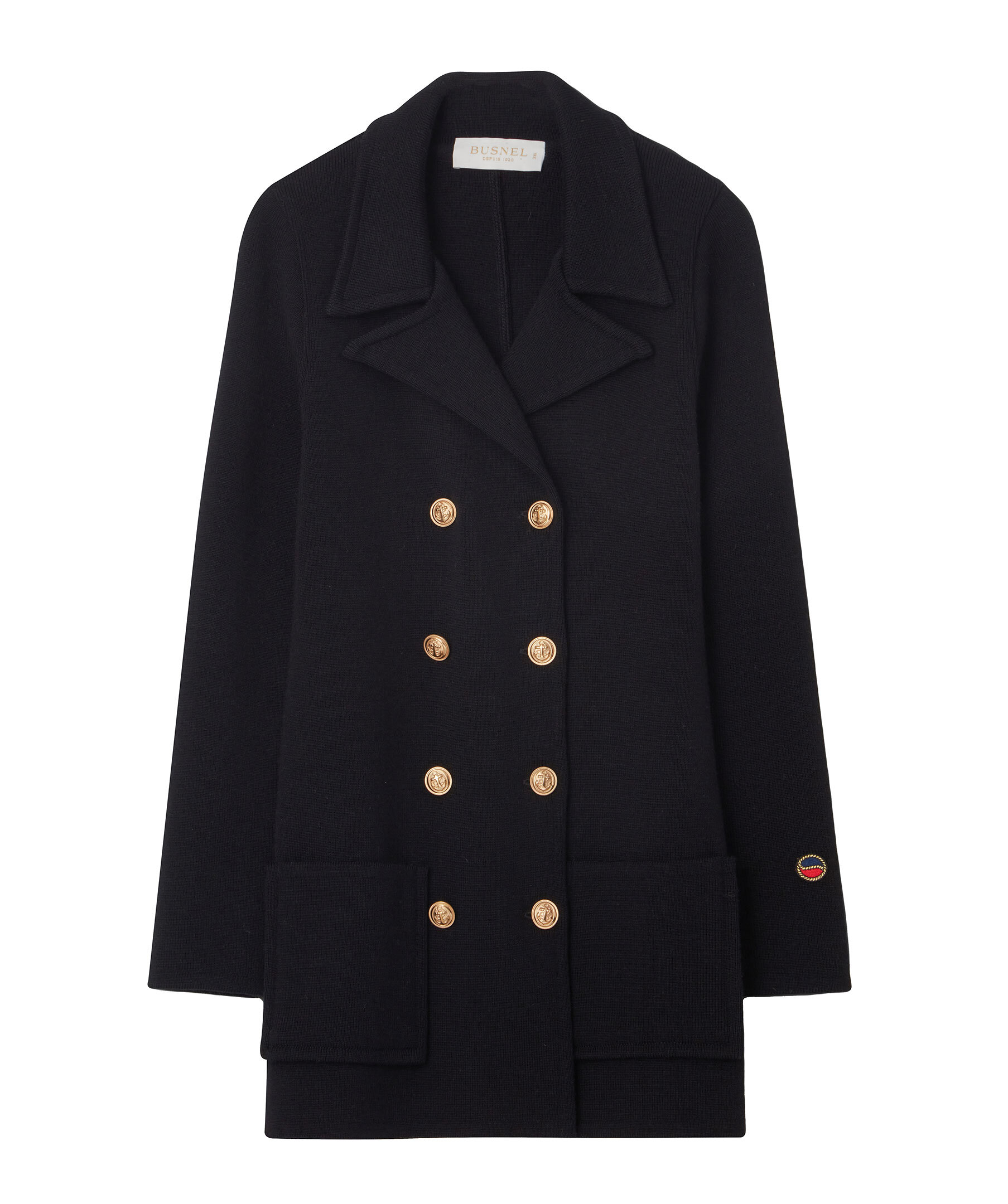 Svart ulljacka från Busnel. Denna klassiska och tidlösa kavaj är skuren i en smickrande feminin siluett och den är avslutad med åtta gyllene ankarknappar. Kavajen har två fickor. Styla den med allt från skräddarsydd till denim. Liten i storleken, vi rekommenderar att gå upp i storlek.