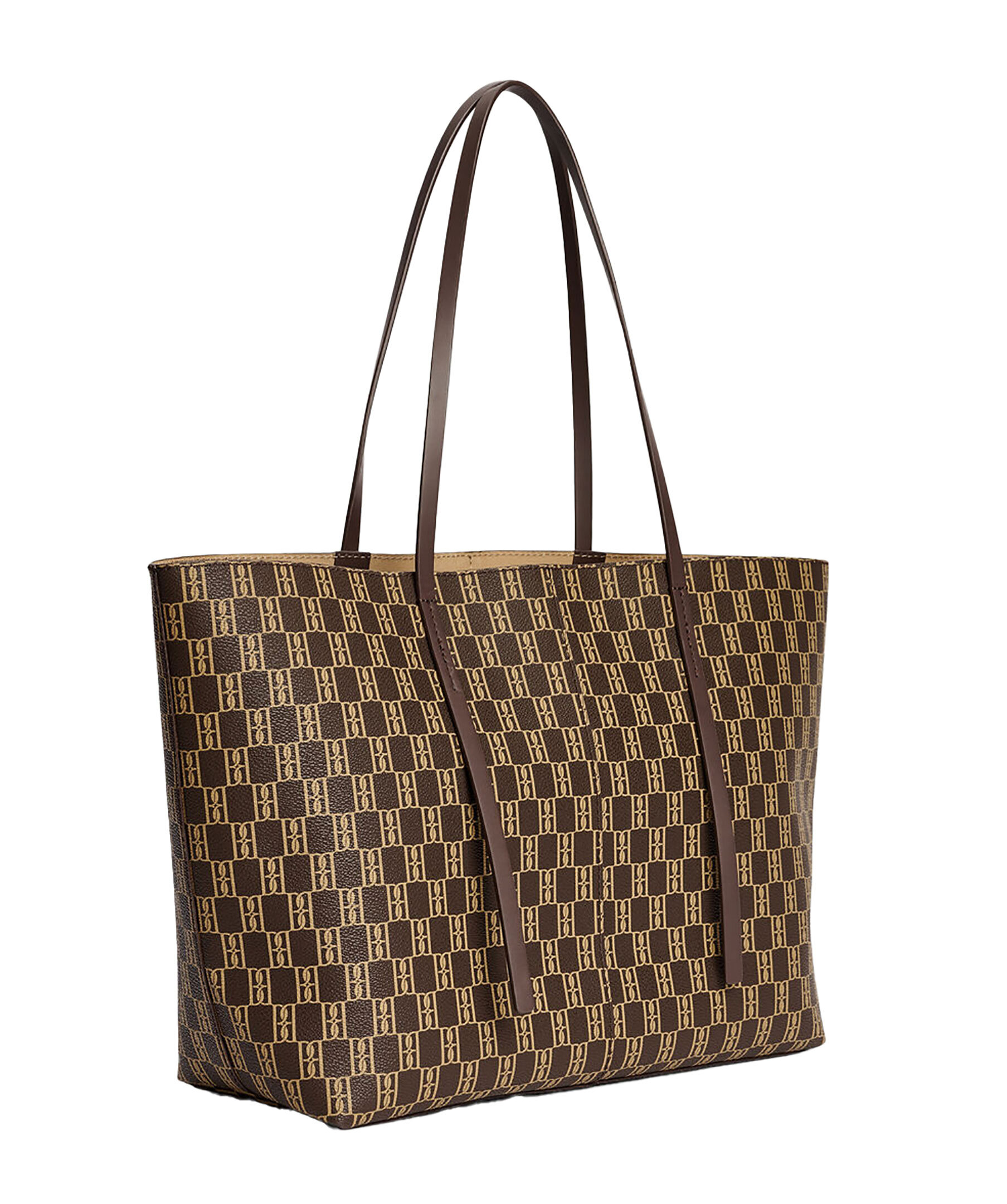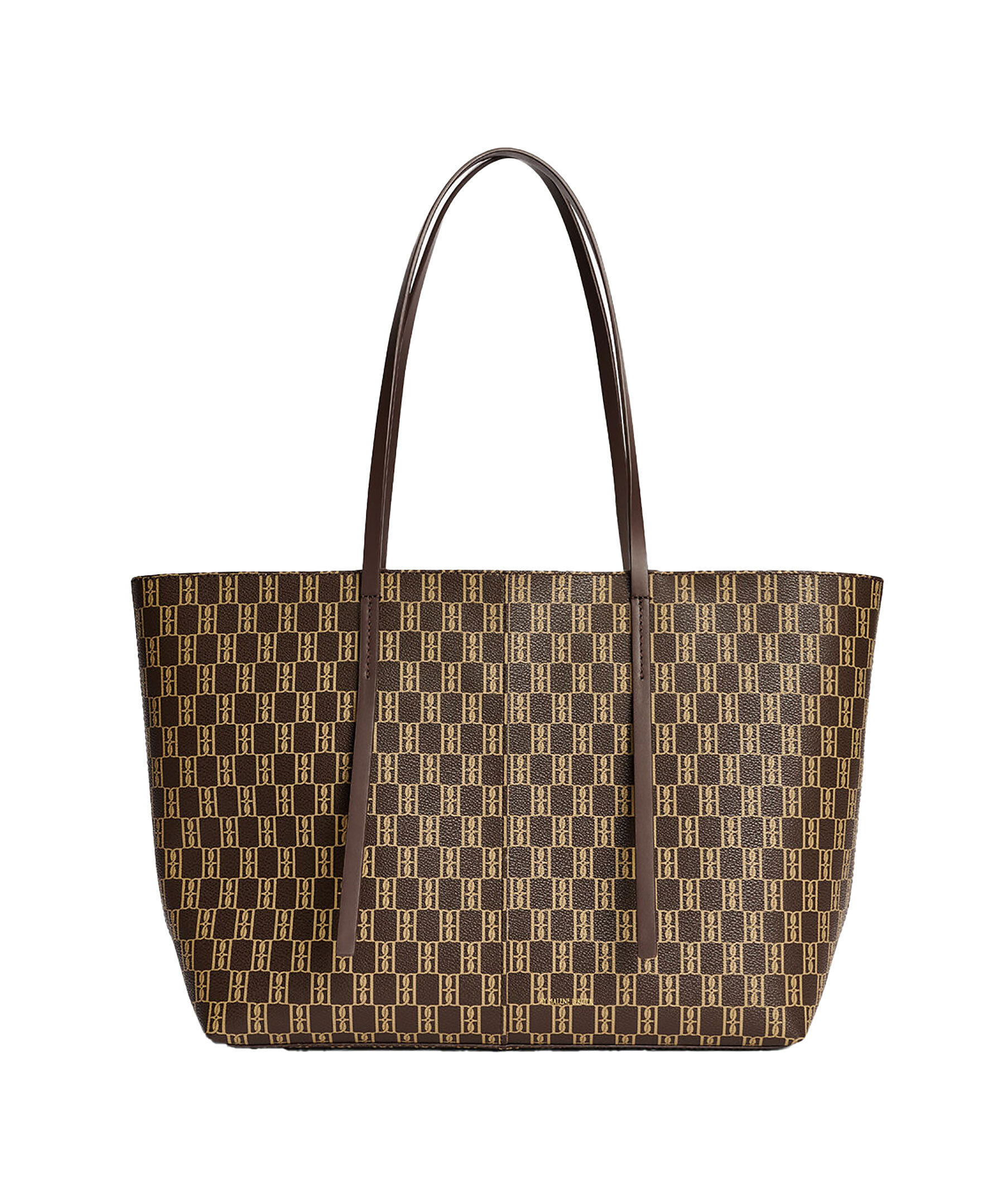 Brun totebag med monogramtryck från By Malene Birger. Denna rymliga, läderklädda väskan har smala handtag och en monogrammönstrad innerficka. Väskans mått: D: 12,5cm, H: 28cm, B: 48cm.