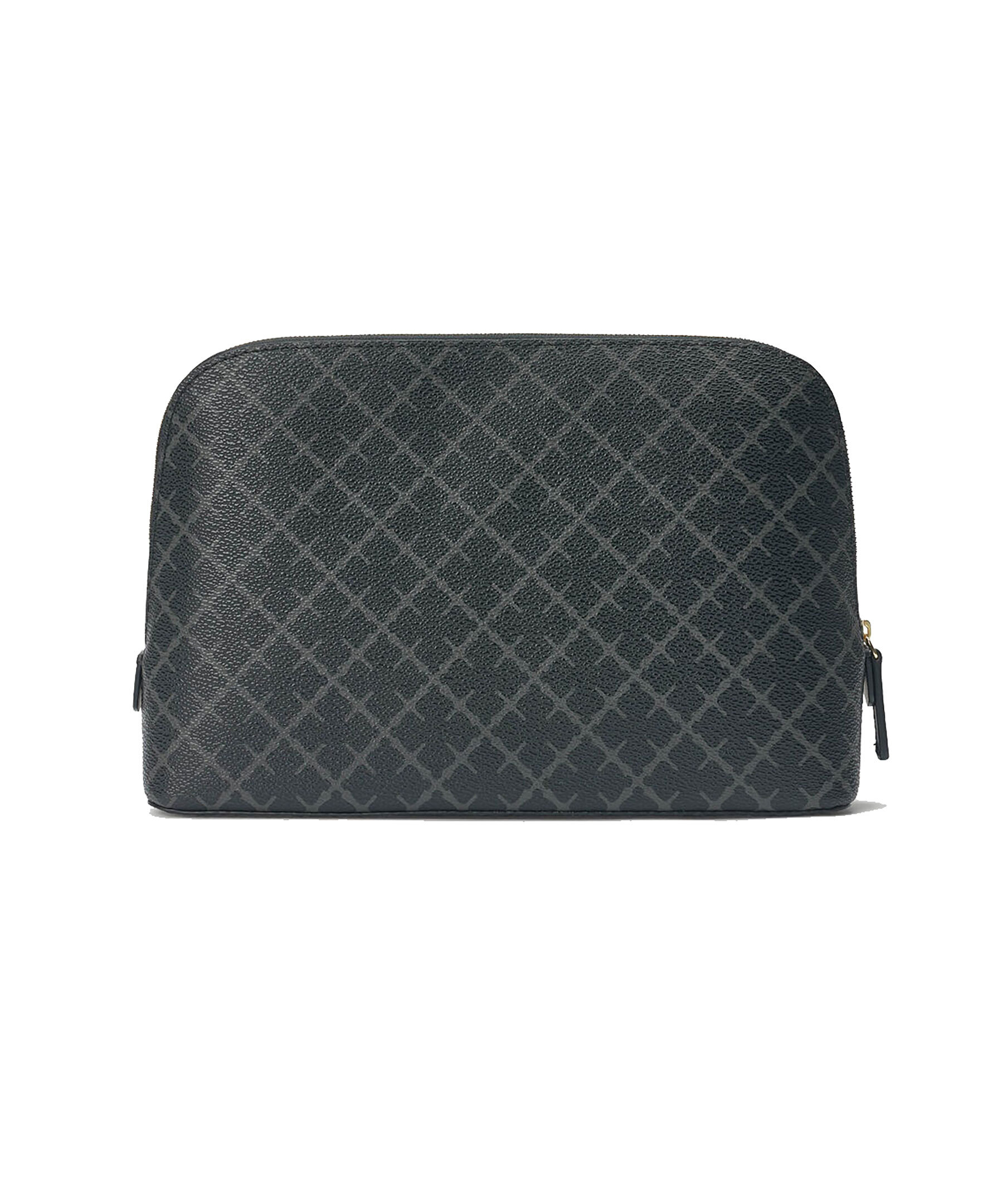 Grå necessär från By Malene Birger med deras klassiska blommönster. Stängs med guldfärgat blixtlås, har två elastiska innerfickor. Tillverkad av PVC.