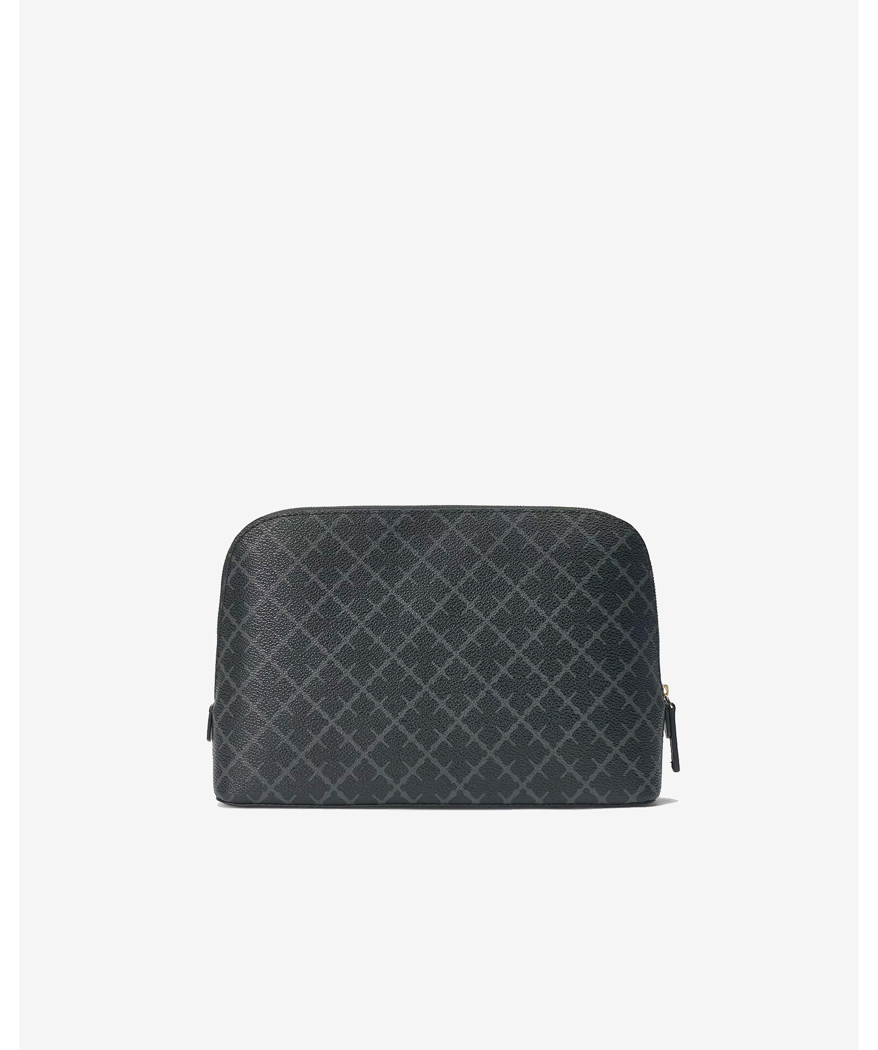 Grå necessär från By Malene Birger med deras klassiska blommönster. Stängs med guldfärgat blixtlås, har två elastiska innerfickor. Tillverkad av PVC.