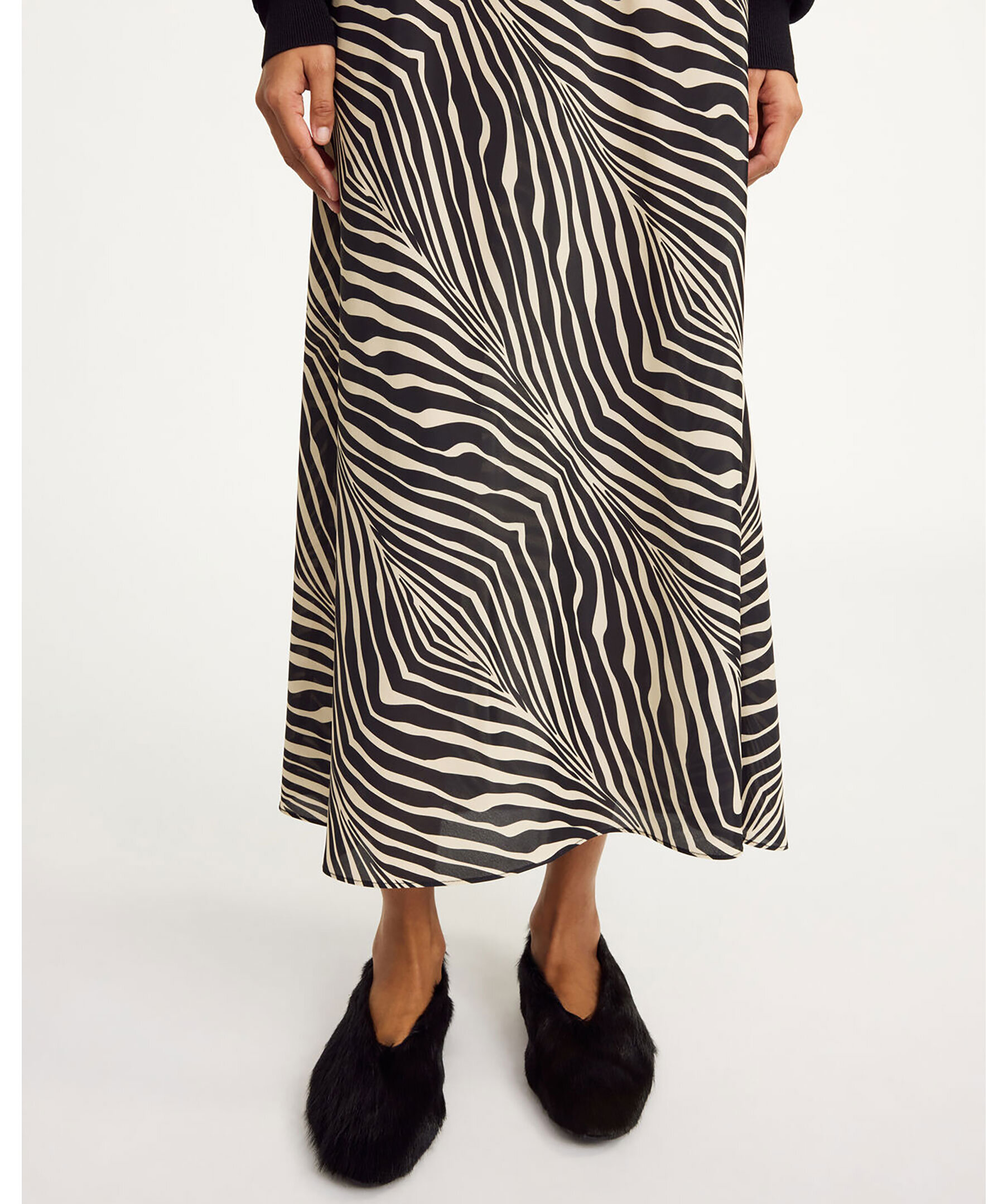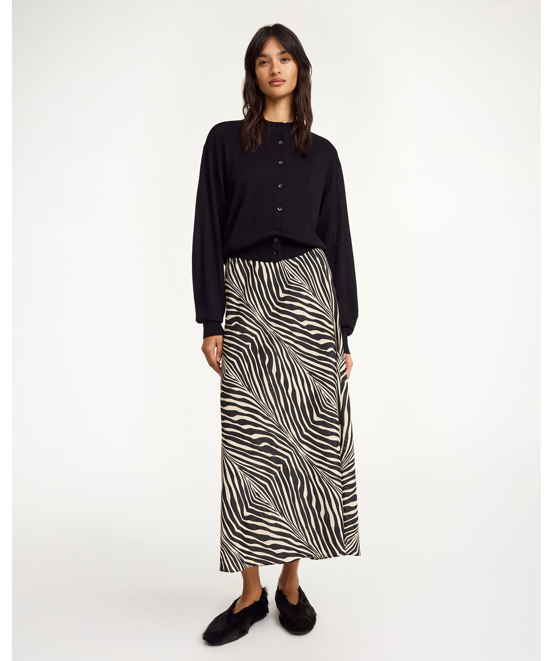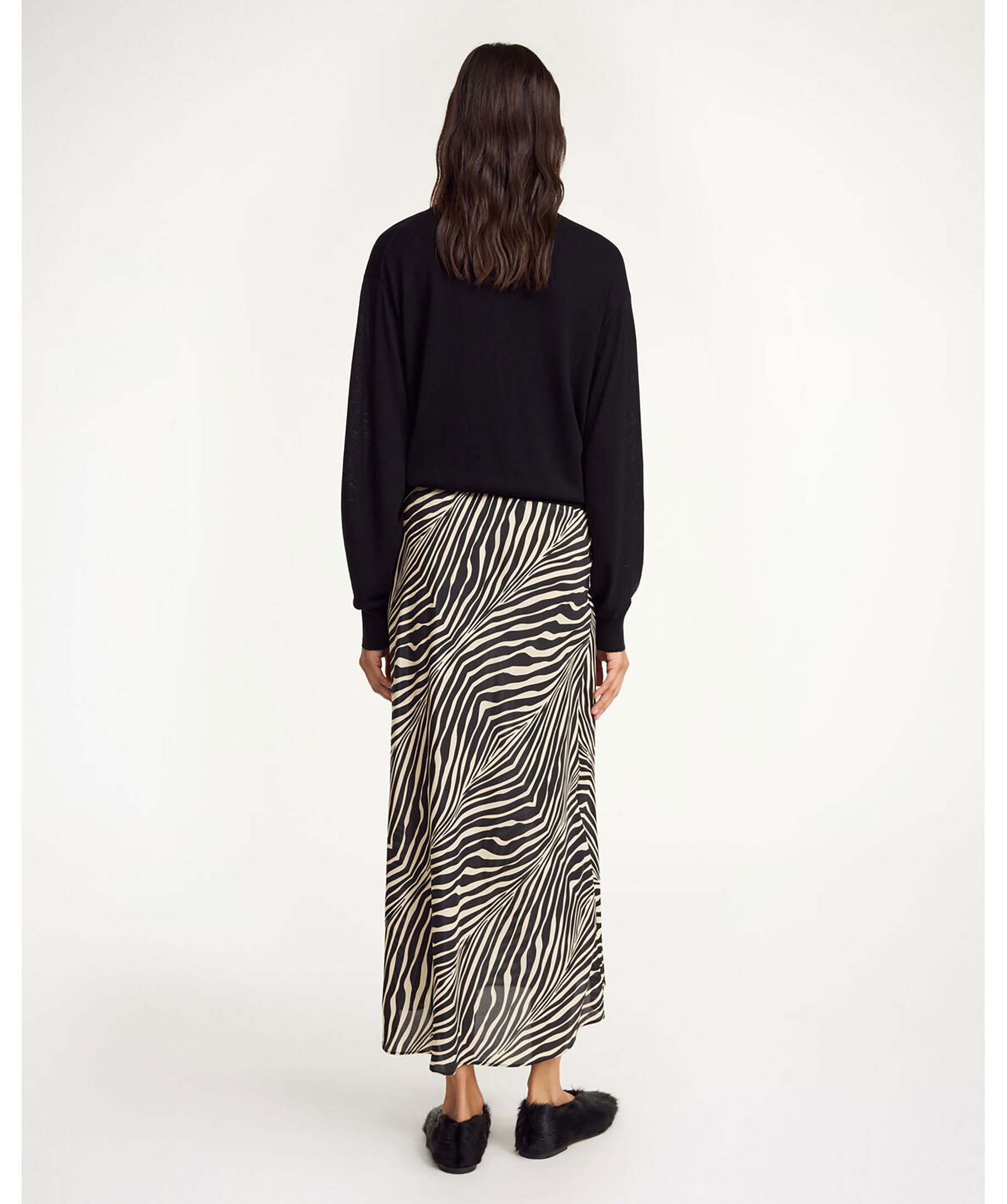 Zebrarandig silkeskjol från BY Malene Birger. Kjolen har ett elastiskt midjeband och regular fit. Tillverkad av en silkesblandning.