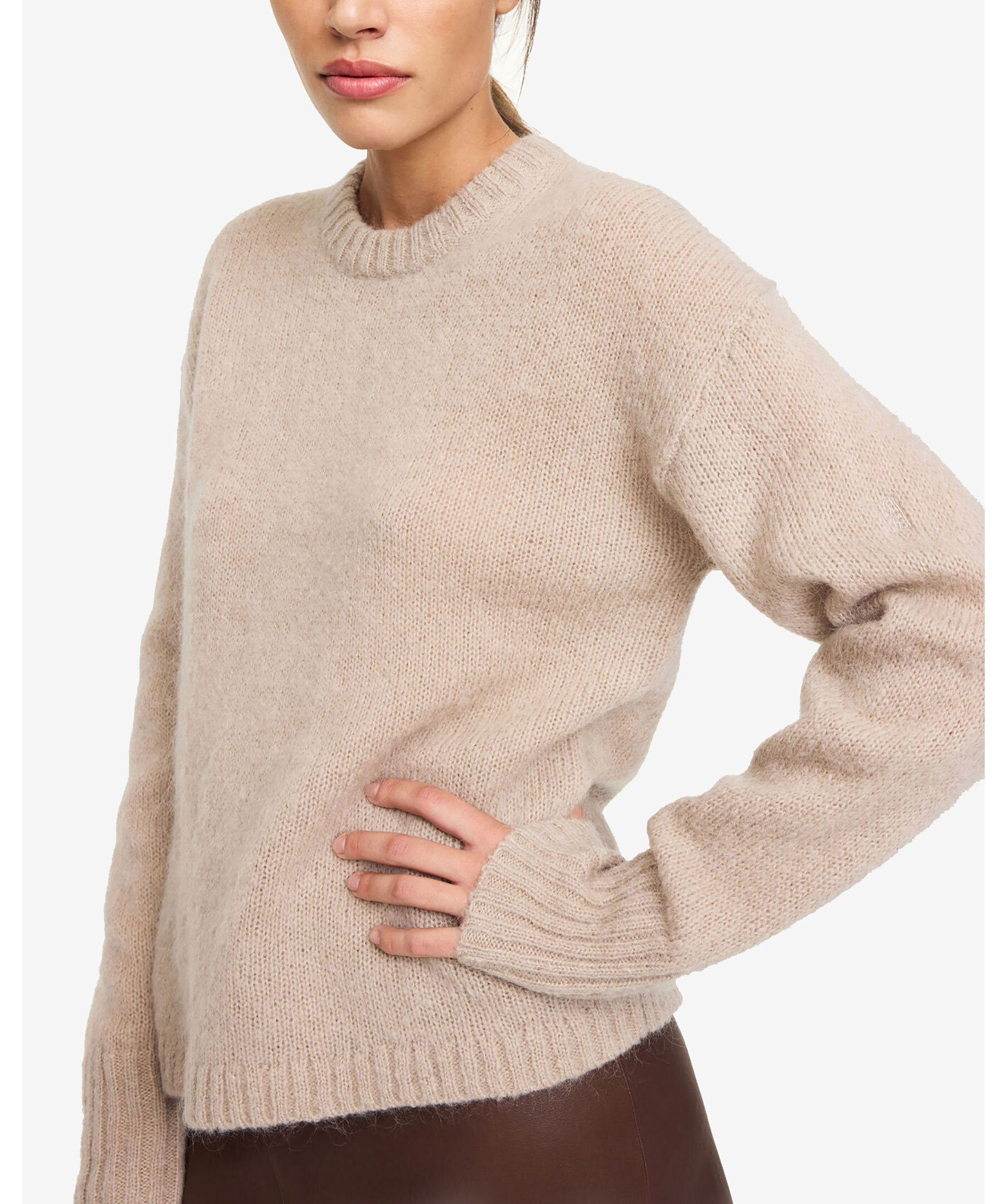 Beige, ribbstickad pullover från By Malene Birger. Tröjan har en rund och ribbstickad halsringning samt ribbstickade muddar vid ärm- och plaggslut. Tillverkad i en varm ull- och mohairblandning.
