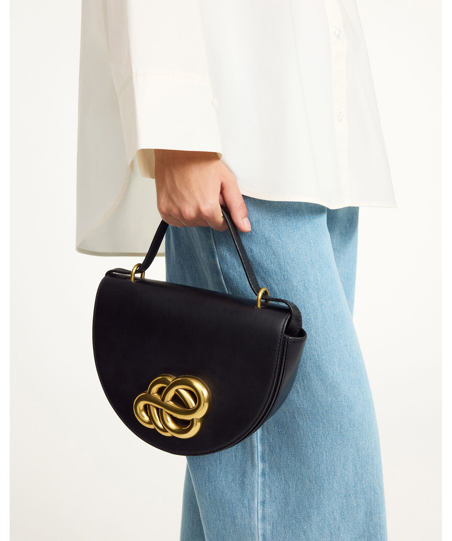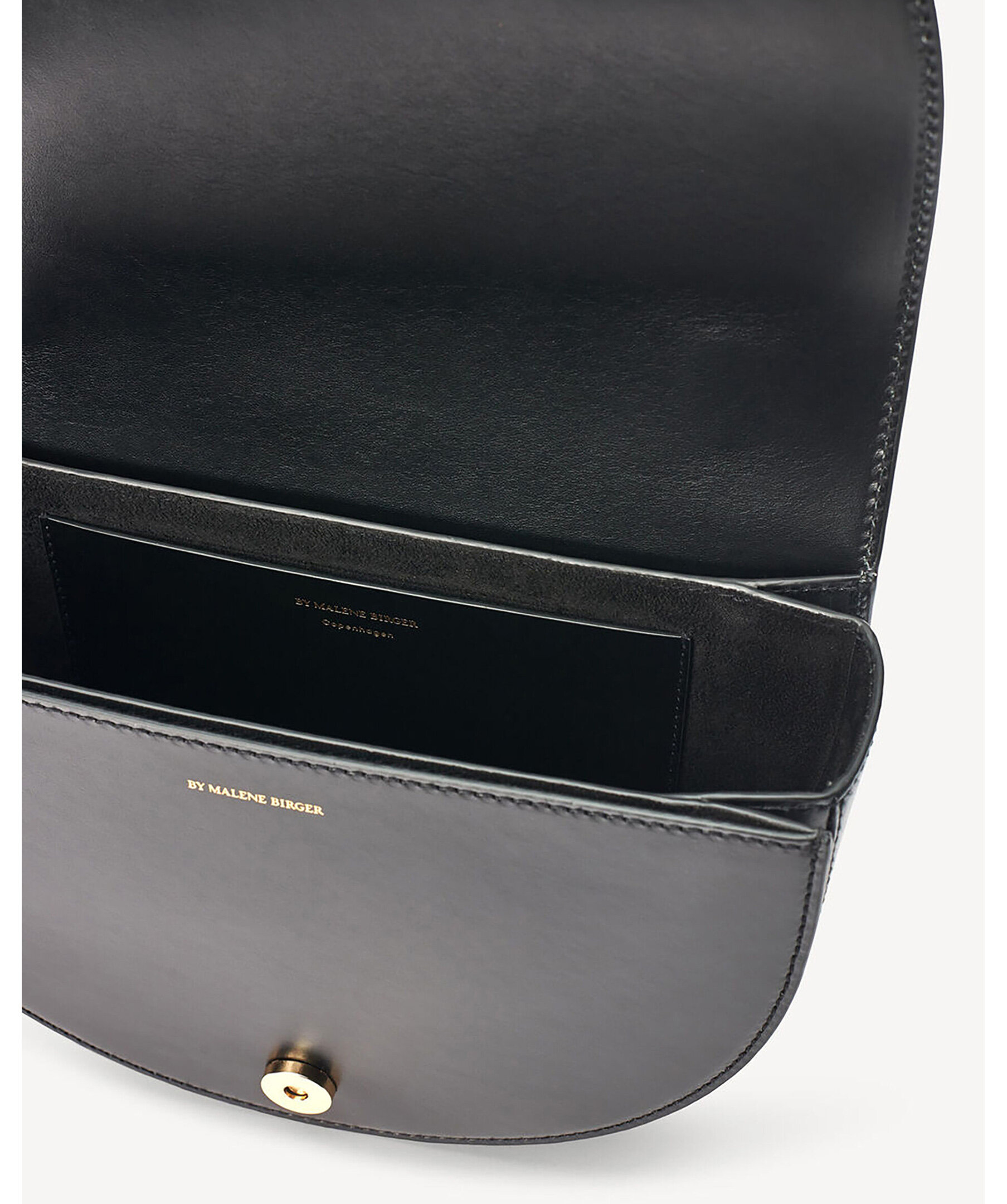 Elegant axelremsväska i skinn från By Malene Birger med subtil Scribble‑motiv framtill och justerbar rem, perfekt för vardag och fest. Väskan har magnetstängning och ett innerfack som rymmer dina viktigaste saker i en kompakt design med rundad form