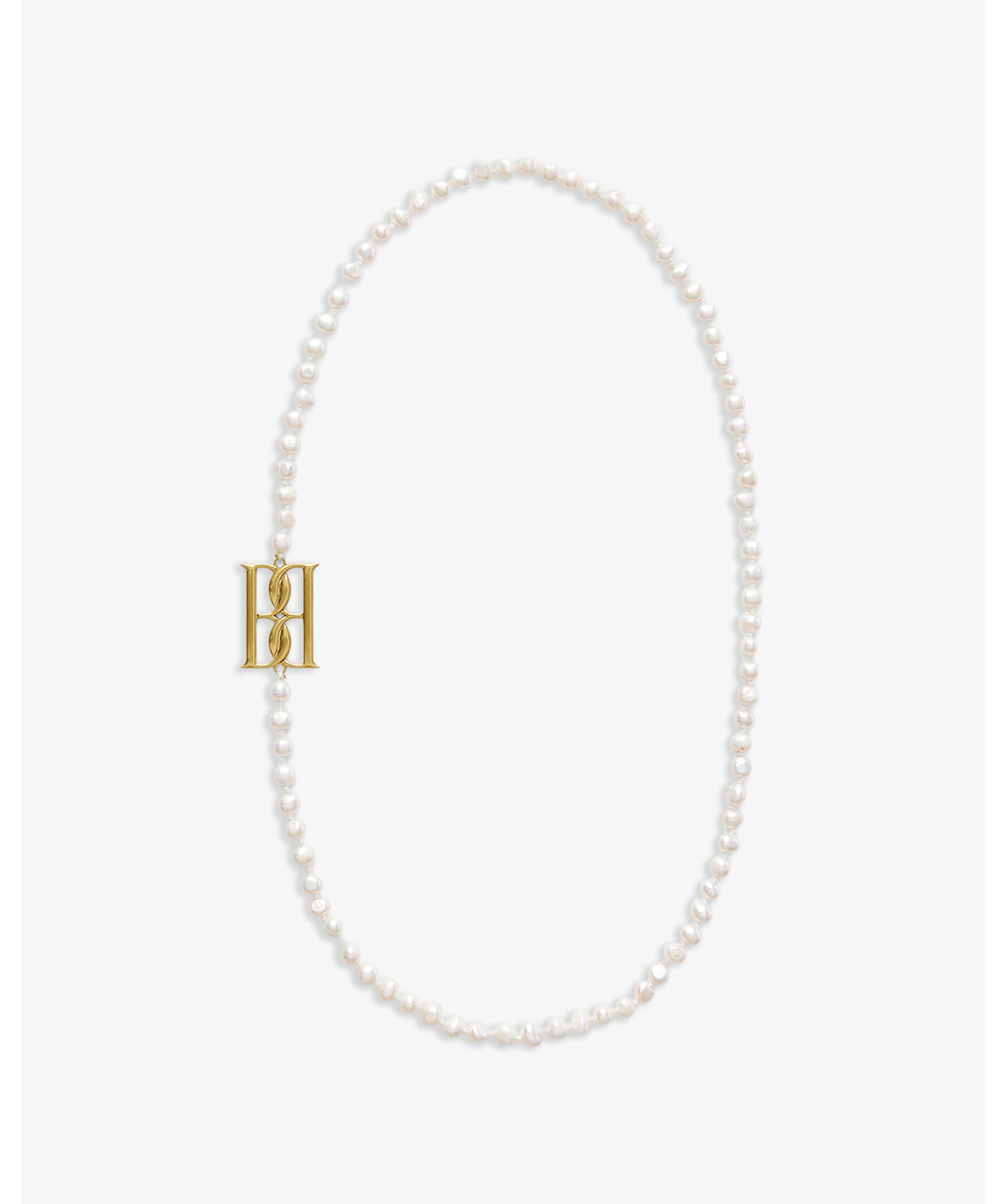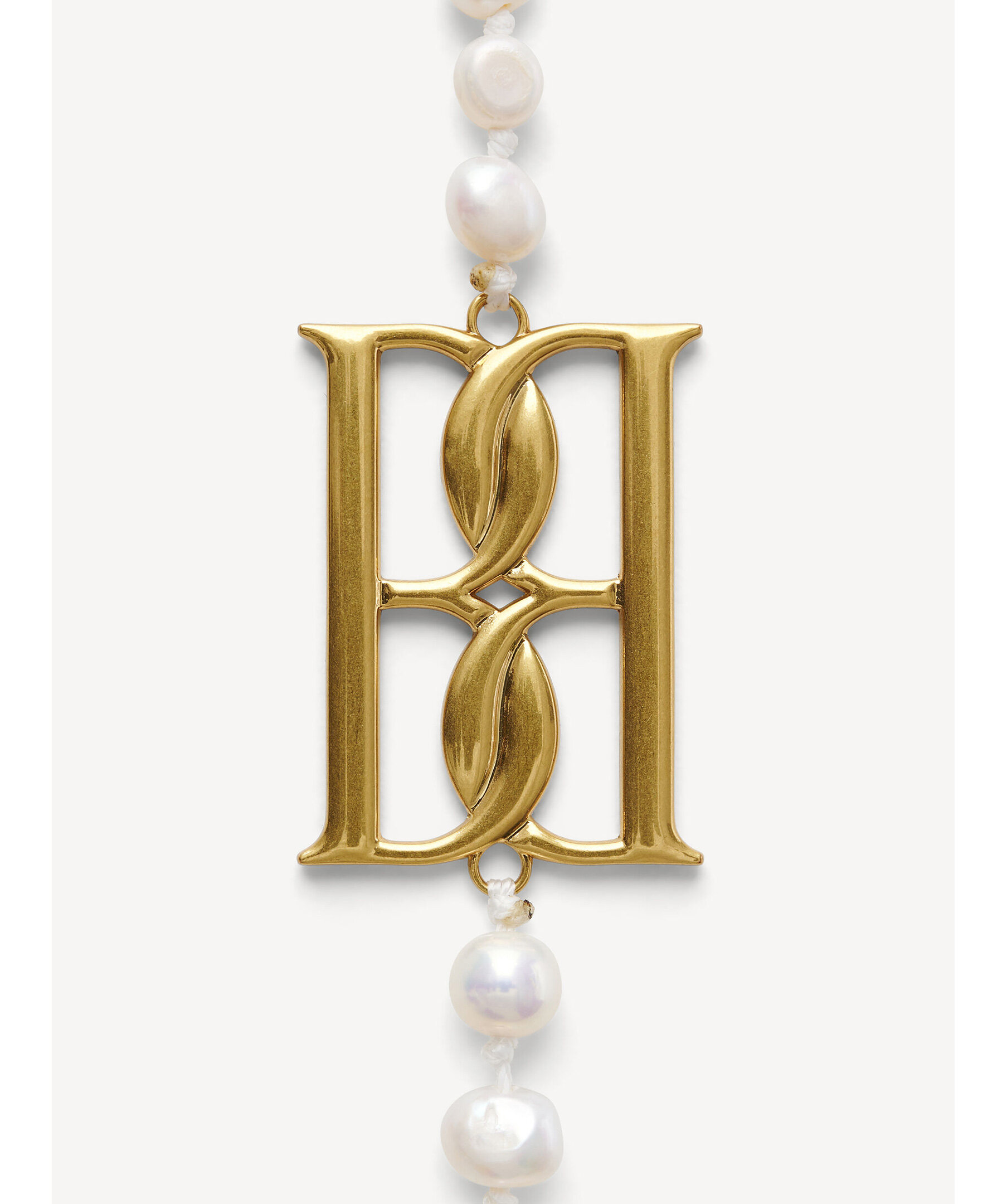 Elegant och bohemiskt inspirerat pärlhalsband från By Malene Birger med namn Chakallo Monogram Necklace. Halsbandet är tillverkat av naturliga sötvattenspärlor som ger en tidlös lyster och är dekorerat med ett stort guldfärgat monogram, vilket skapar ett sofistikerat statement‑accessoar som lyfter både vardags‑ och festoutfits.
