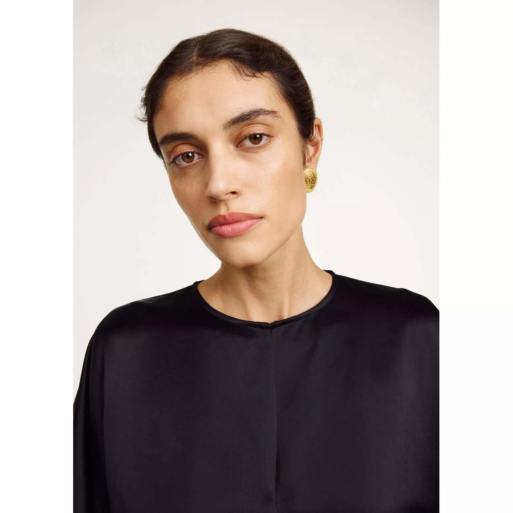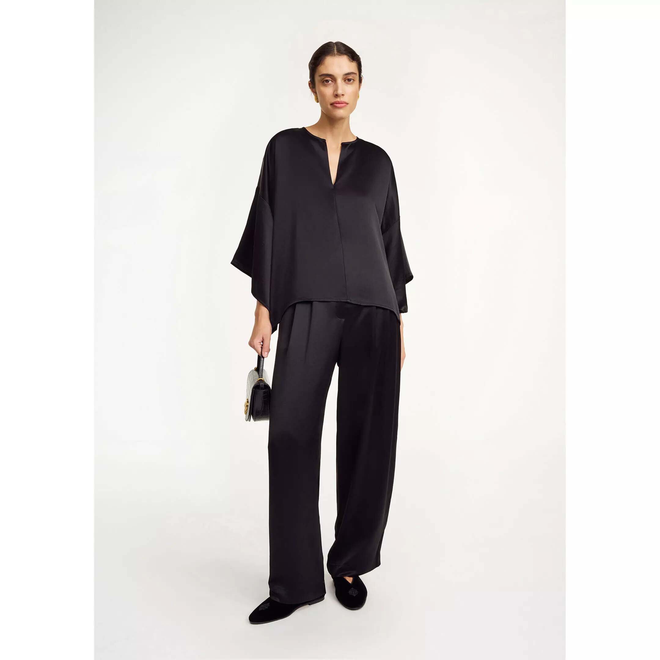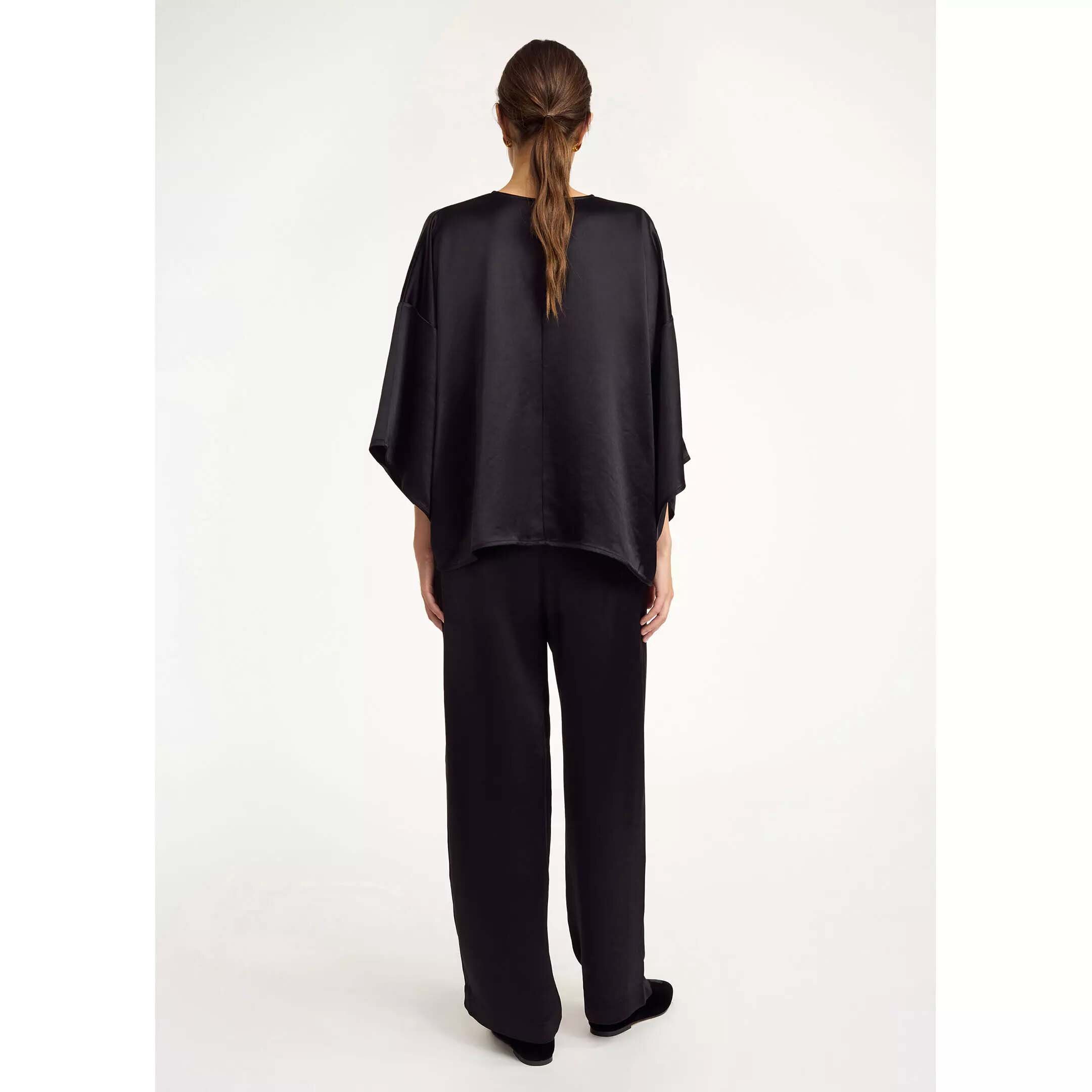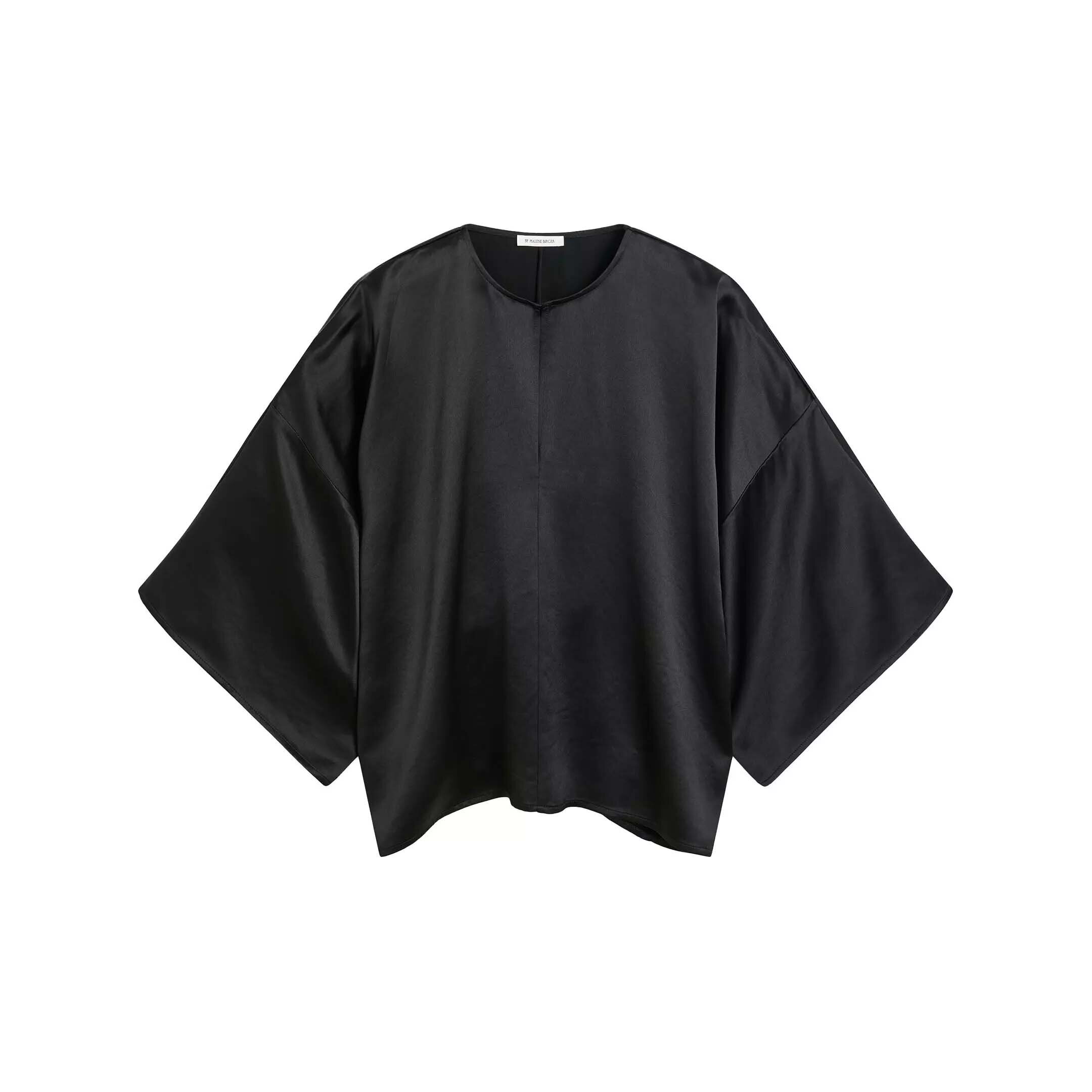 Svart blus från By Malene Birger. Blusen har en lös passform och vida trekvartsärmar. Stilfull liten öppning framtill och rundad halsringning. Tillverkad av en acetatbladning.