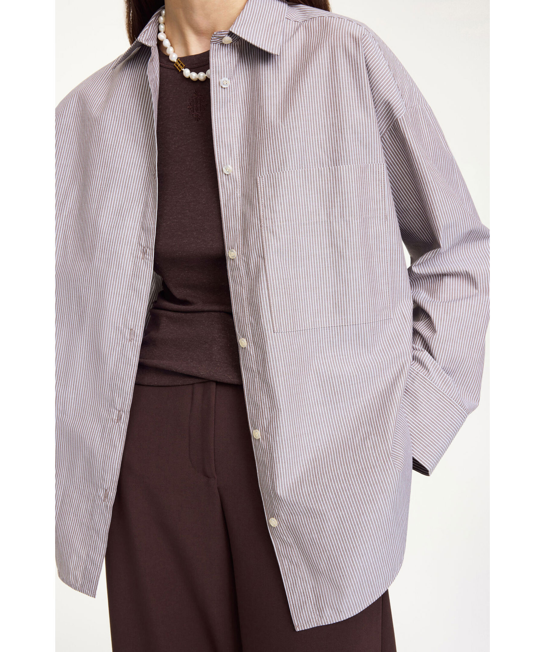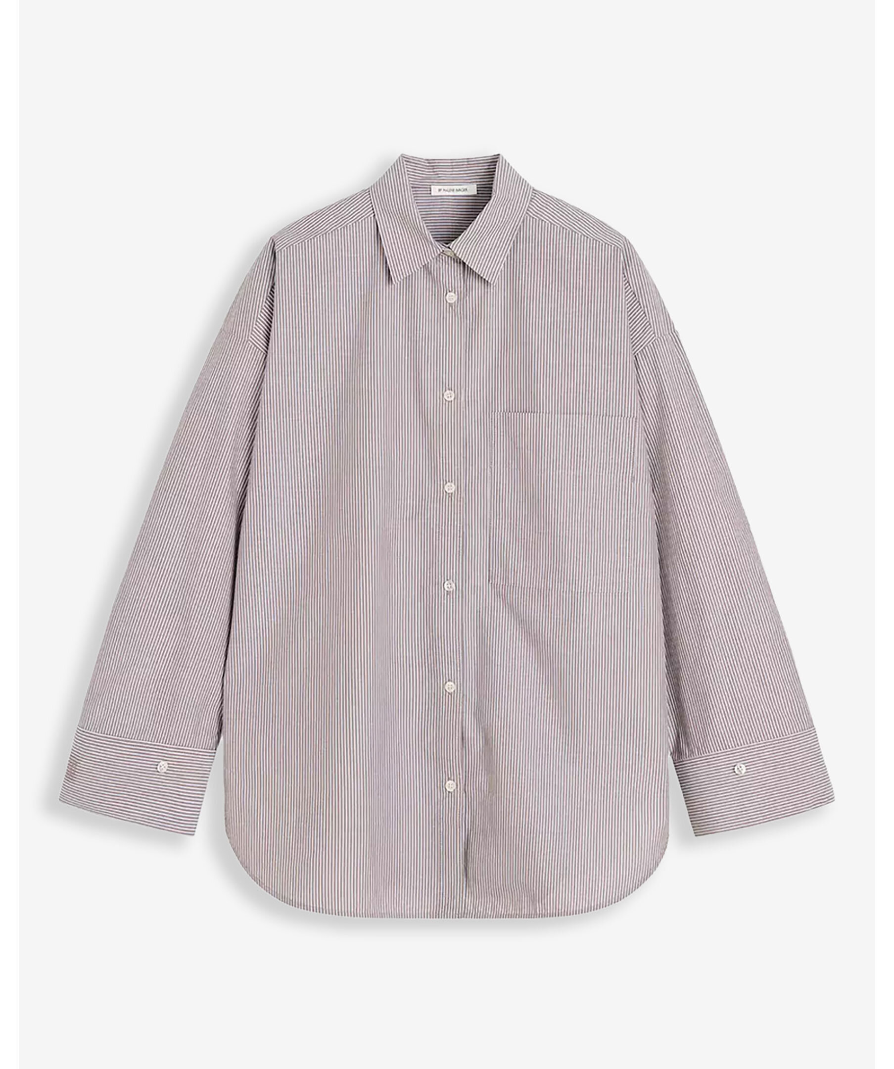 Ljusbrun, randig skjorta från By Malene Birger. Skjortan har knappslå framtill och rundade fållar samt en påsydd bröstficka. Tillverkad i ekologisk bomull.