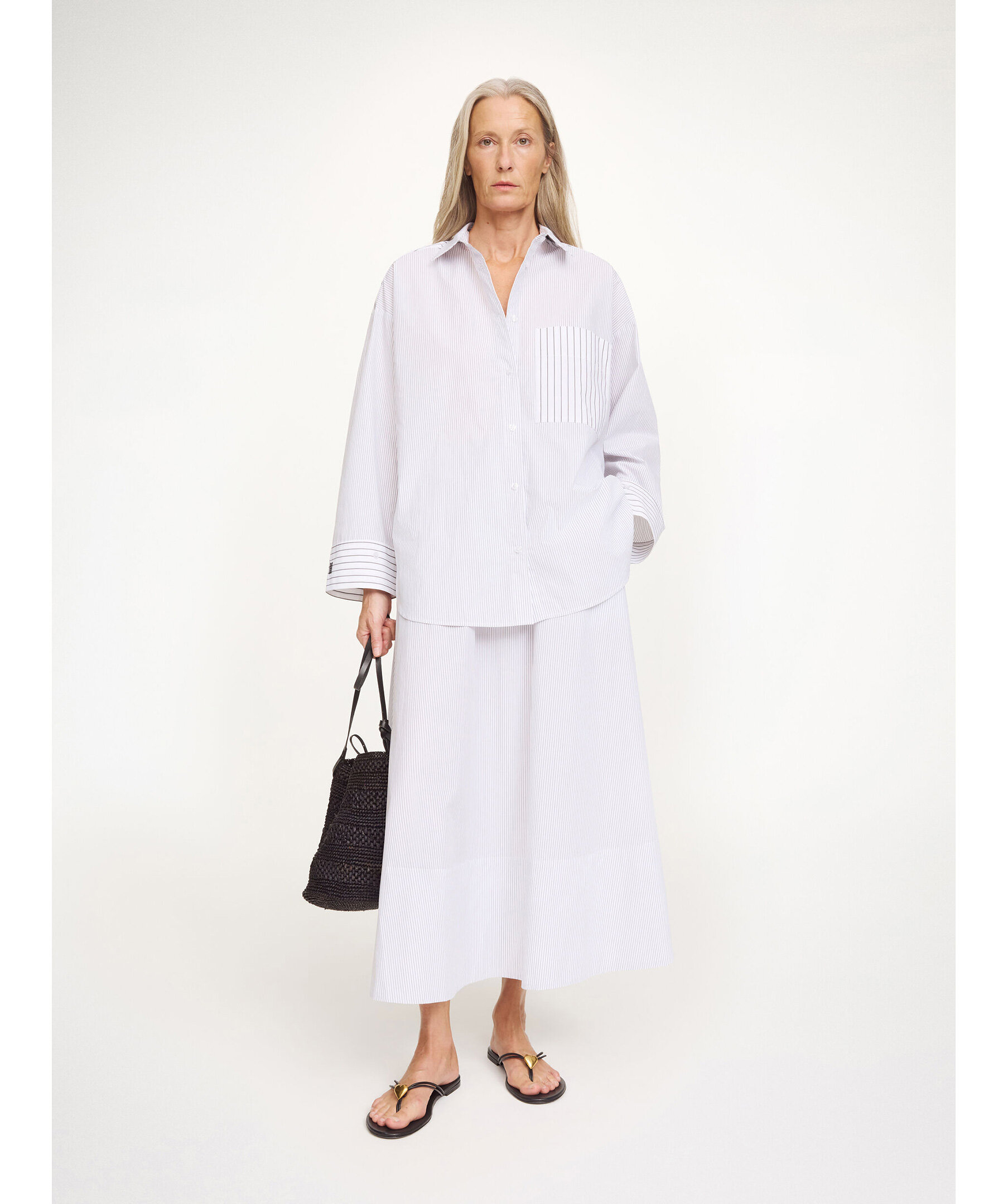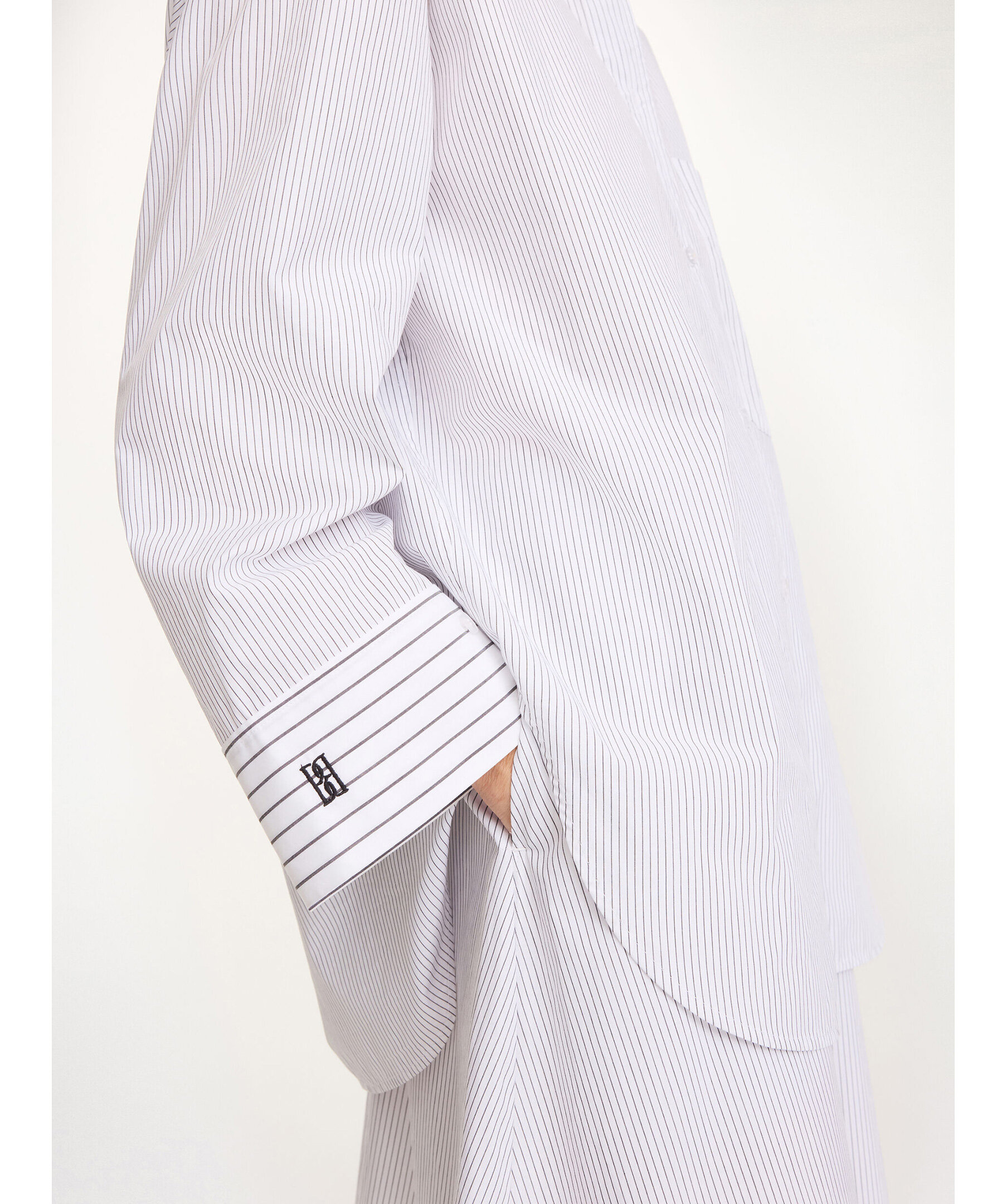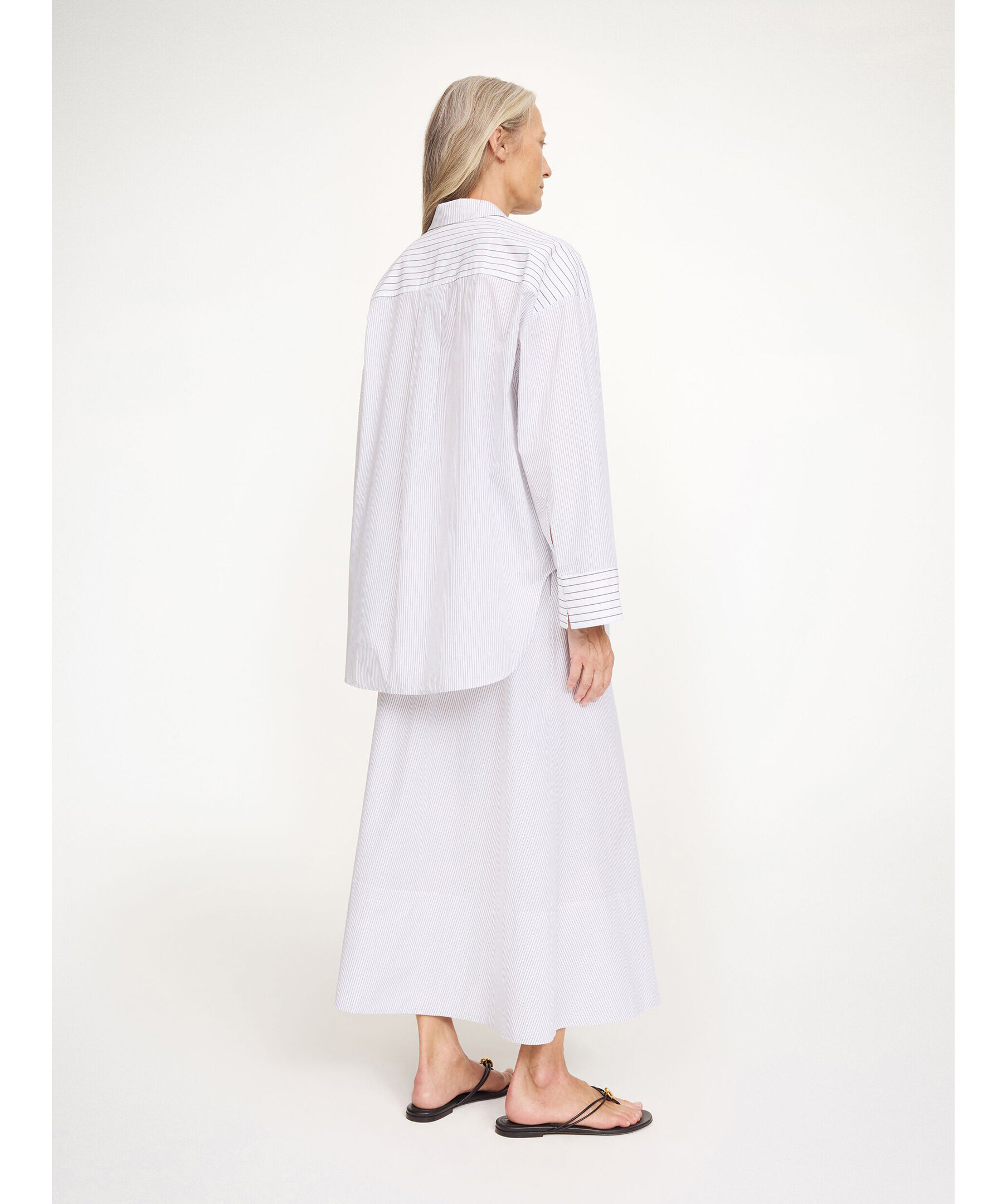 Oversized Derris organic cotton shirt från By Malene Birger i krispig ekologisk bomull med klassisk skjortkrage, knappslå och rundade fållar. Skjortan har en avslappnad silhuett med framficka och fungerar lika bra tillsammans med tailored trousers som över jeans för en sofistikerad vardagslook.