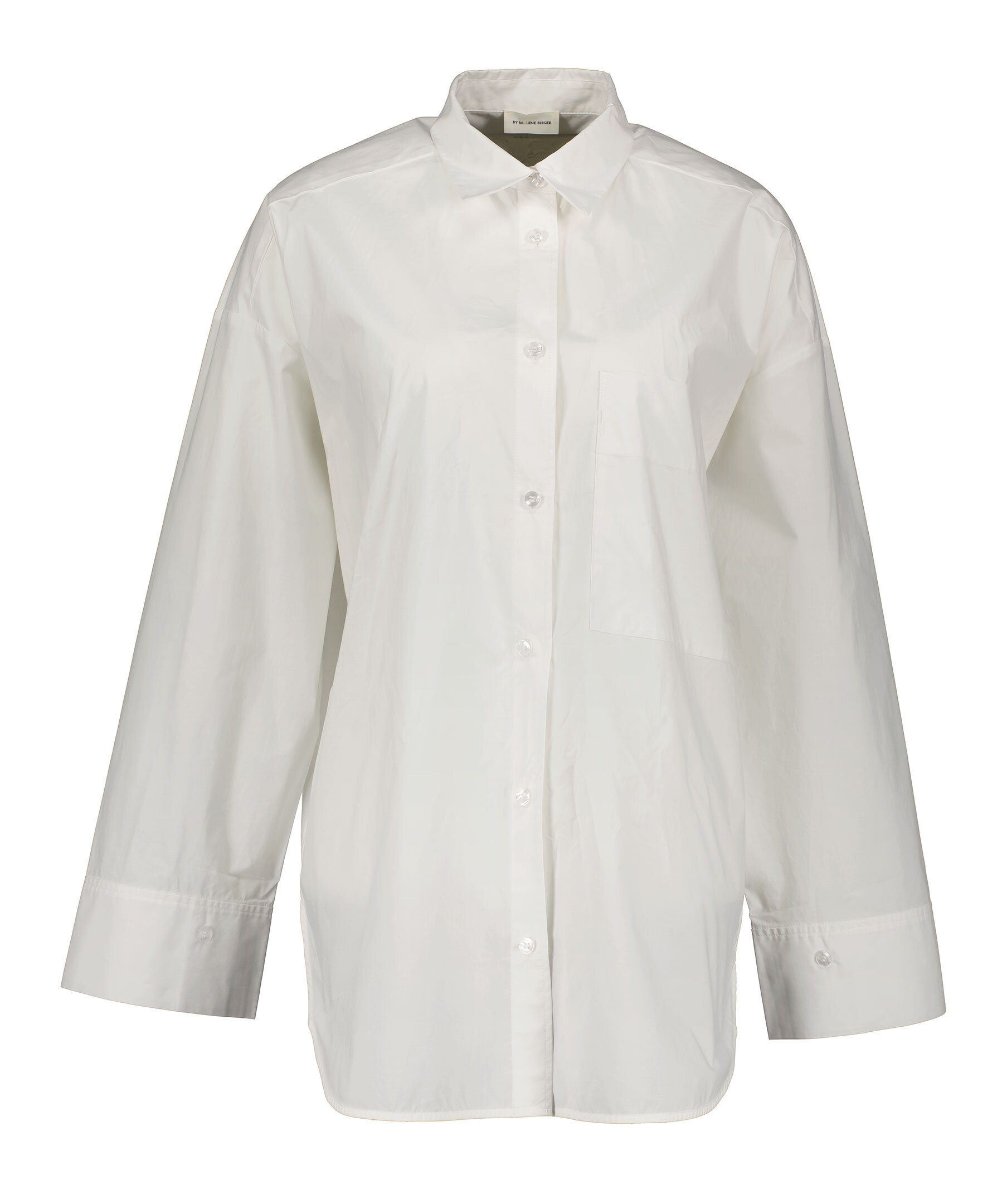 Vit klassisk skjorta från By Malene Birger. Tillverkad i 100% ekologisk bomull. Knappslå framtill, rundade fållar och en främre stor patchficka. Oversized passform.