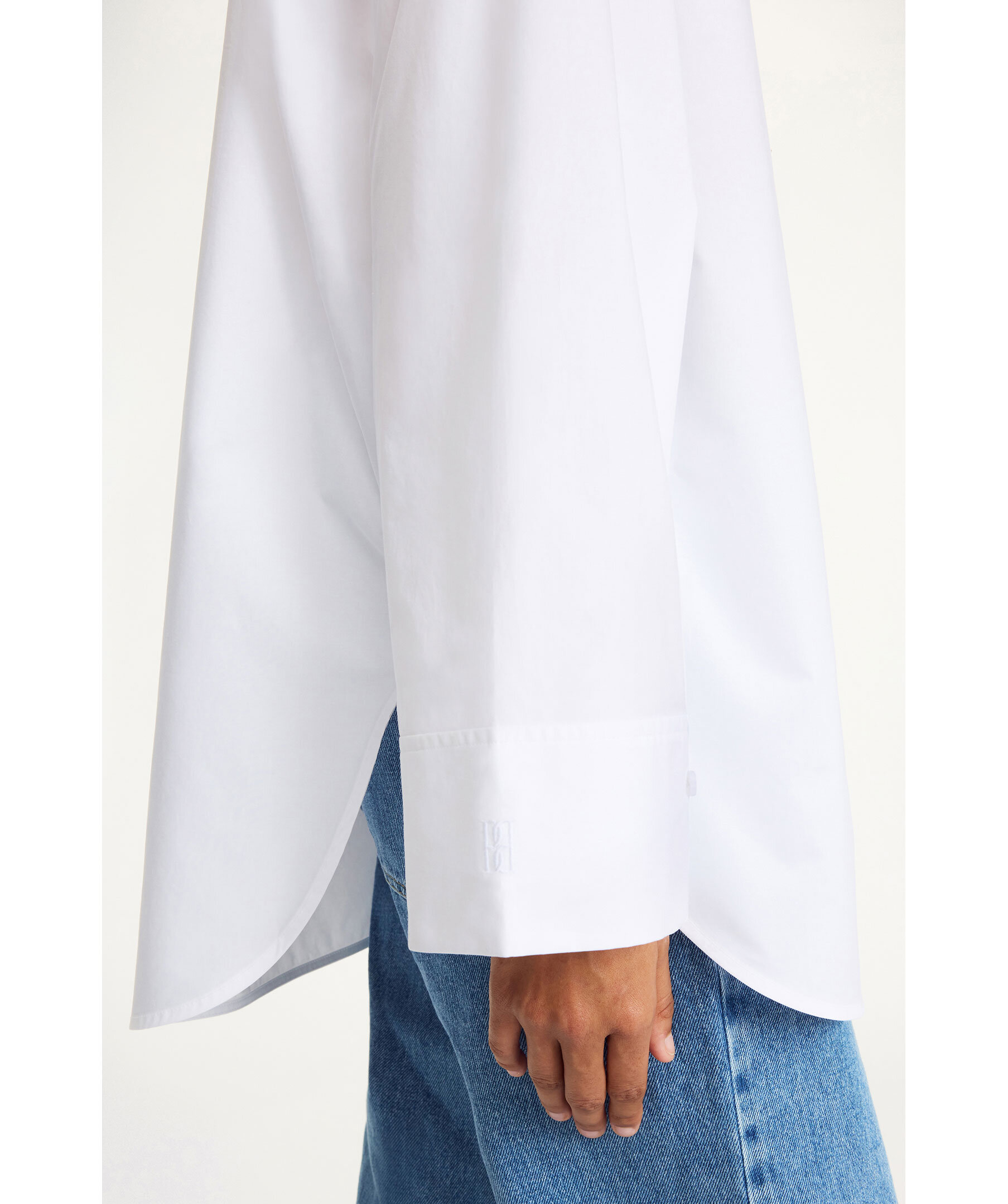 Vit klassisk skjorta från By Malene Birger. Knappslå framtill, rundade fållar och en främre stor patchficka. Tillverkad i 100% ekologisk bomull.