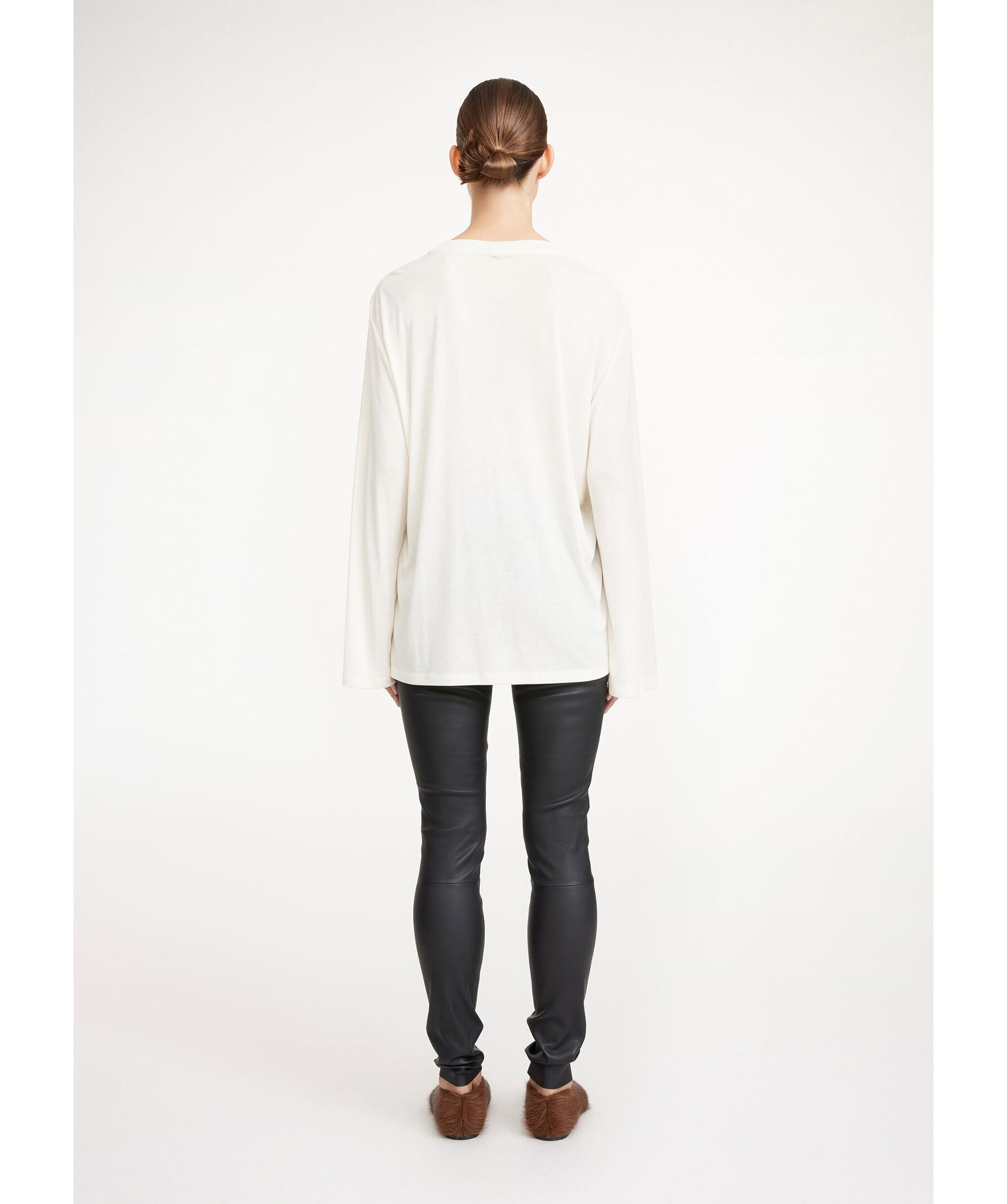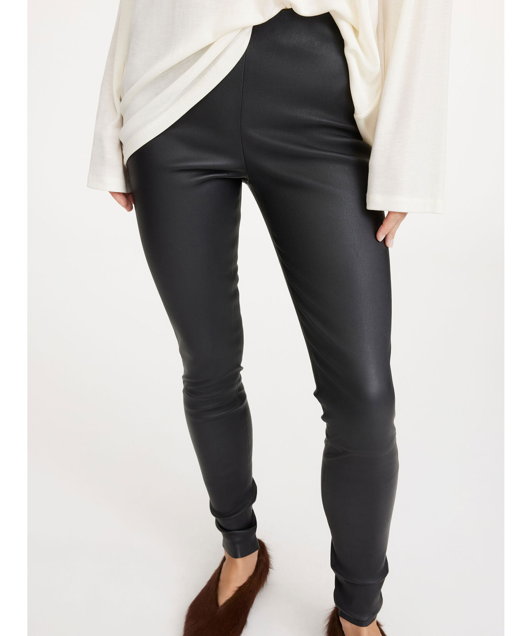 Svarta leggings i läder från By Malene Birgers. Byxorna är mjuka och är designade för en figurnära passform och tillverkade av stretchig Nappa för extra komfort. Den elastiska midjan gör dem enkla att dra på och bära hela dagen.