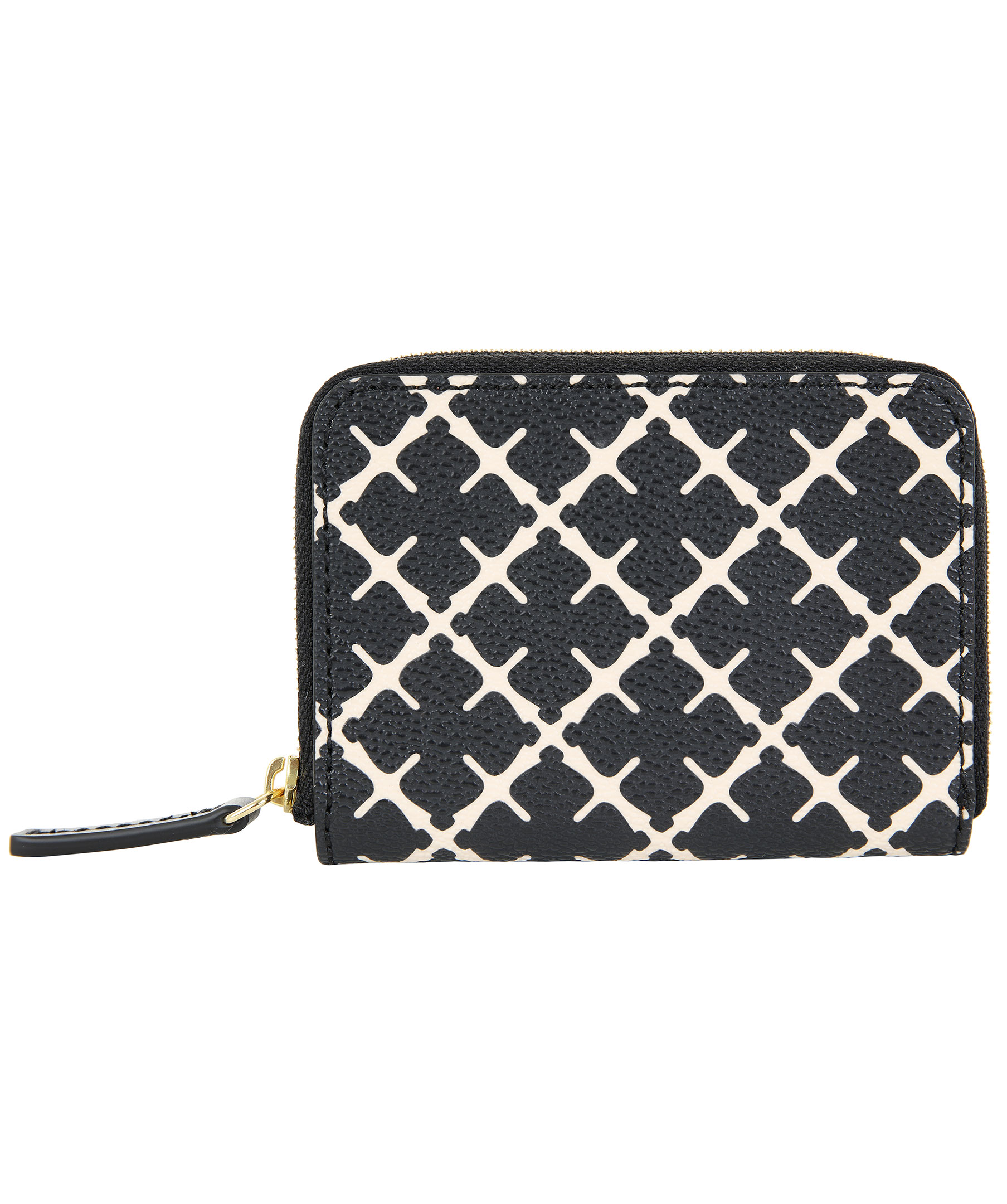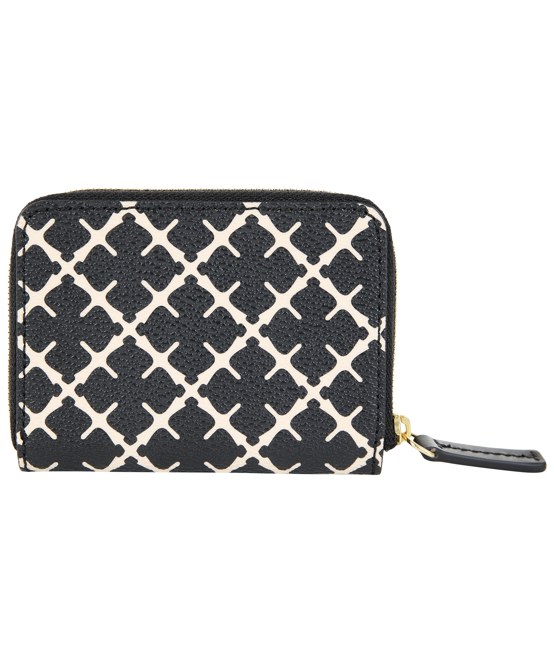 Svart/vit mönstrad plånbok från By Malene Birger. Tillverkad i PVC. Fyra fack för kontokort samt plats för mynt eller sedlar.