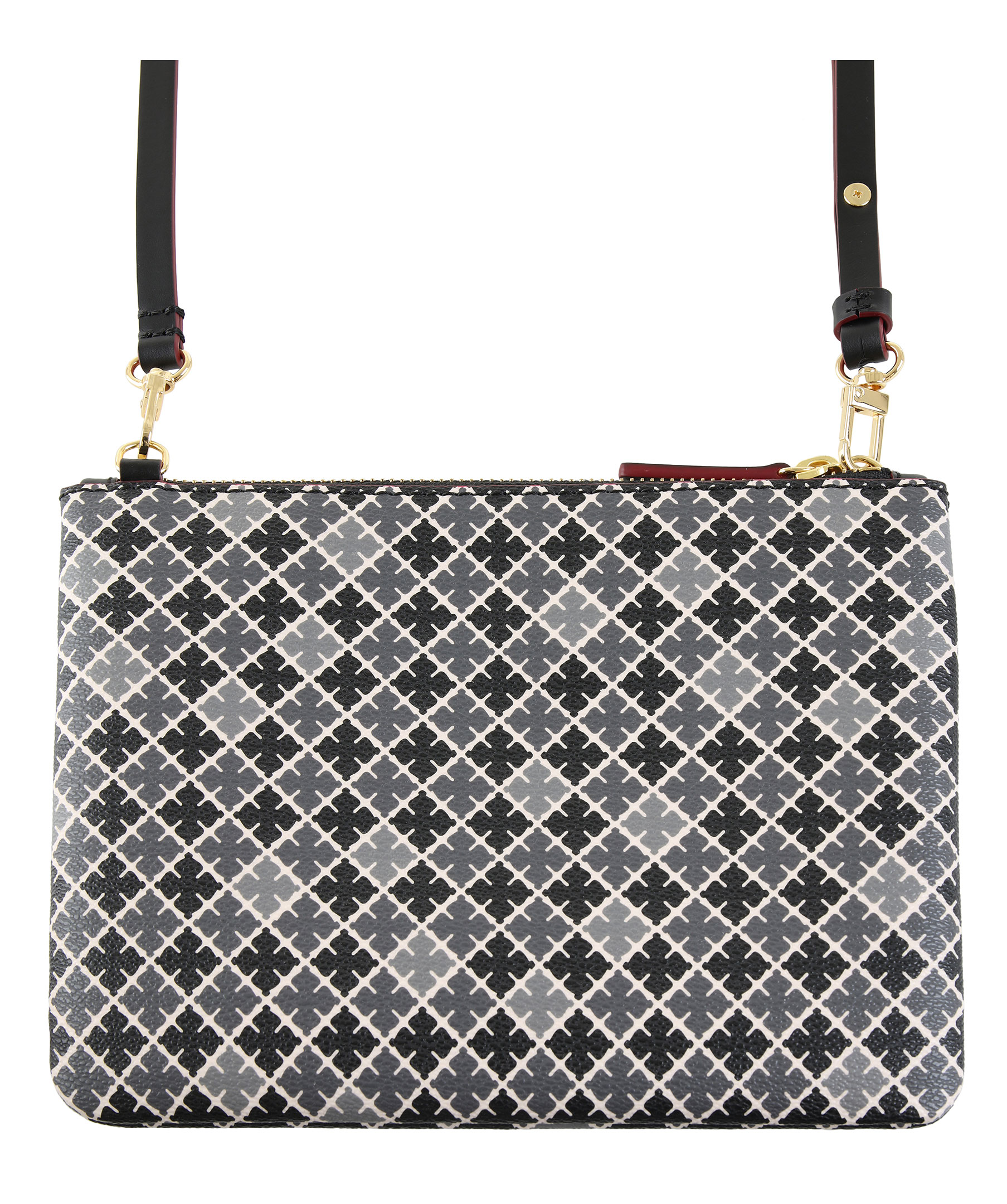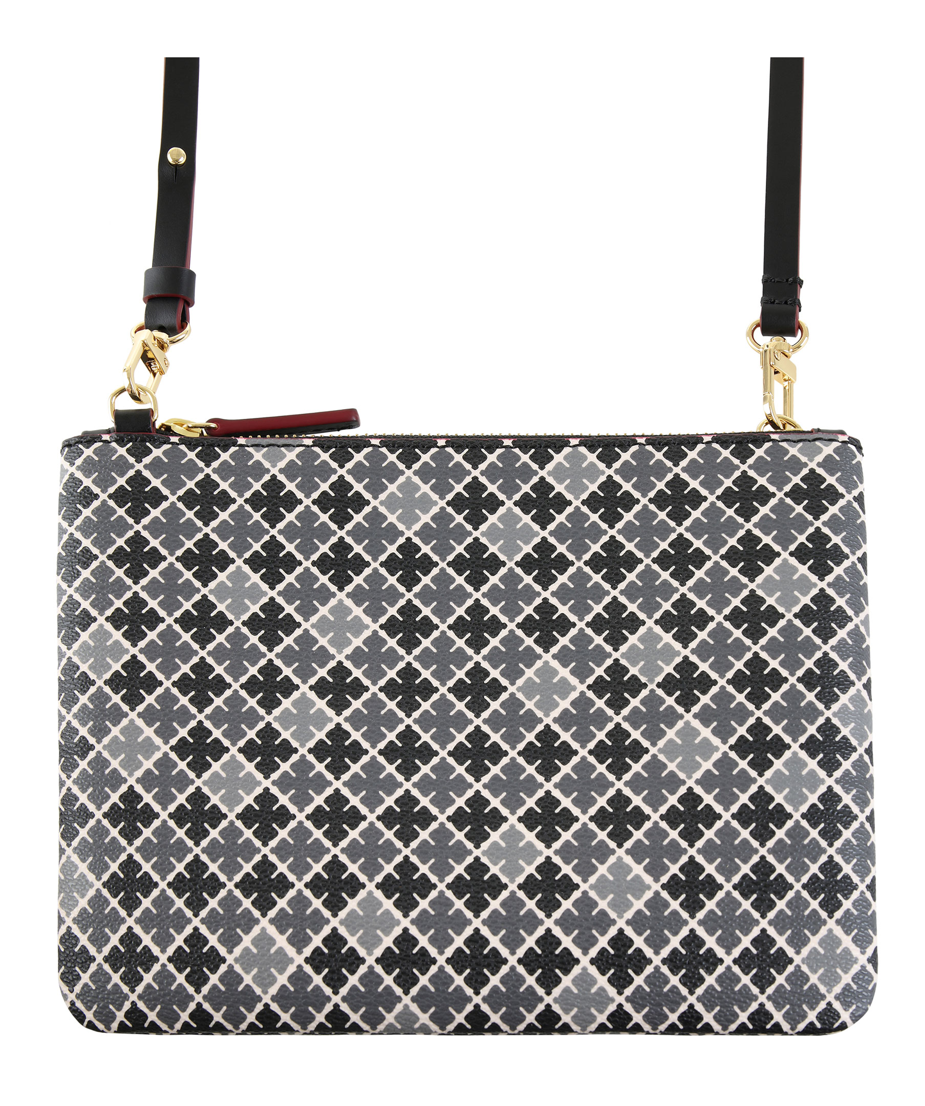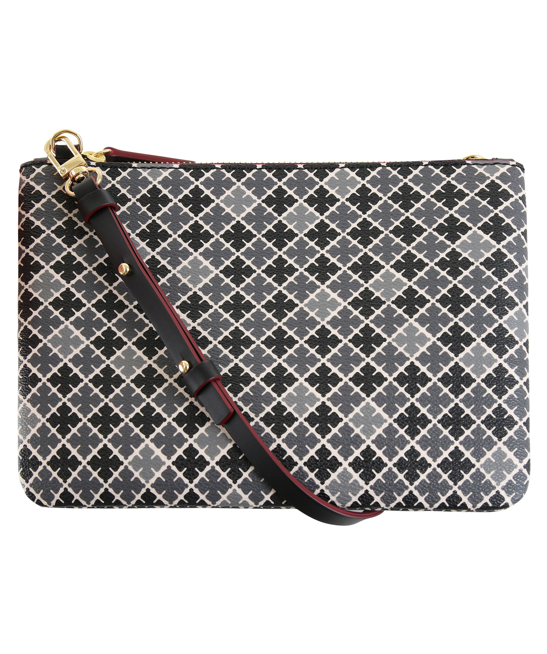 Kuvertväska från By Malene Birger i deras klassiska mönster. Mönstret är i vitt, grått och svart. Stängs med dragkedja upptill. Löstagbar axelrem följer med.