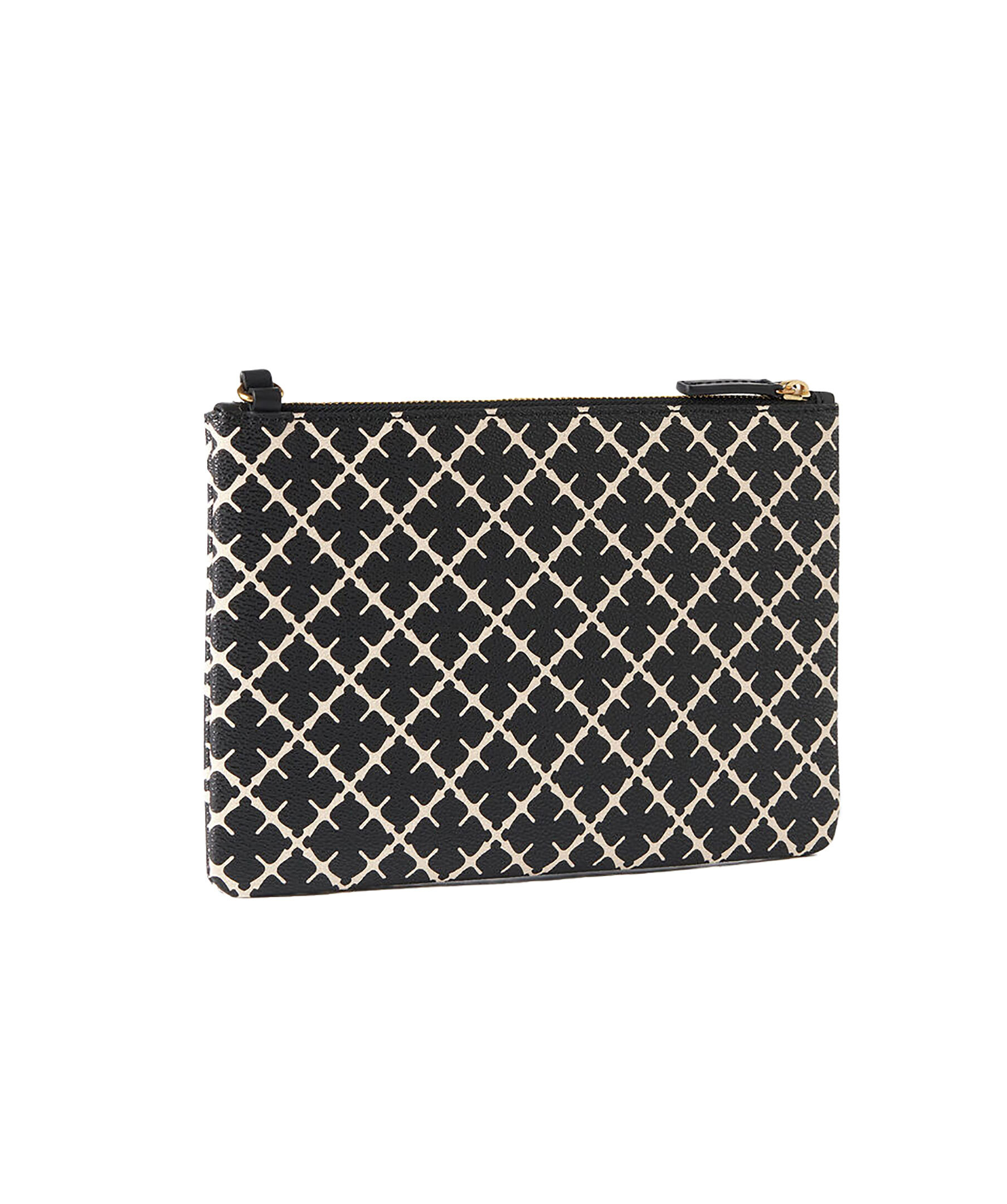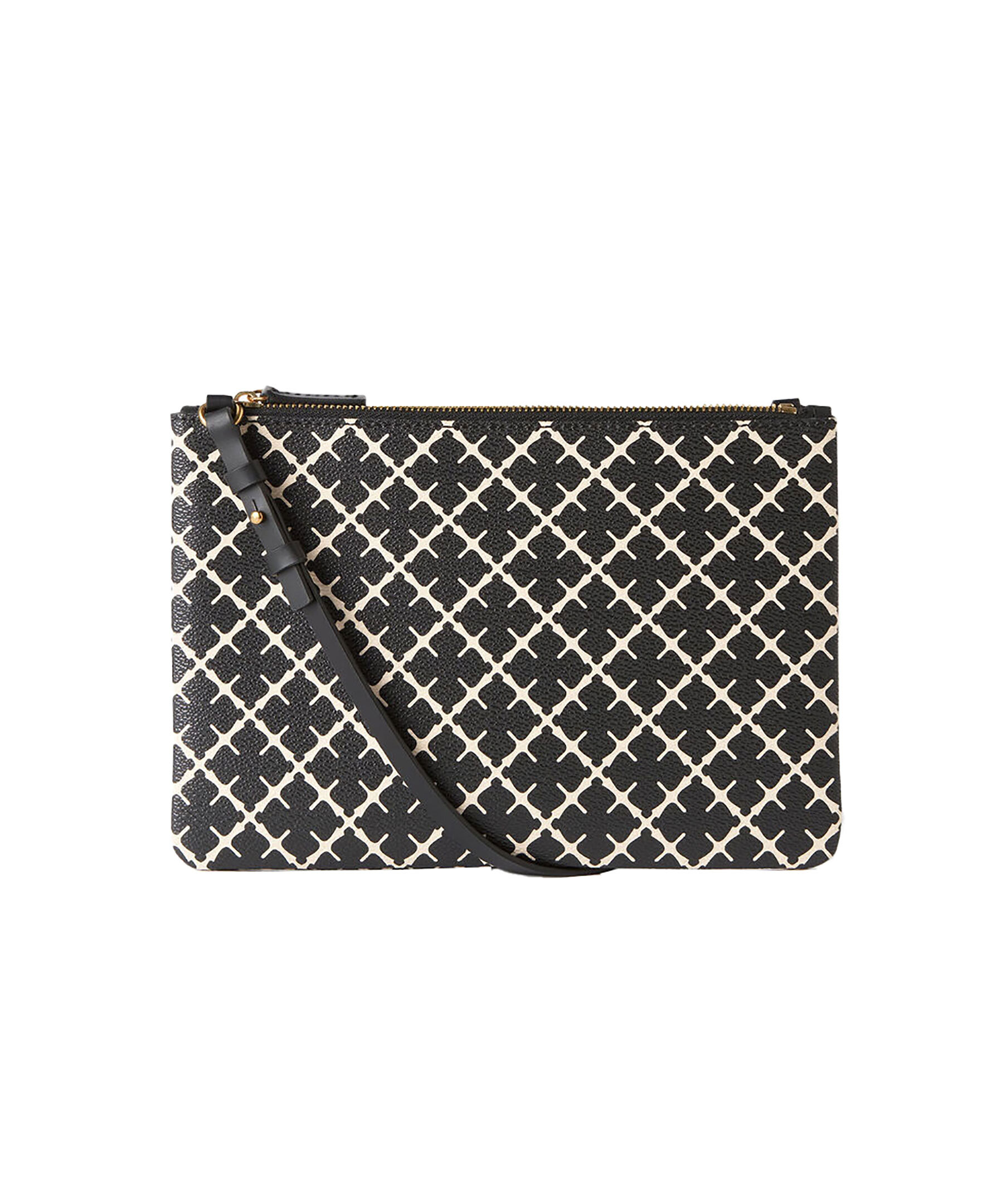 Väska i signaturmönster i svart och beige från By Malene Birger. Väskan har en smal, avtagbar rem vilket gör att den funkar både som en crossbody-väska och en clutch. Stängs med dragkedja. Mått: B: 25,5cm, H: 18cm.