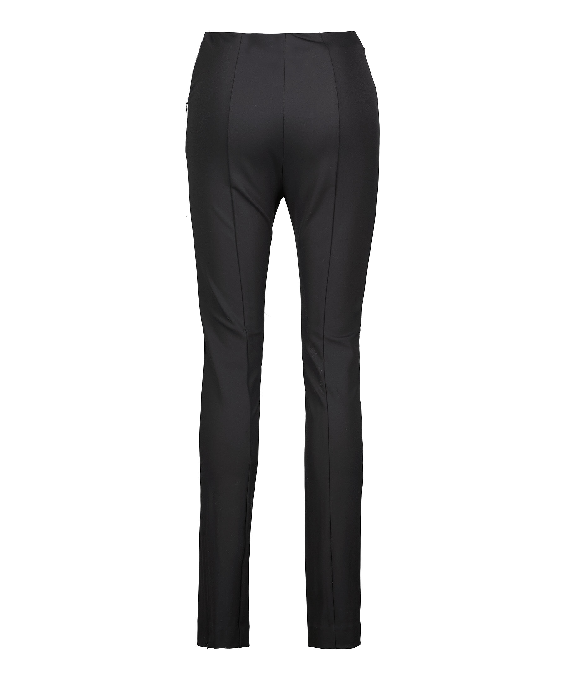 Svarta kostym byxor från By Malene Birger. Pressveck, fram och baktill. Figurnära passform. Diskreta dragkedjor vid benslut. Elastisk resår i midjan.
