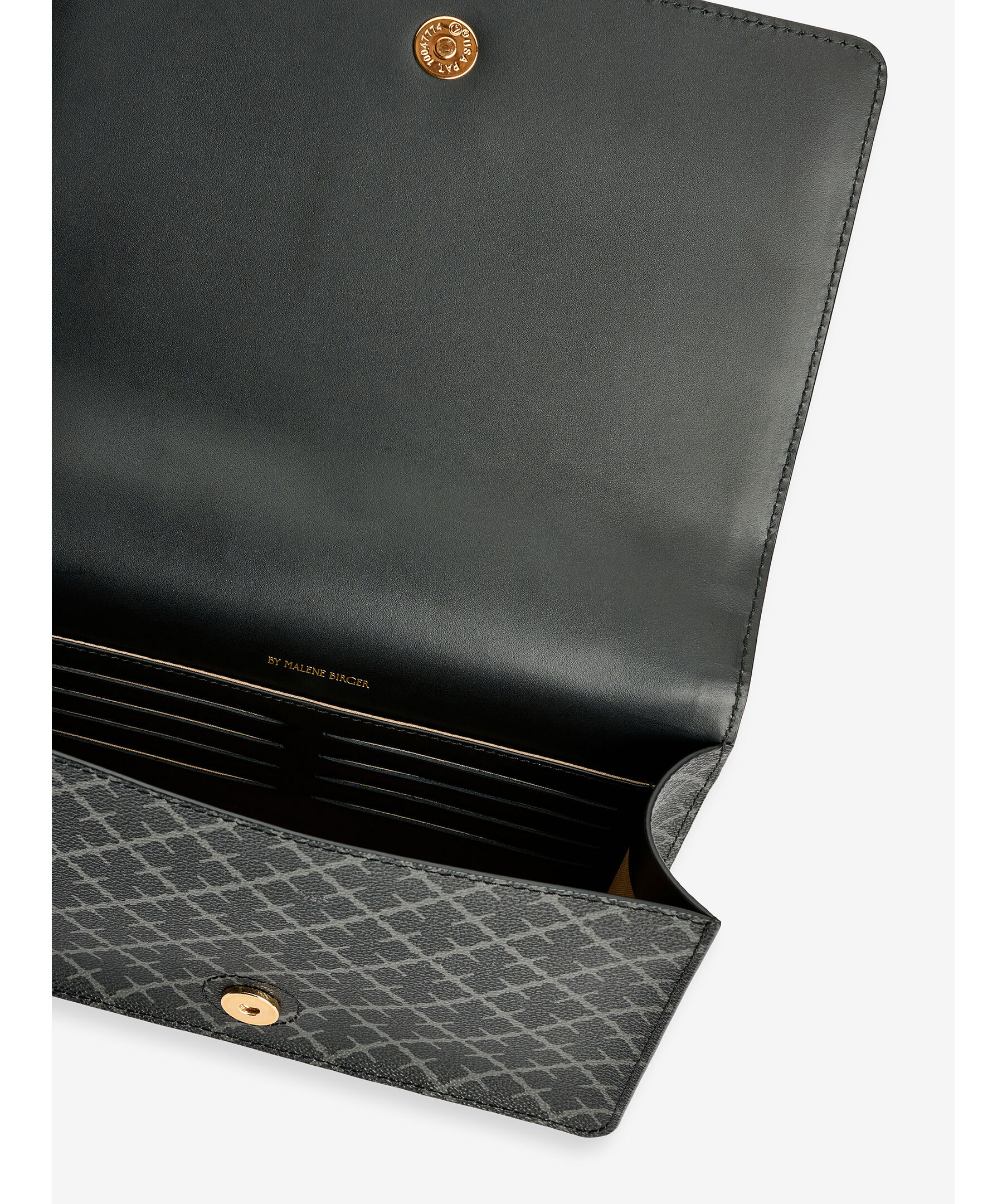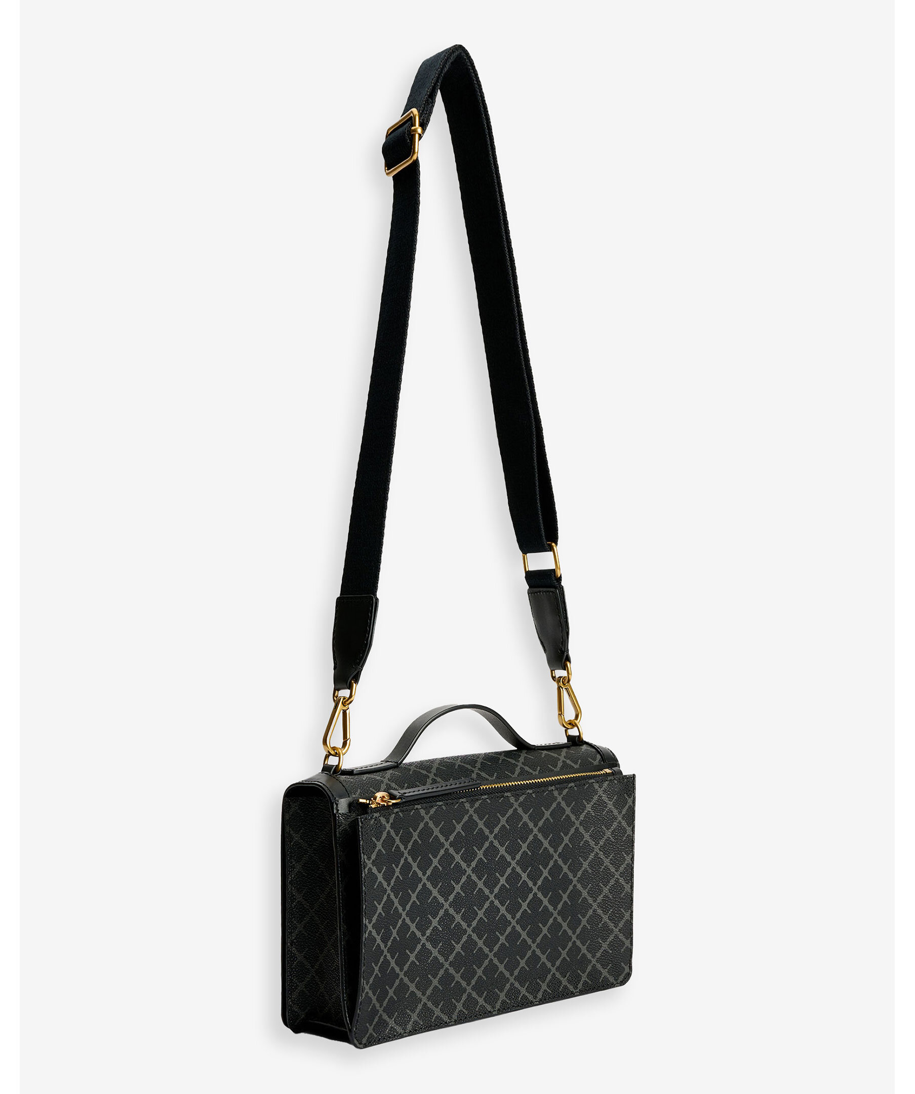 Svart och grå mönstrad väska från By Malene Birger. Locket stängs med magnetlås. Justerbar axelrem med detaljer i läder. Guldfärgade detaljer i metall. Väskan har två fack. Väskans mått: L 24cm x H 17 cm x 8.5 cm. Axelremmen är 109 cm lång.