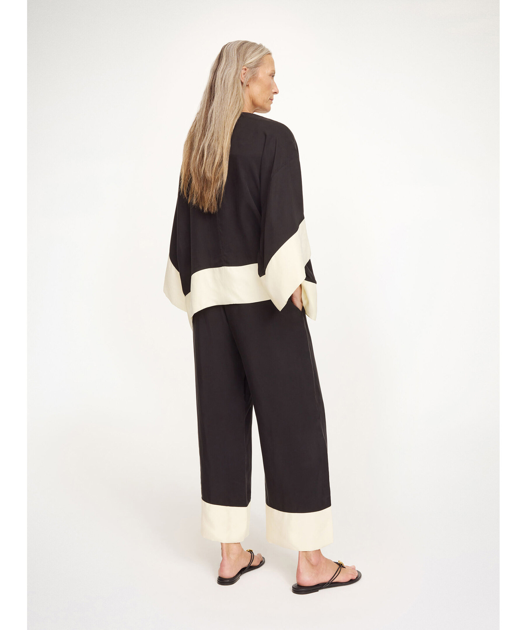 Svarta Mirabello Wide‑Leg Trousers från By Malene Birger med bohemisk och luftig känsla. Byxorna har en hög elastisk midja, breda ben och praktiska sidofickor – perfekt för en stilren men bekväm look som lätt kan kläs upp eller ner.