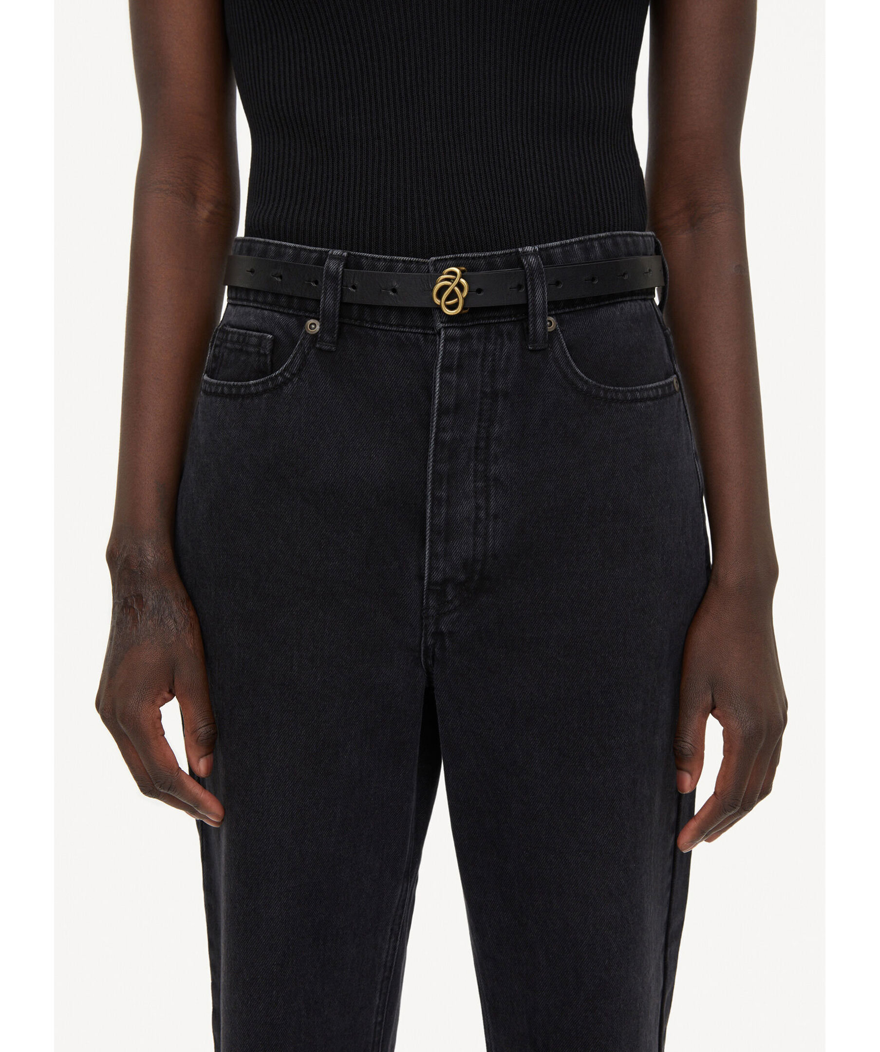 Svart läderbälte med guldfärgat spänne från By Malene Birger .