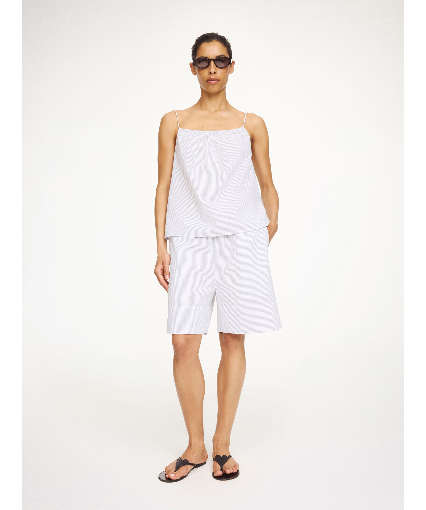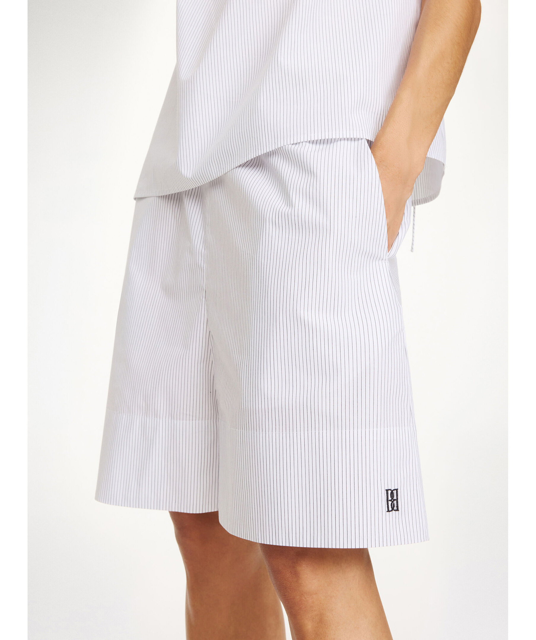 Randiga Siona Organic Cotton Shorts från By Malene Birger i en lätt och bekväm design med elastisk midja för optimal komfort. Shortsen har en loose fit‑silhuett som gör dem perfekta att bära med toppar, t‑shirts eller blusar under övergångssäsonger och varmare dagar.