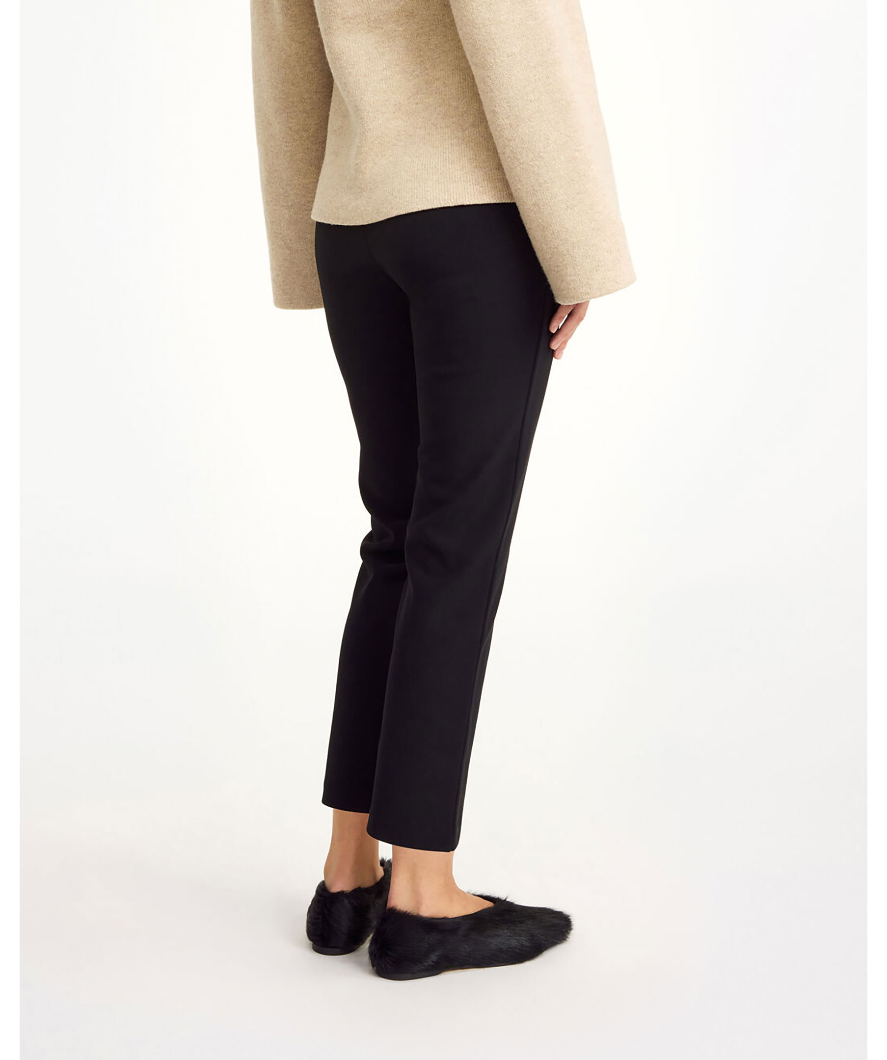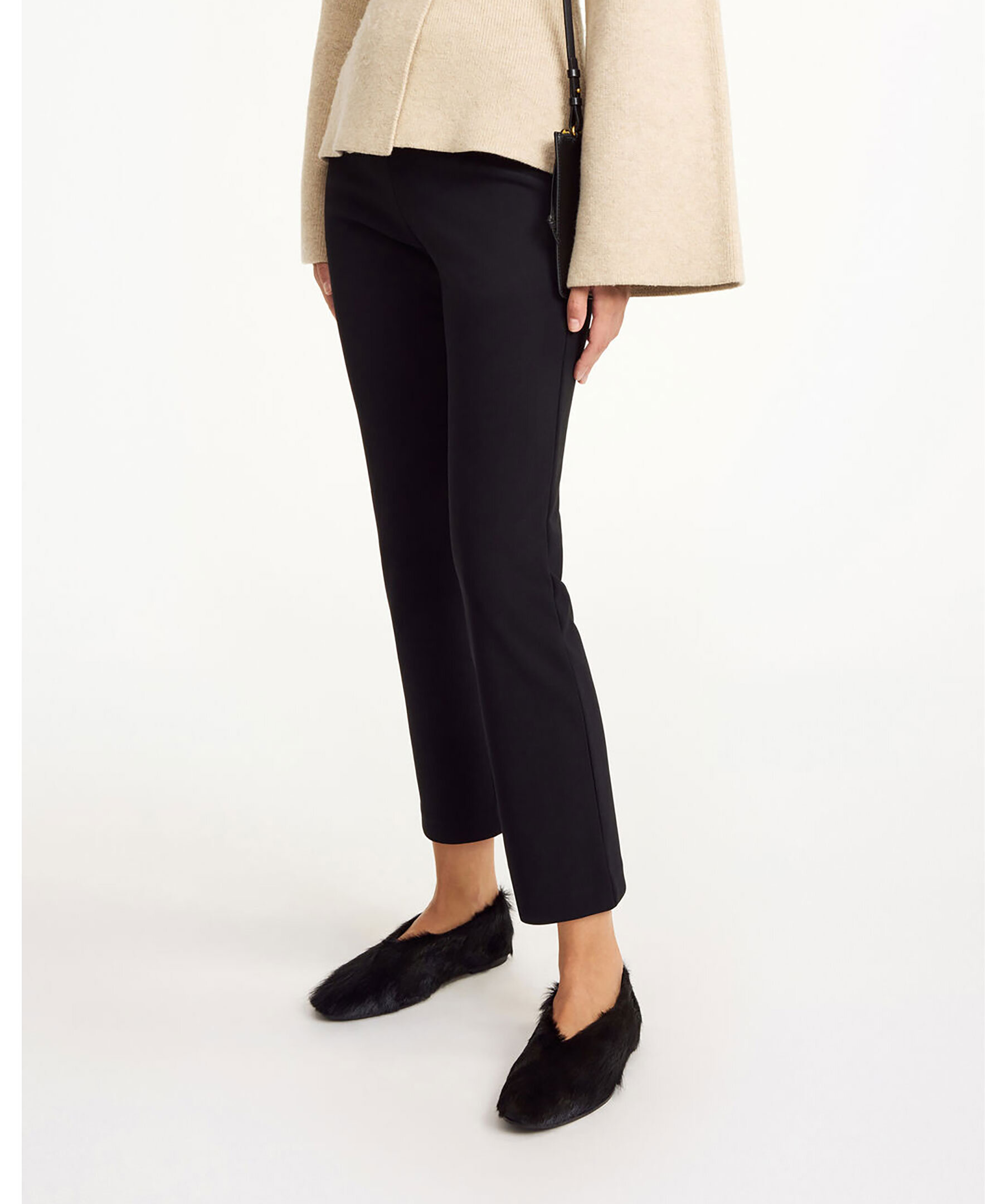 Svarta, croppade byxor från By Malene Birger. Byxorna har korta ben och en elastisk midja. Tillverkade i en polyesterblandning.
