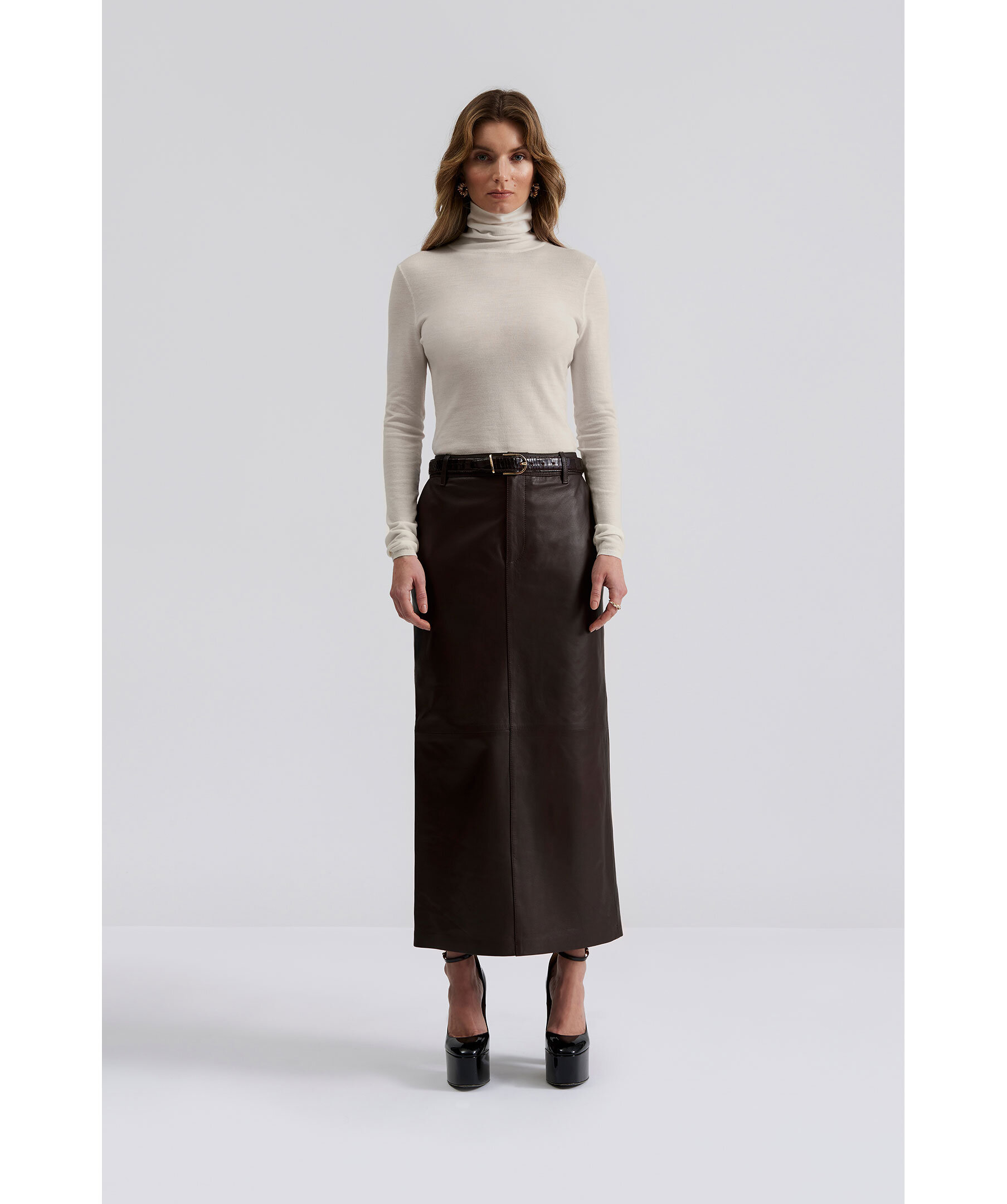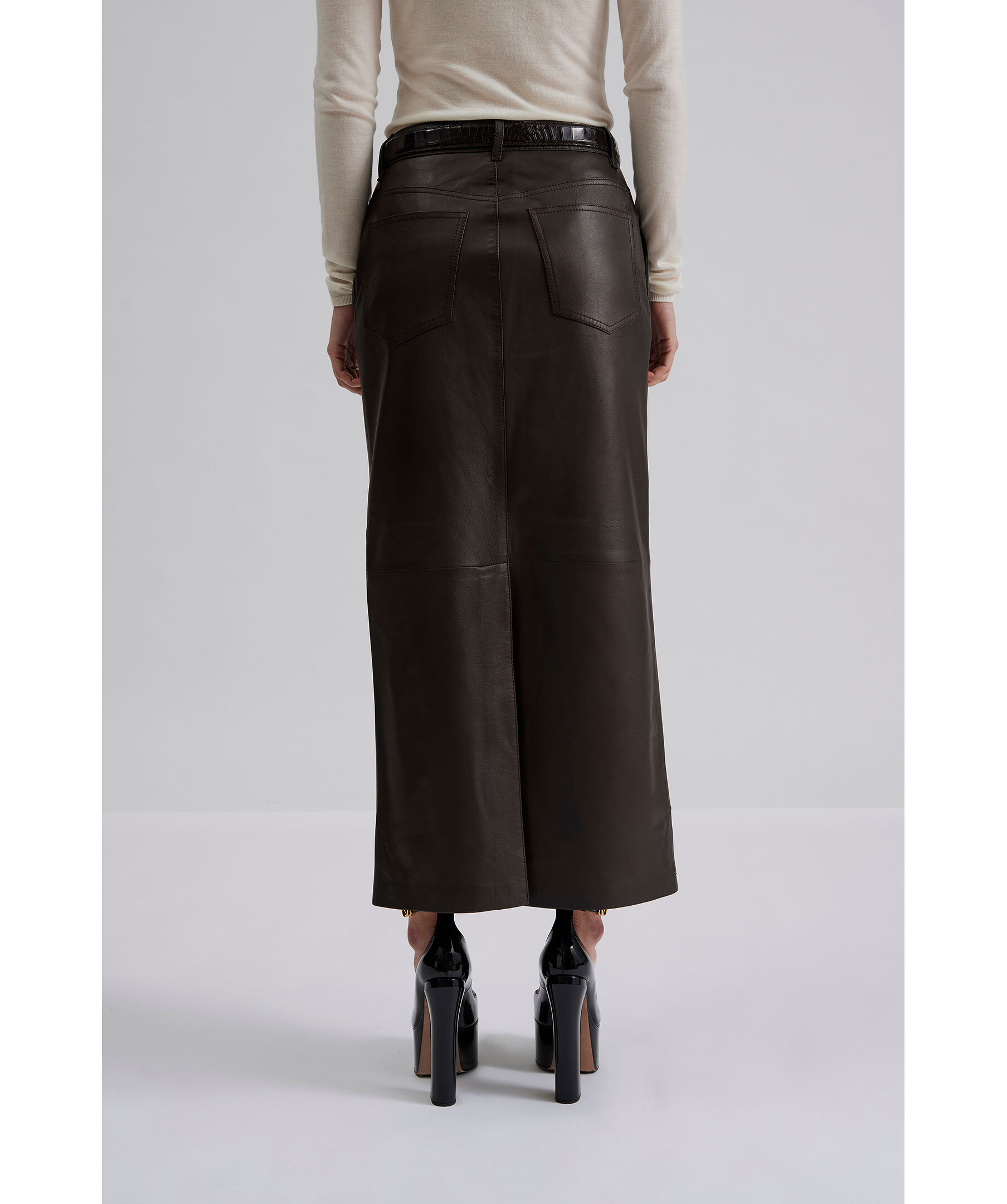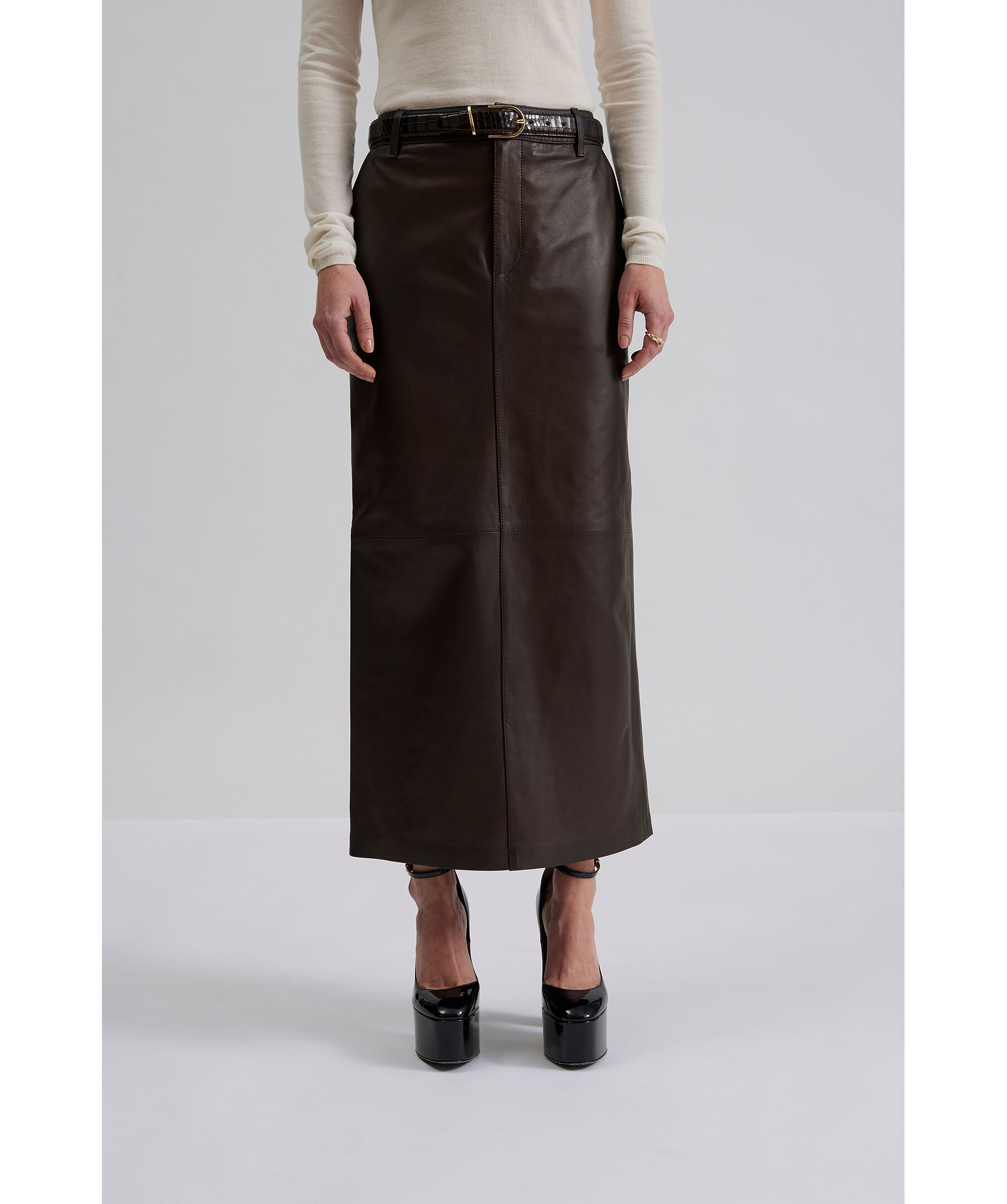 By Malina Pim Leather Maxi Skirt - Choklad