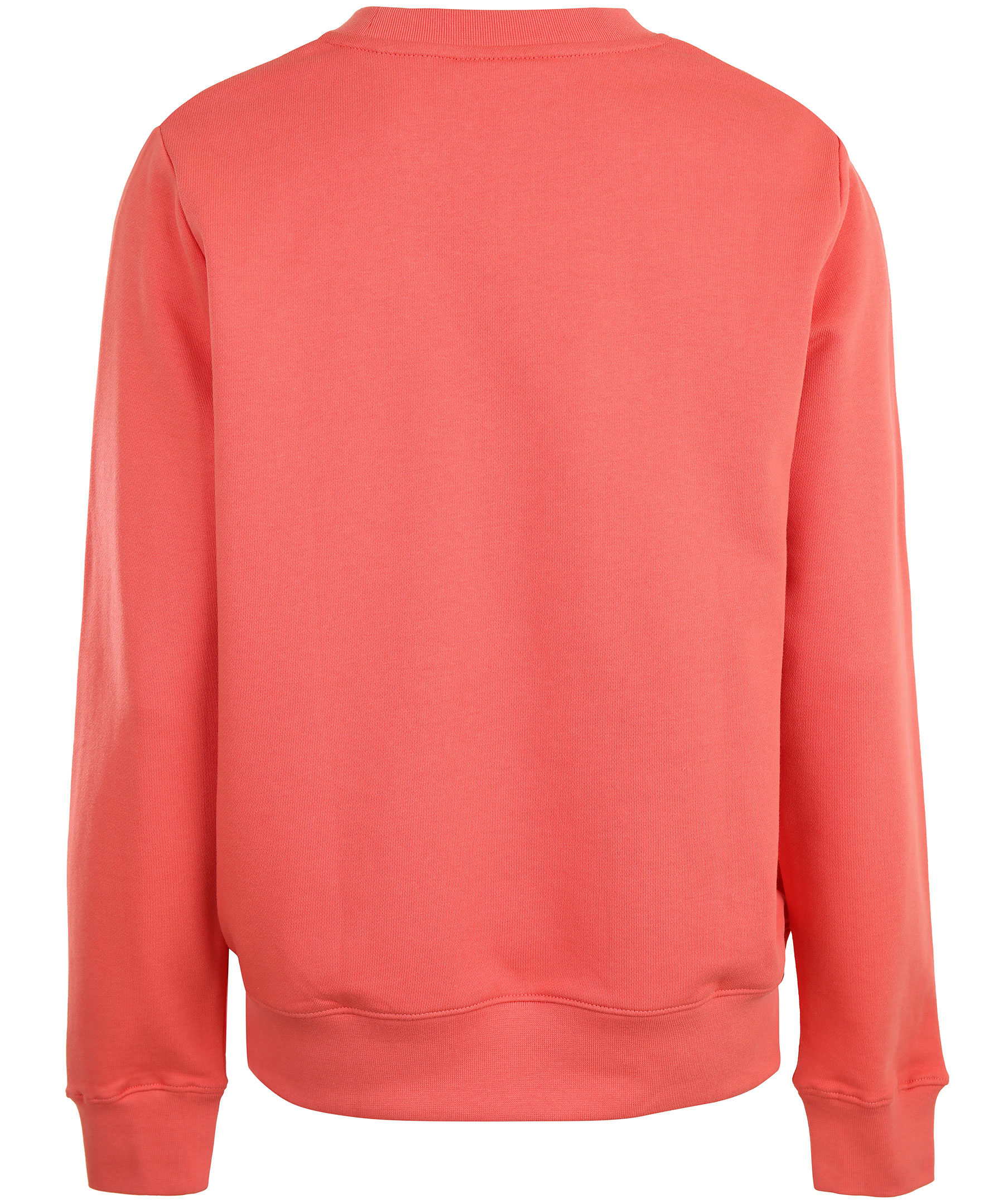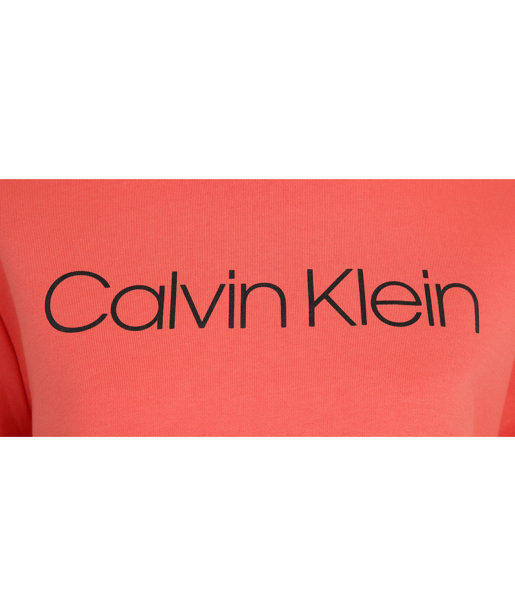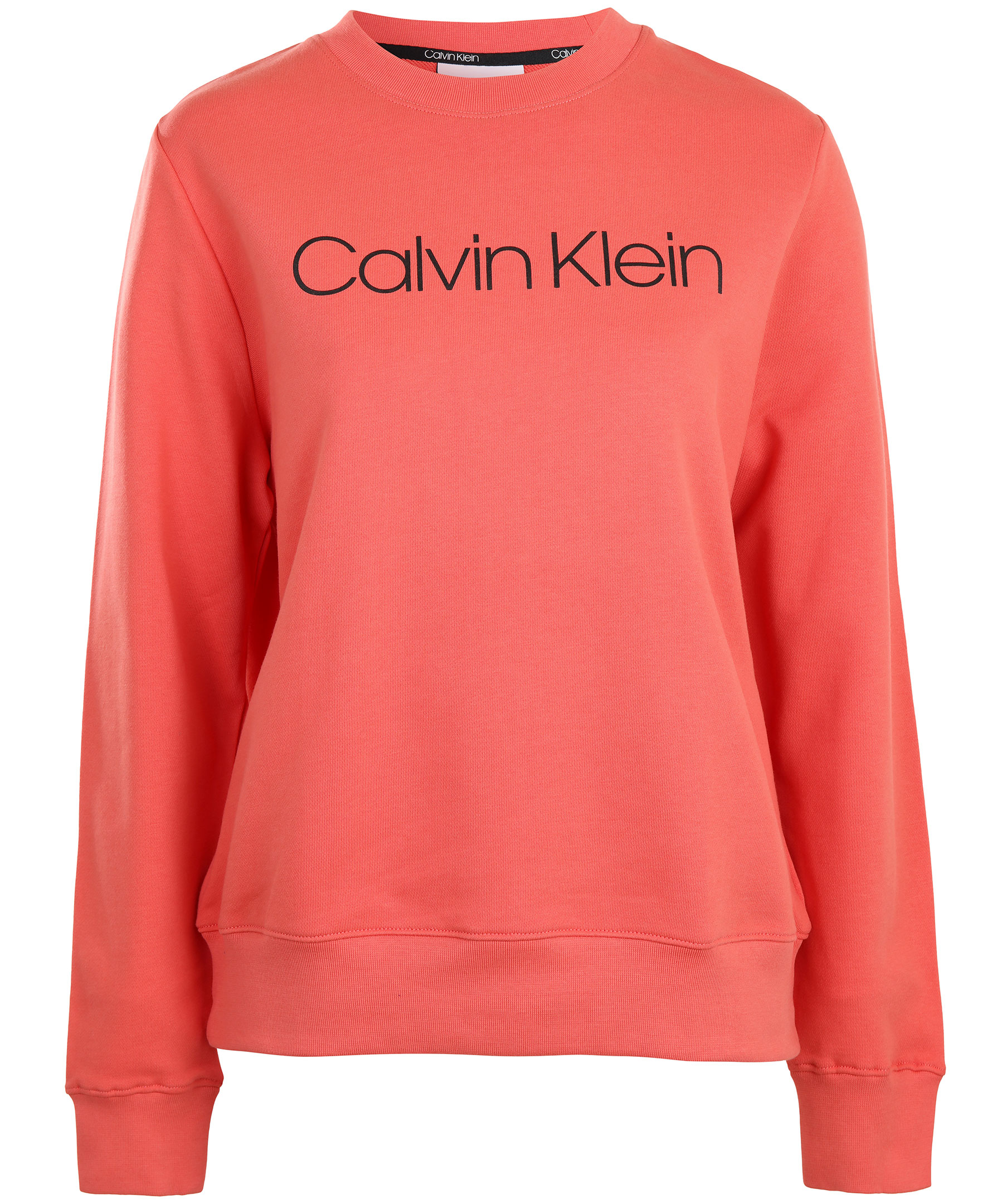 Korallröd sweatshirt från Calvin Klein i bomullskvalité. Ribbstickade muddar vid hals, ärm och plaggslut. Svart logotyp tryckt på bröstet.