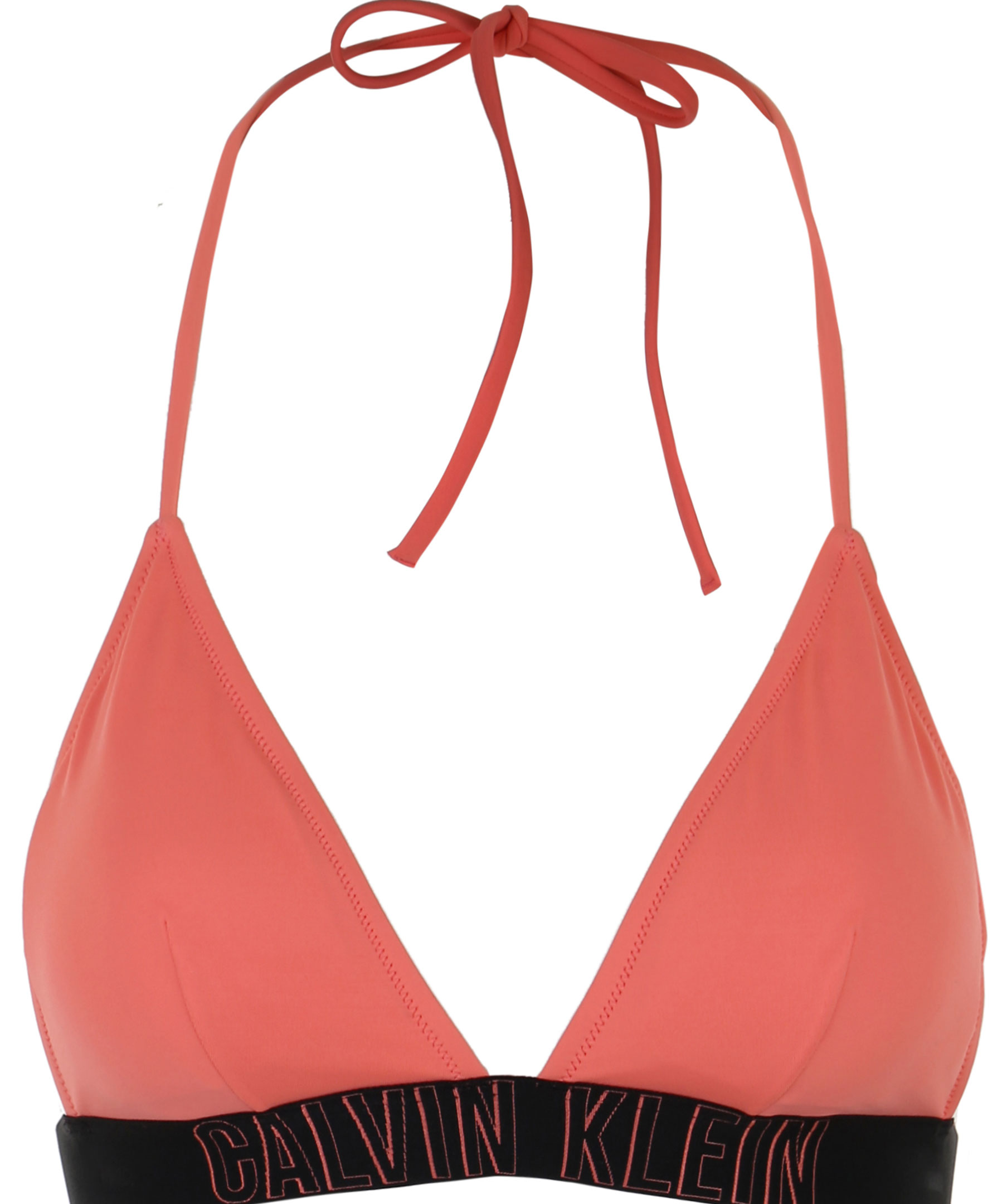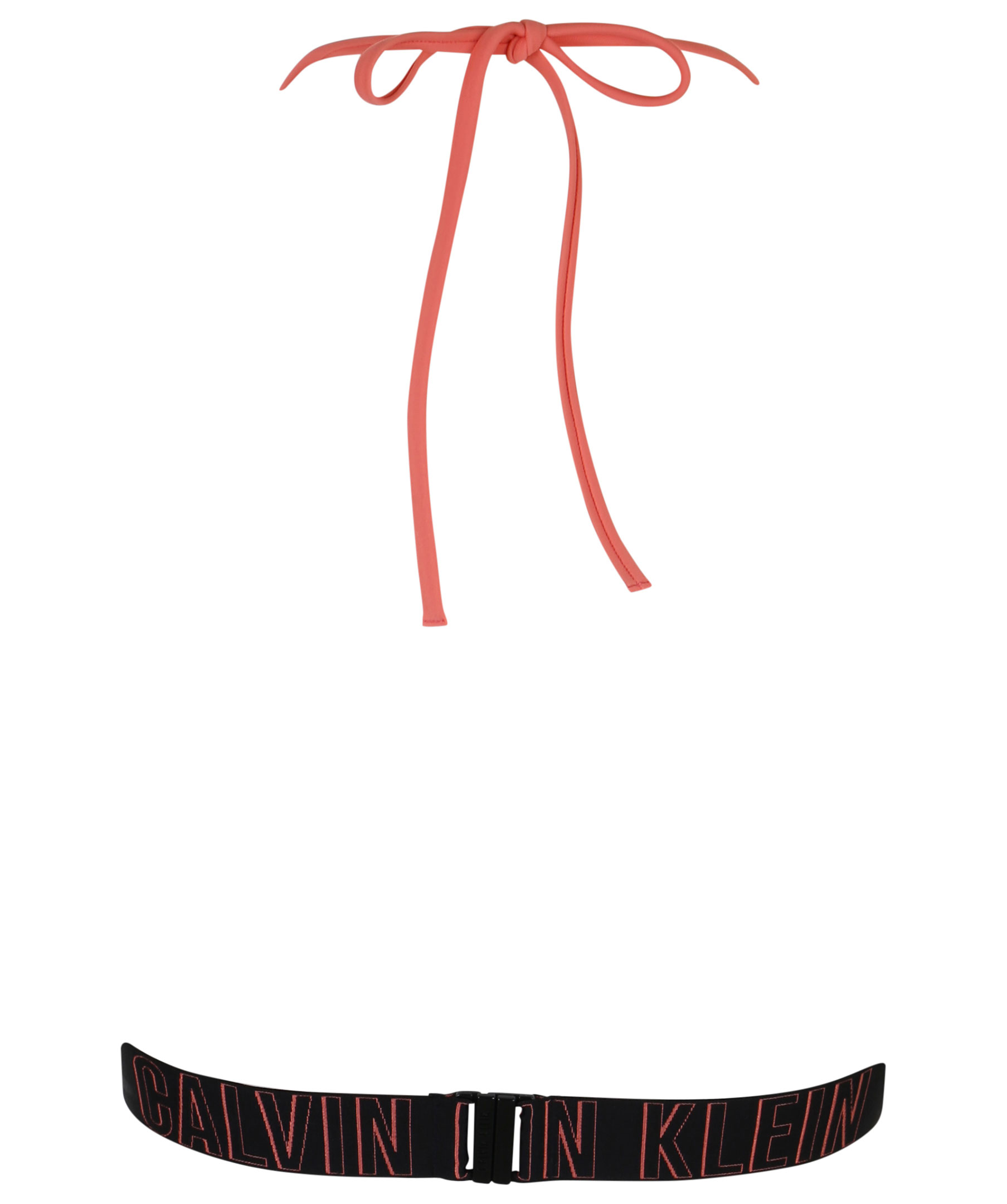 Korallfärgad bikinitopp från Calvin Klein med knyt i nacken. Trekantsmodell med tydlig logotyp i resåren.