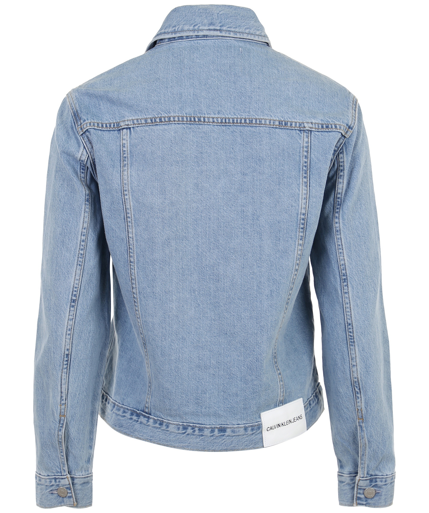 Jeansjacka i ljus tvätt från amerikanska Calvin Klein. Två framfickor samt två bröstfickor, klassisk krage och knappstängning. Broderad logotyp vid bröst ficka samt patch med logotyp baktill.