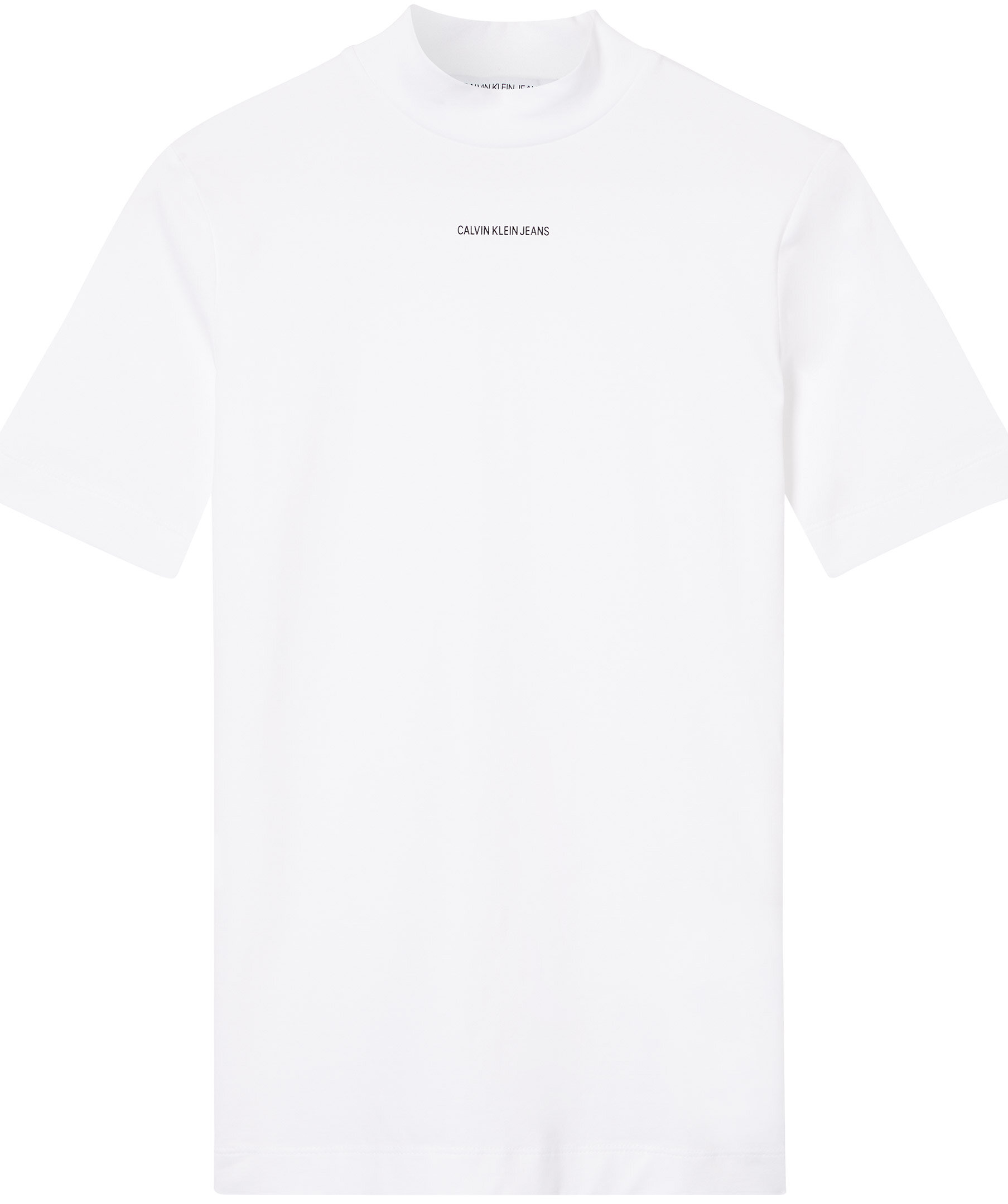 Vit kortärmad halvpolo från Calvin Klein. Tillverkad i en stretchig bomullsblandning. Tajt passform. Liten svart logotyp på bröstet.