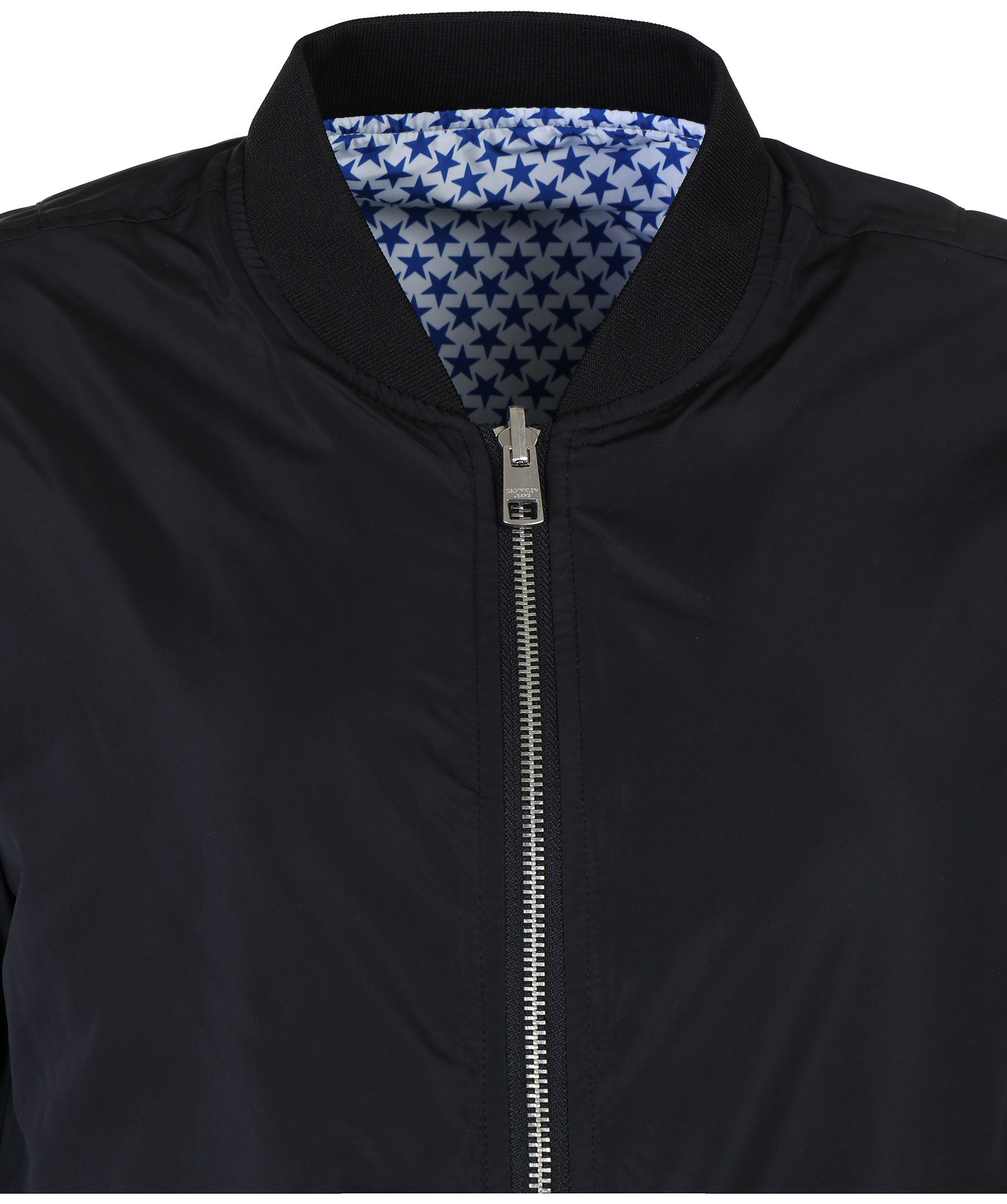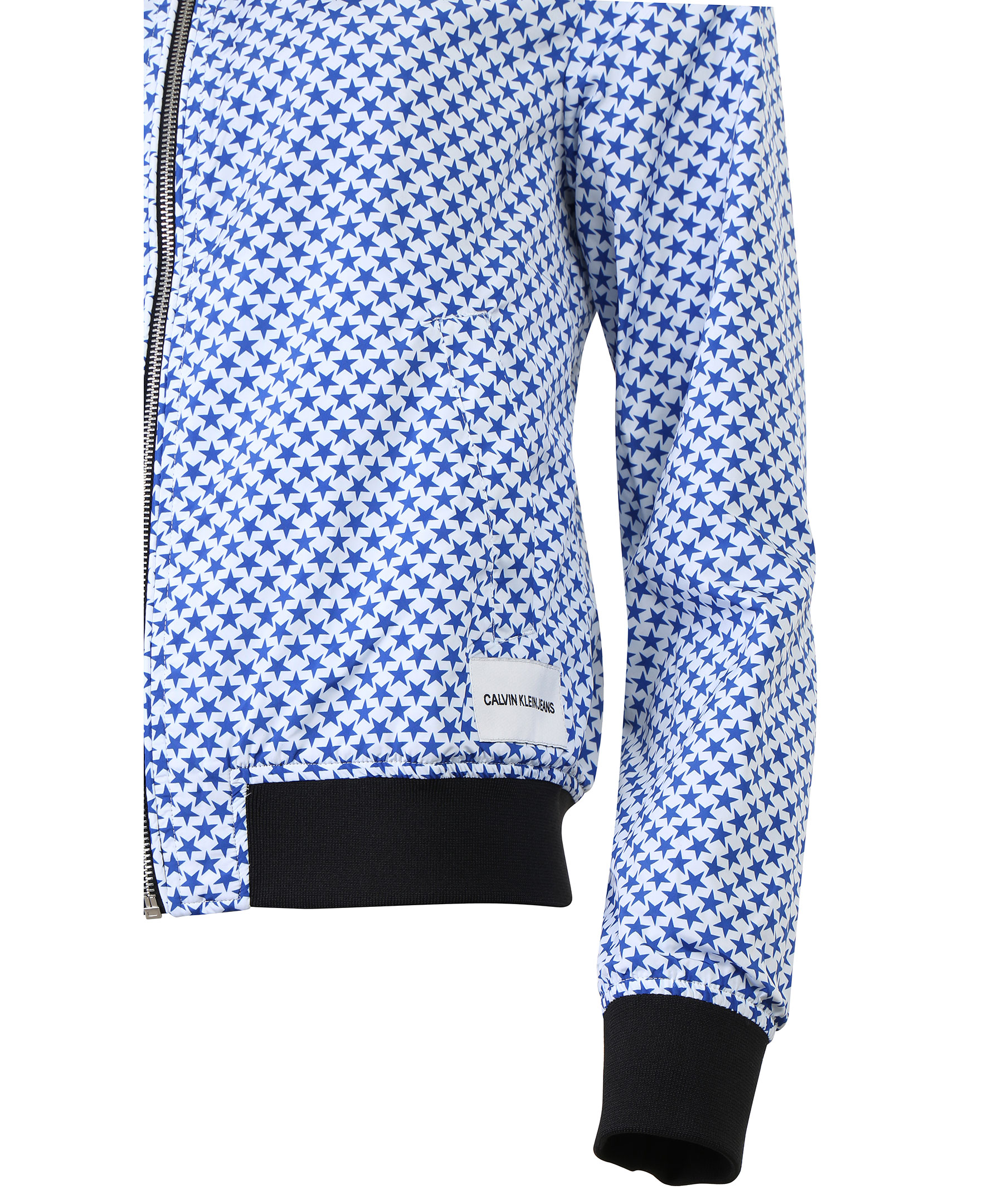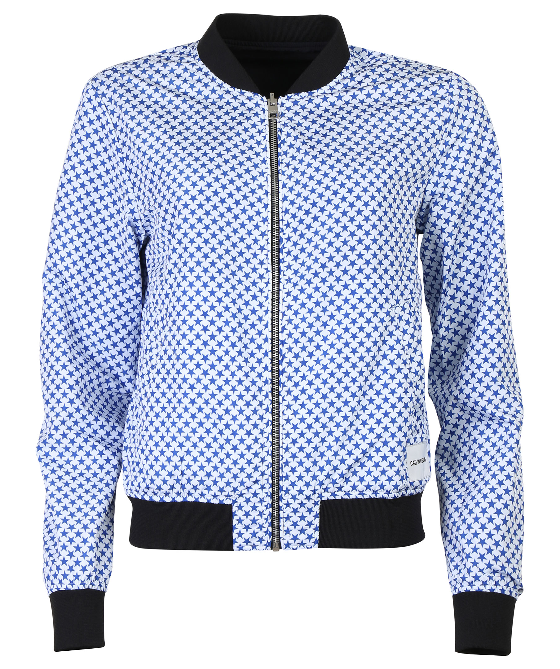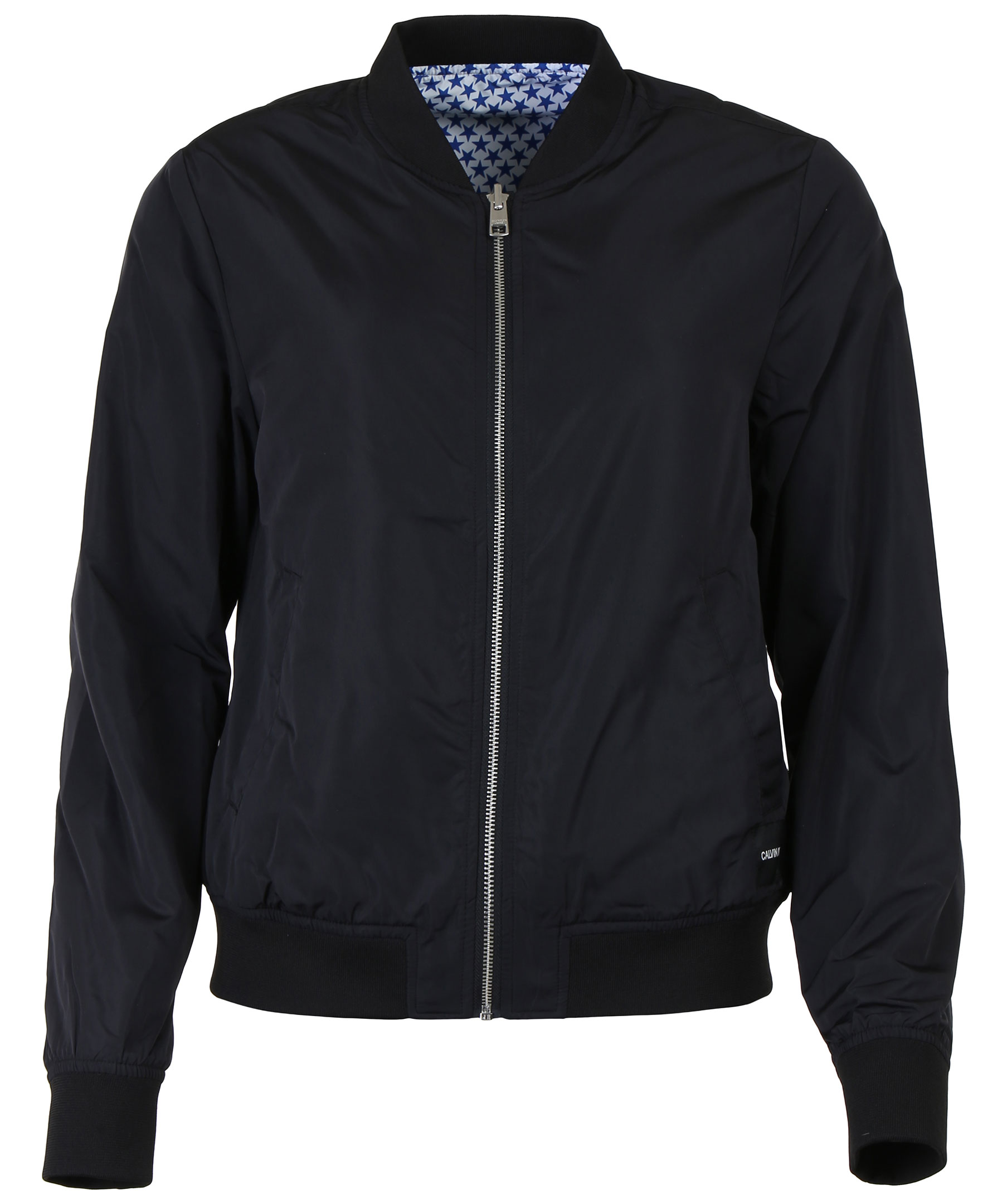 Tunn, vändbar bomberjacka från Calvin Klein. Svart på ena sidan och mönstrad med stjärnor på den andra.