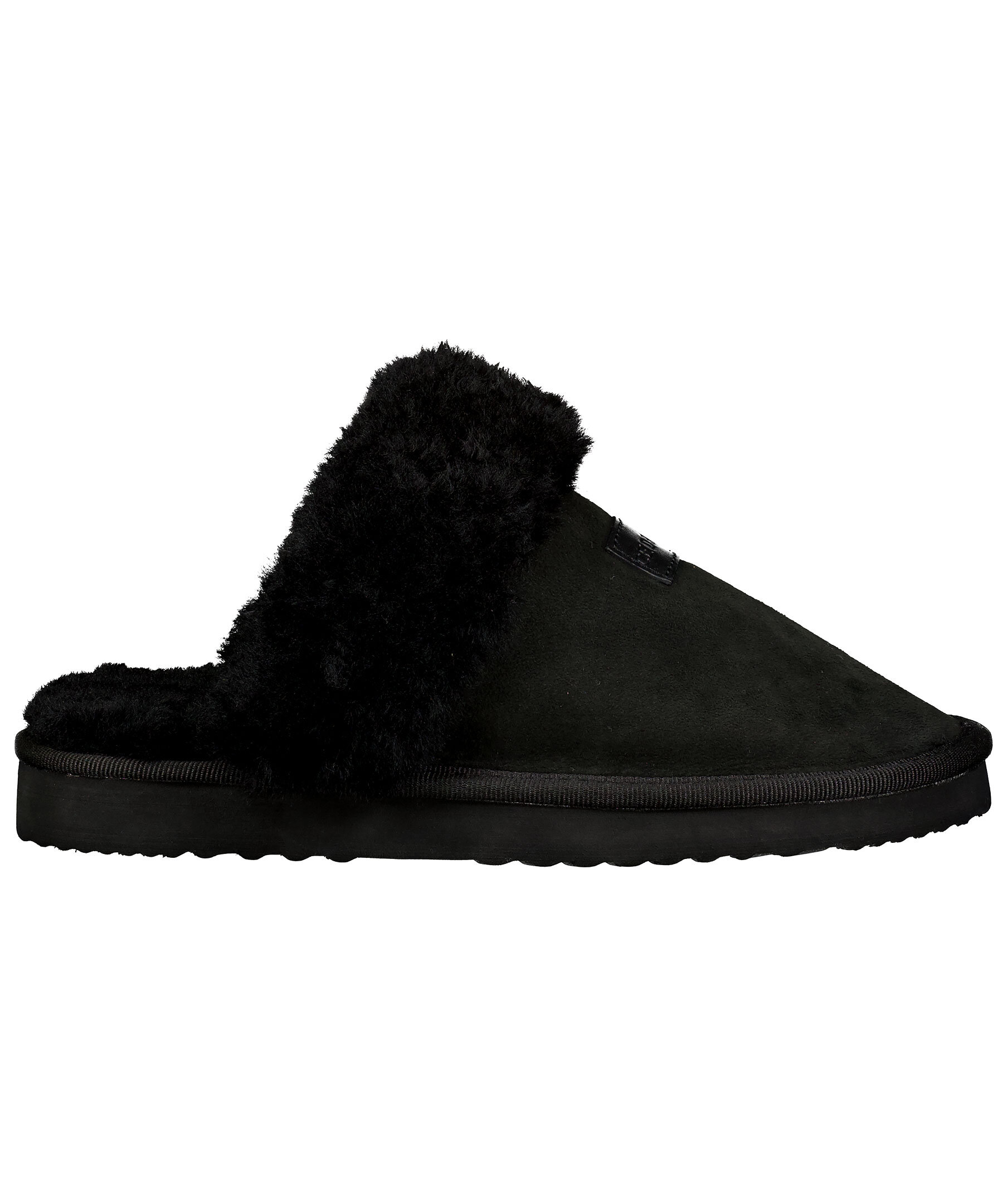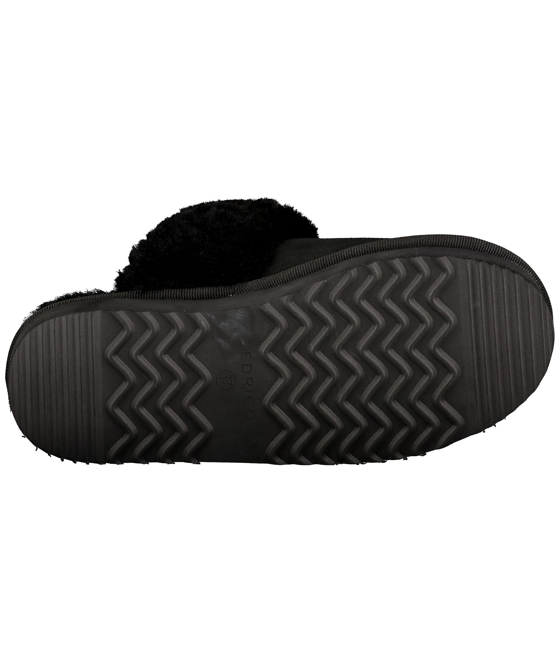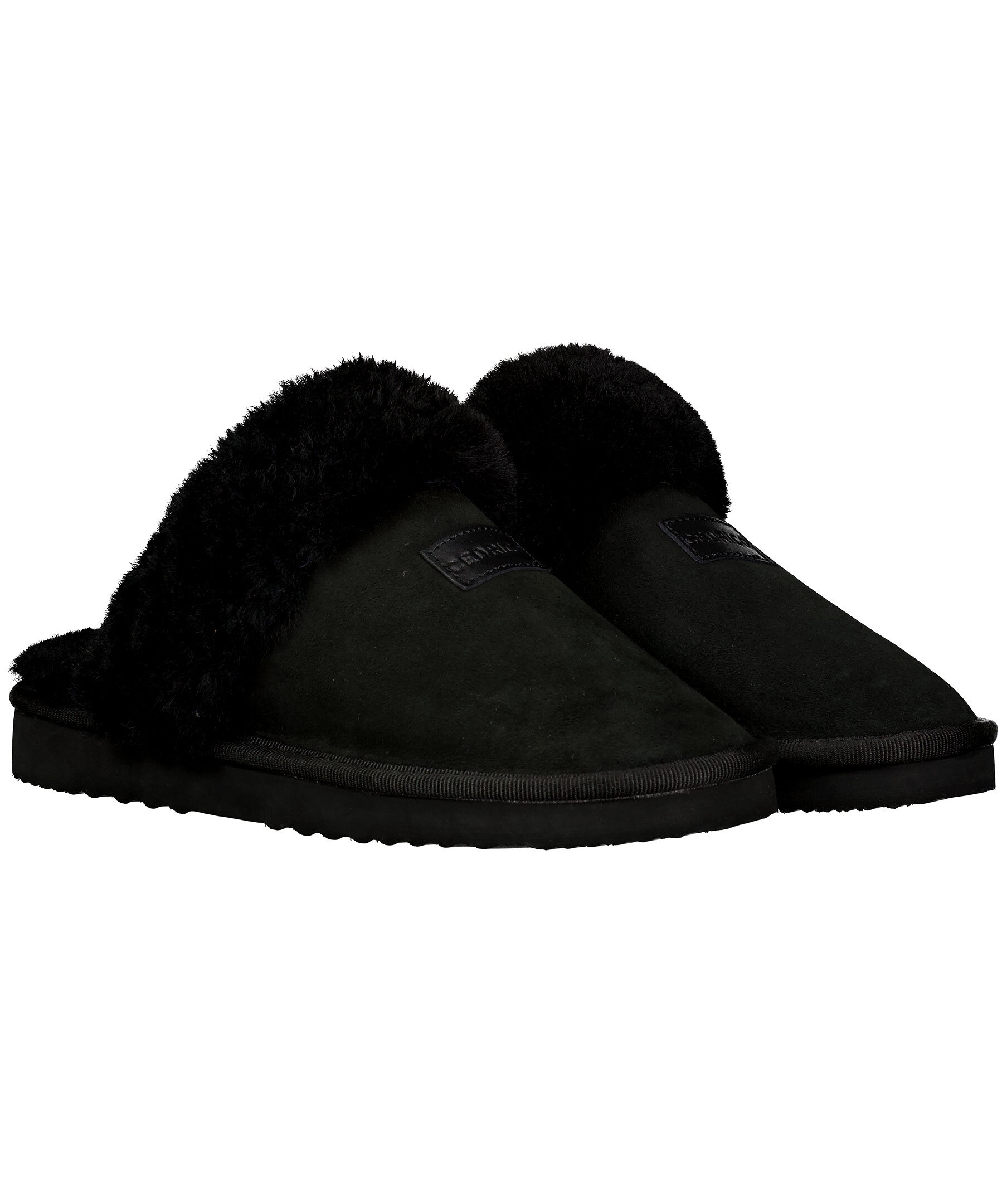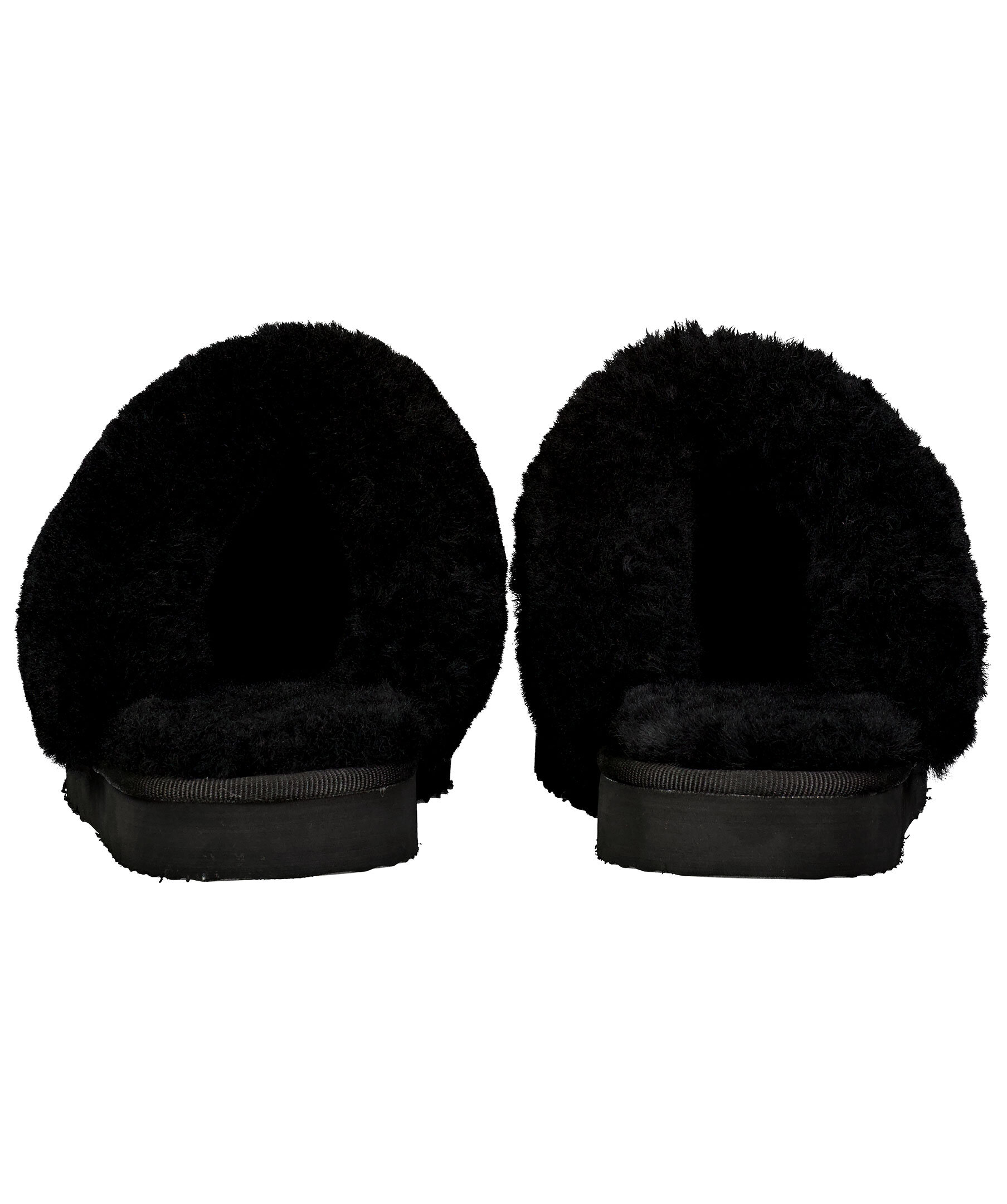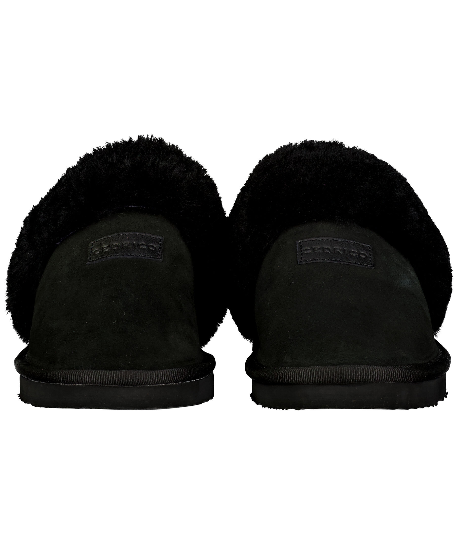 Svarta innetofflor i mjuk lammkvalitet från Cedrico. Tillverkade i 100% australiskt lammskinn. Broderad logotyp på patch i svart läder. Fodrade med fluffig lammpäls och har en sula i svart, mjukt gummimaterial.