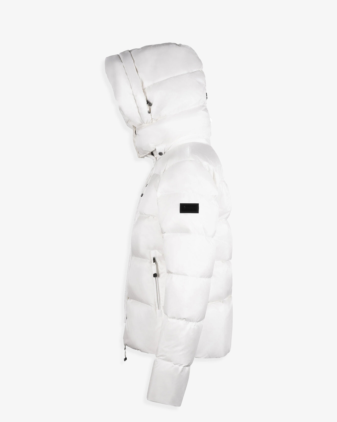 Dunjacka i färgen Cloud White från Cedrico. Jackan stängs med dold tvåvägsdragkedja och tryckknappar och har avtagbar huva med dragsko, två sidfickor med dragkedja, en bröstficka med dragkedja samt logotyp på vänster ärm. Vattenavvisande. Tillverkad i nylon med dunfyllning.