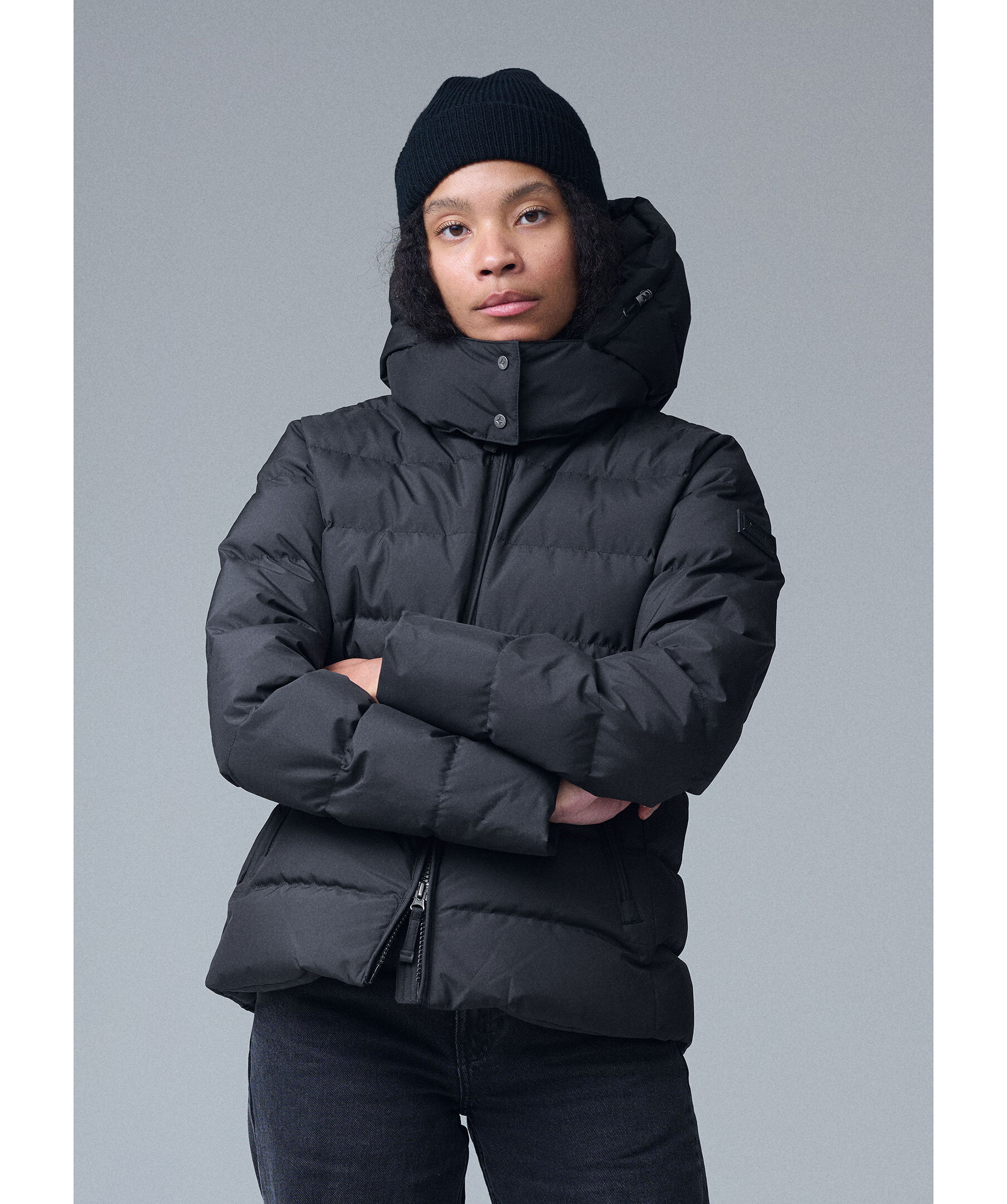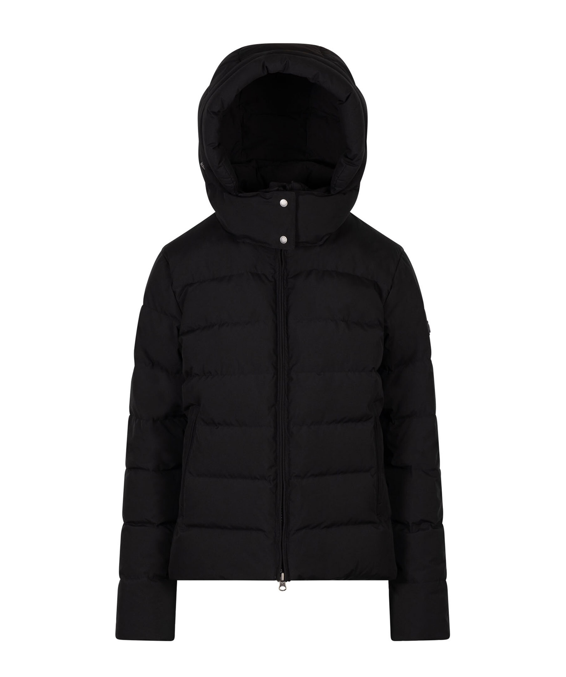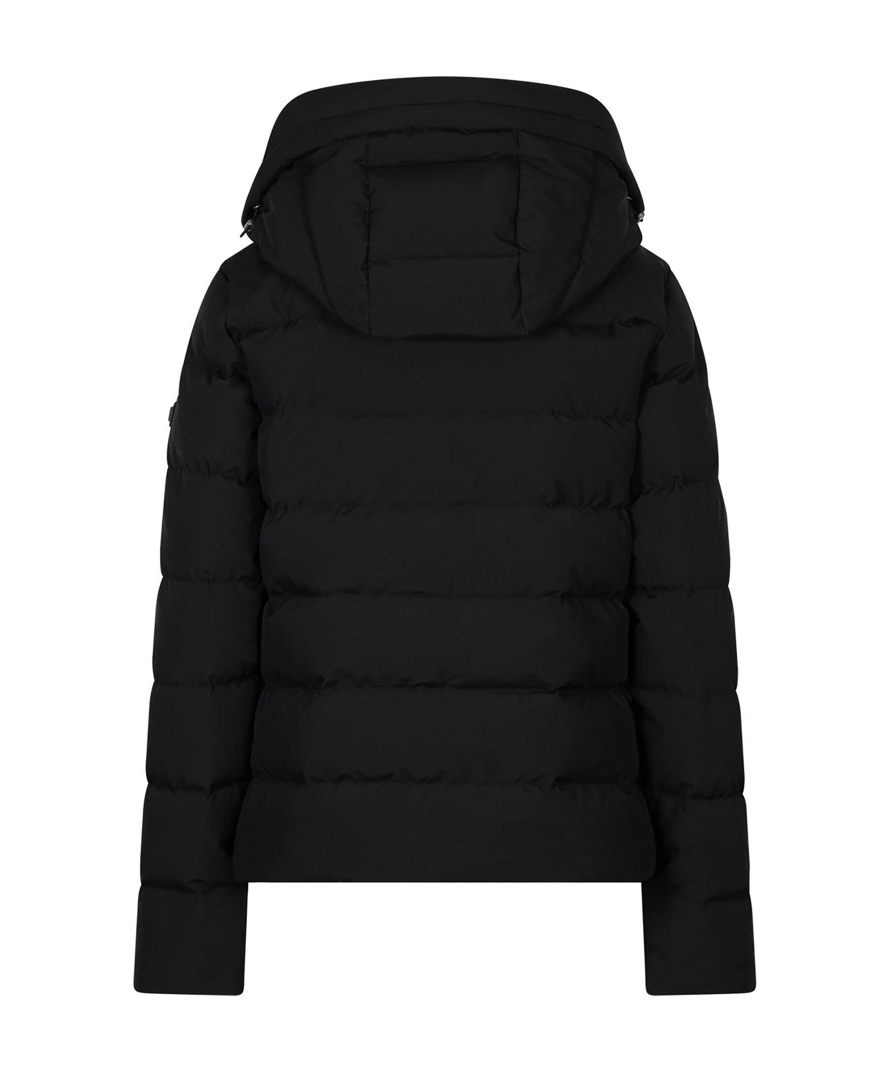 Svart dunjacka från Cedrico. Jackan stängs med tvåvägsdragkedja och har två sidfickor med dragkedja, avtagbar huva med dragsko och logotyp på vänster ärm. Tillverkad i polyester med dunfyllning.