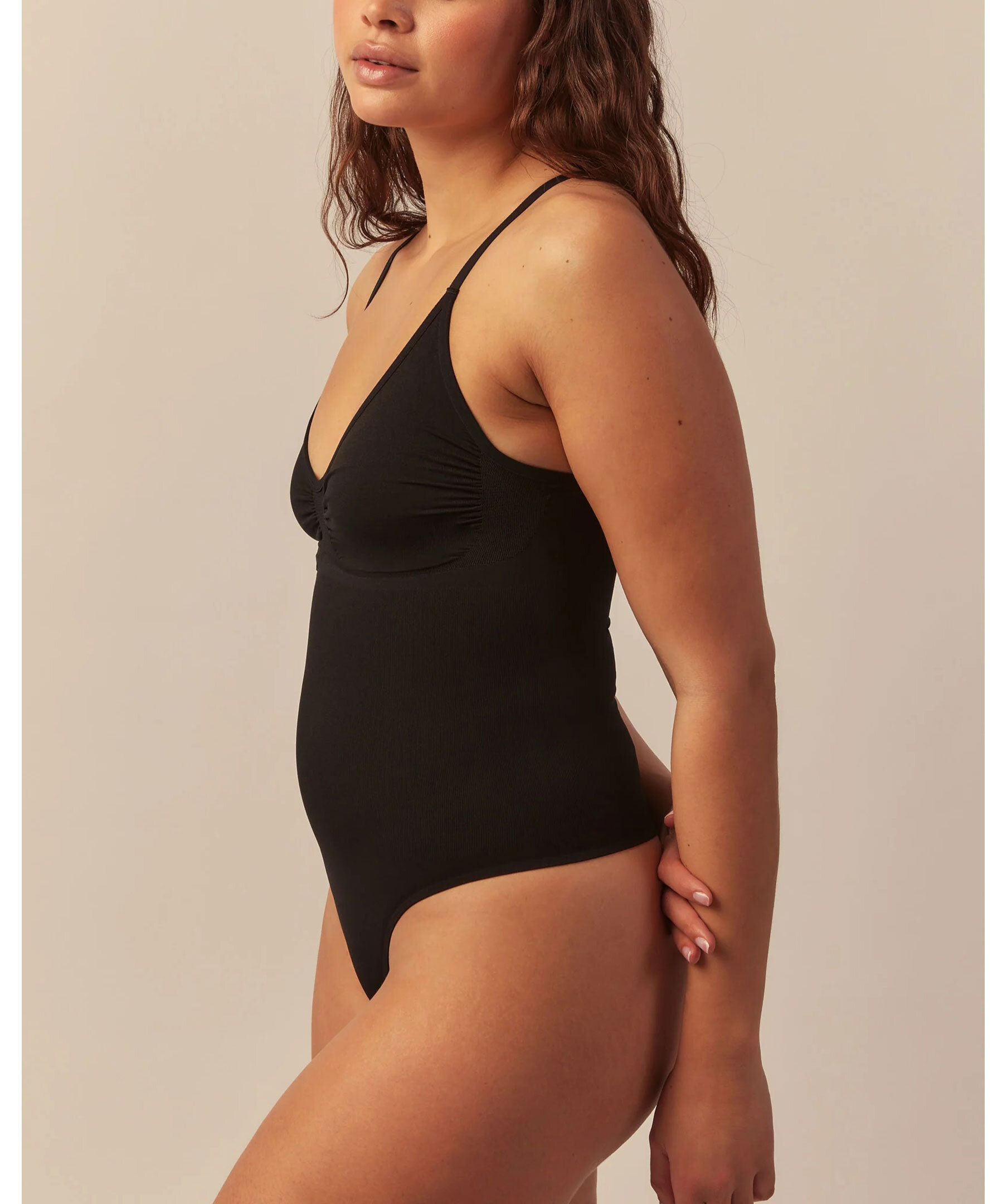 Svart helkropps-bodysuit från Cheri som mjukt formar mage, rygg och byst, samtidigt som den ger en sömlös bas under alla outfits. Perfekt som lagerplagg för komfort, naturlig form och definierad siluett.