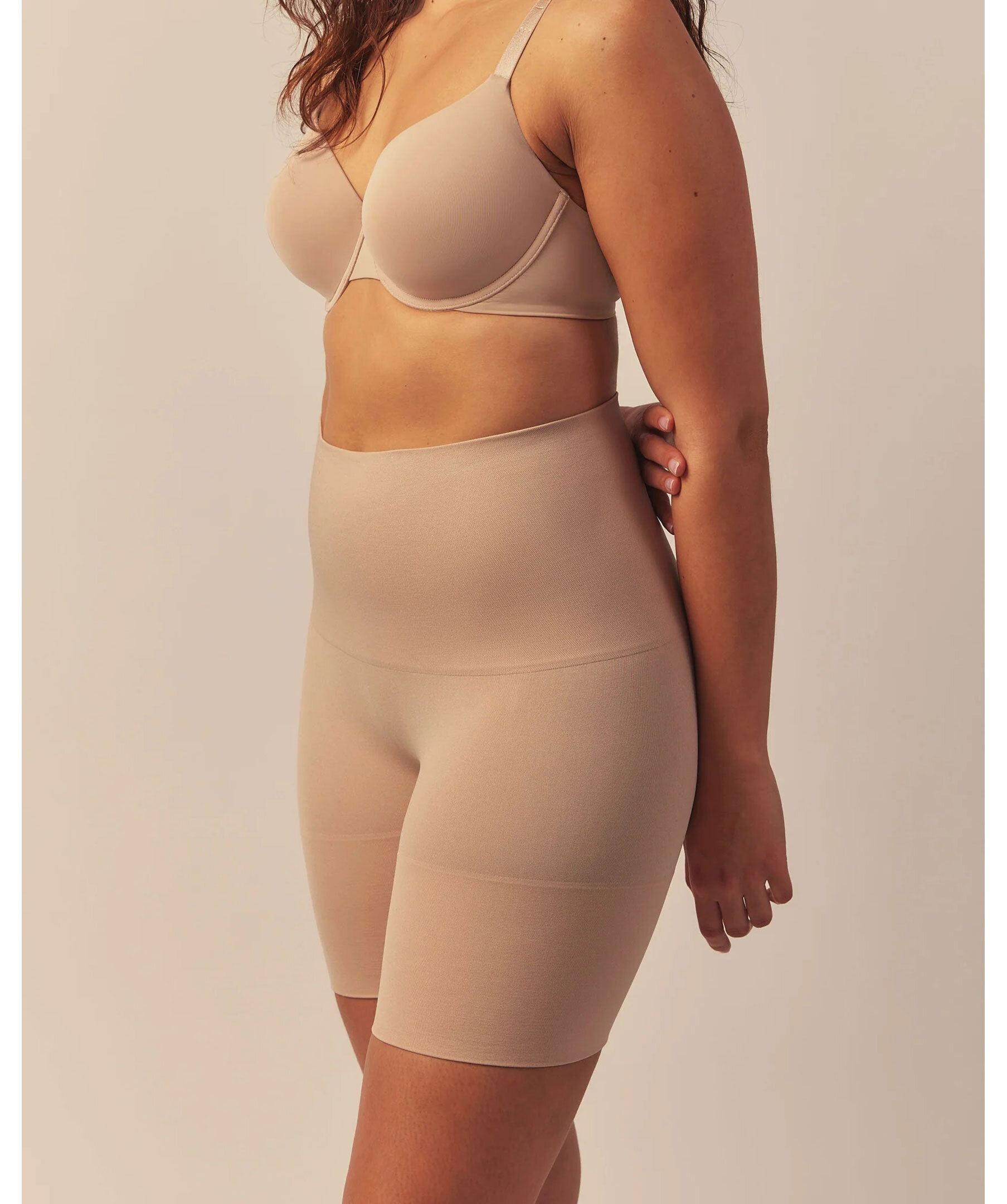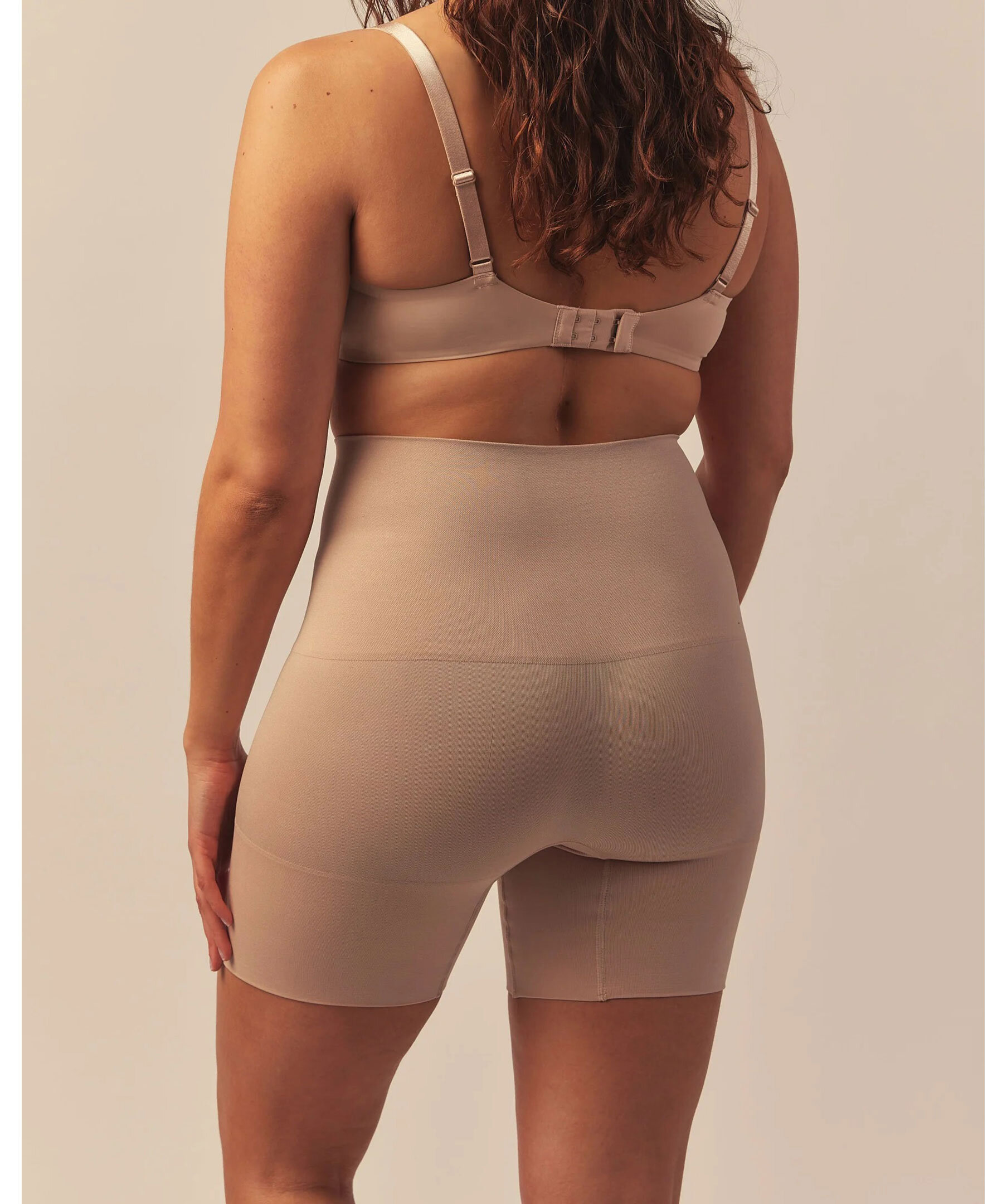 Beigea högmidjade shorts från Cheri som ger lätt formande stöd för mage, lår och rumpa. Designade för osynlig användning under klänningar eller byxor, de lyfter och slätar samtidigt som de är mjuka, lätta och andas.