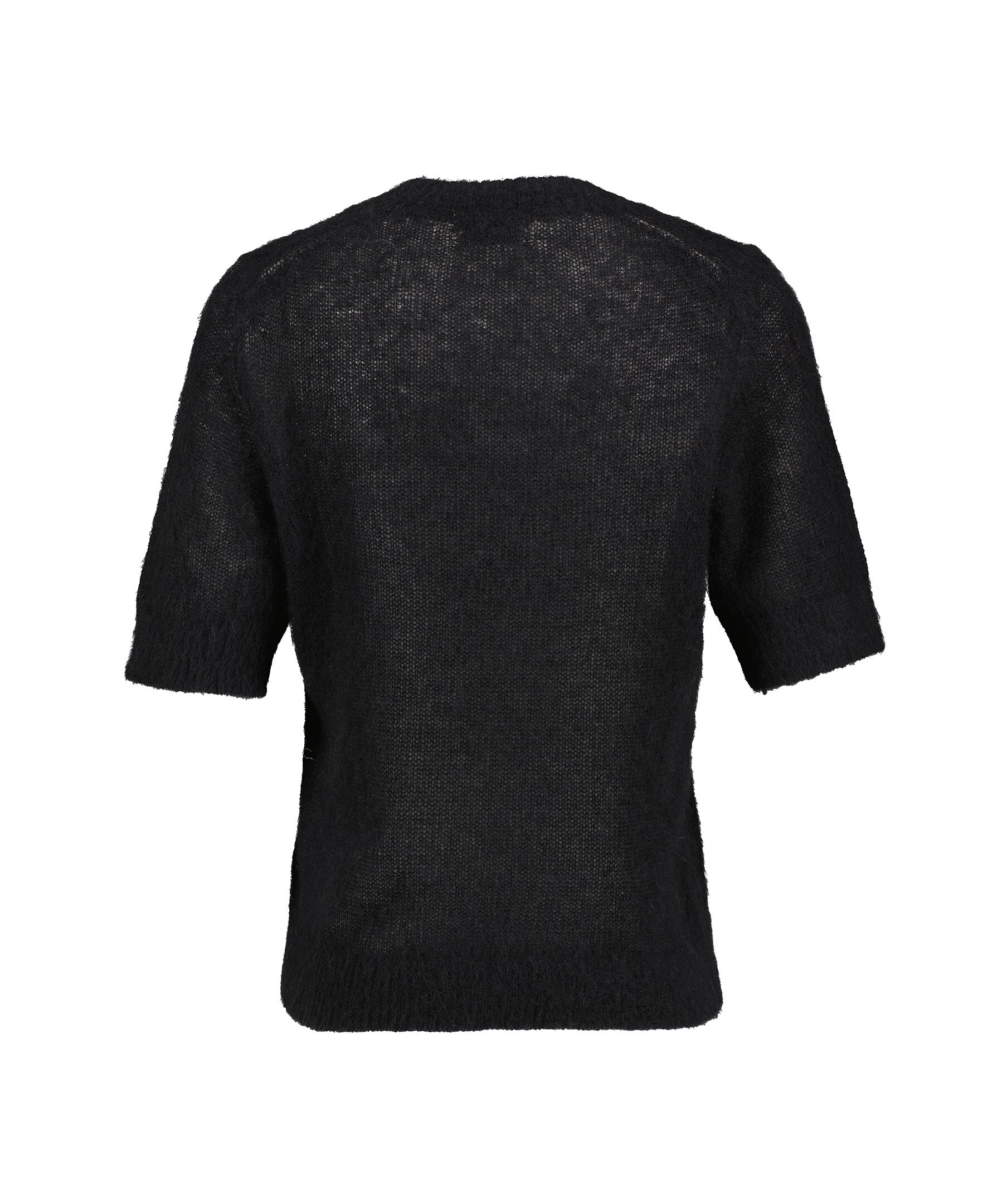 Svart stickad topp från Dagmar. Toppen har armbågslånga ärmar, rund, ribbstickad halsringning och är tillverkad i borstad alpackablandning.