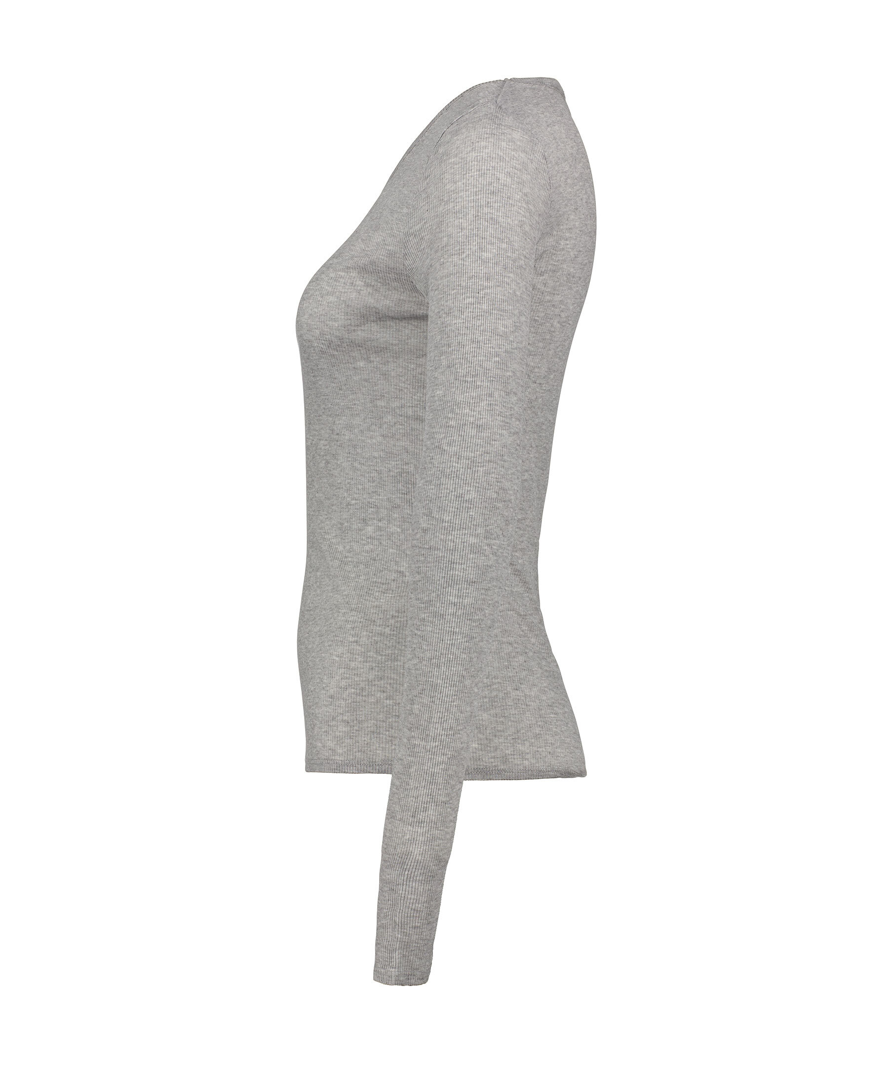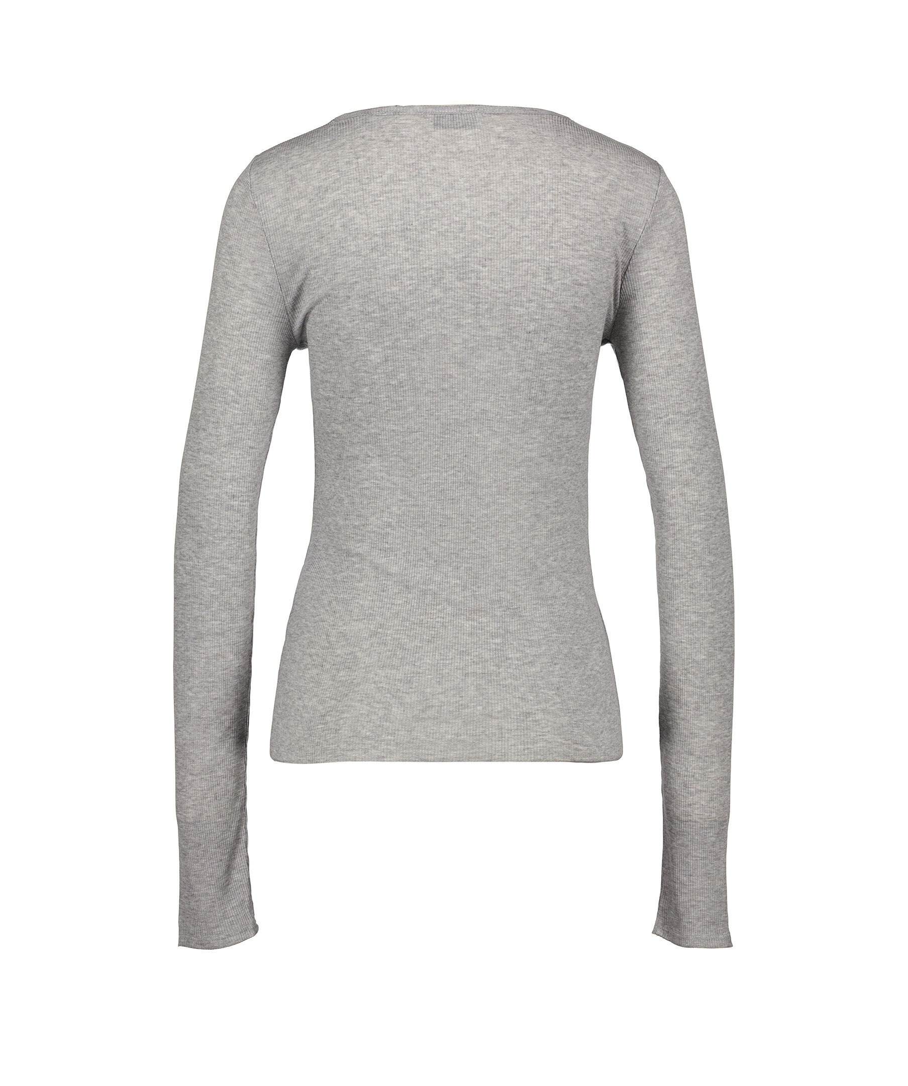 Grå, ribbstickad och långärmad tröja från Dagmar. Tröjan har en rundad halsringning och är tillverkad i lyocell.