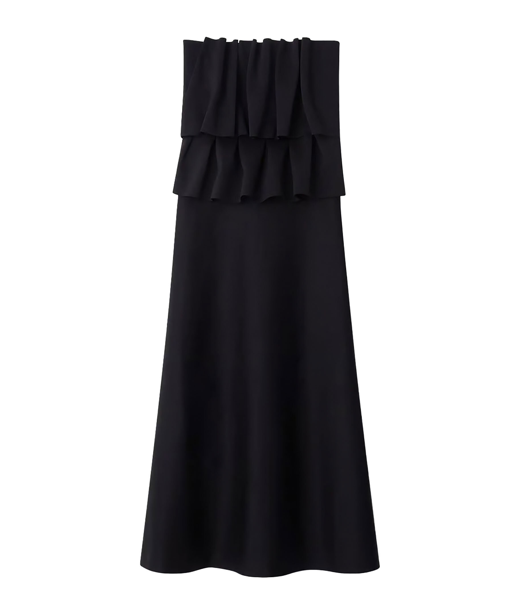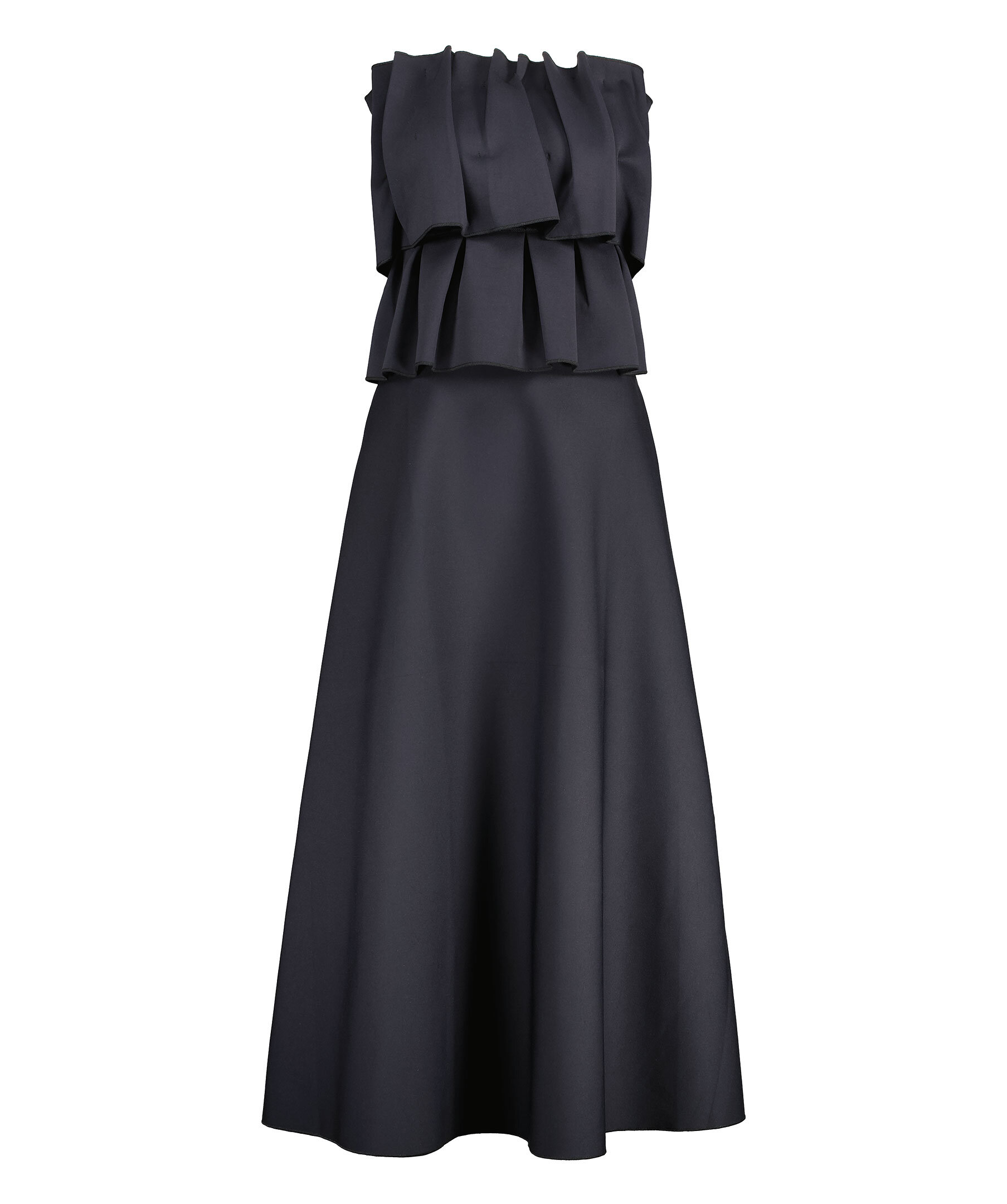 Svart tubklänning från Dagmar. Klänningen har konstfullt draperade detaljer upptill och en lång siluett. tillverkad i en återvunnen polyamid- och elastanblandning.