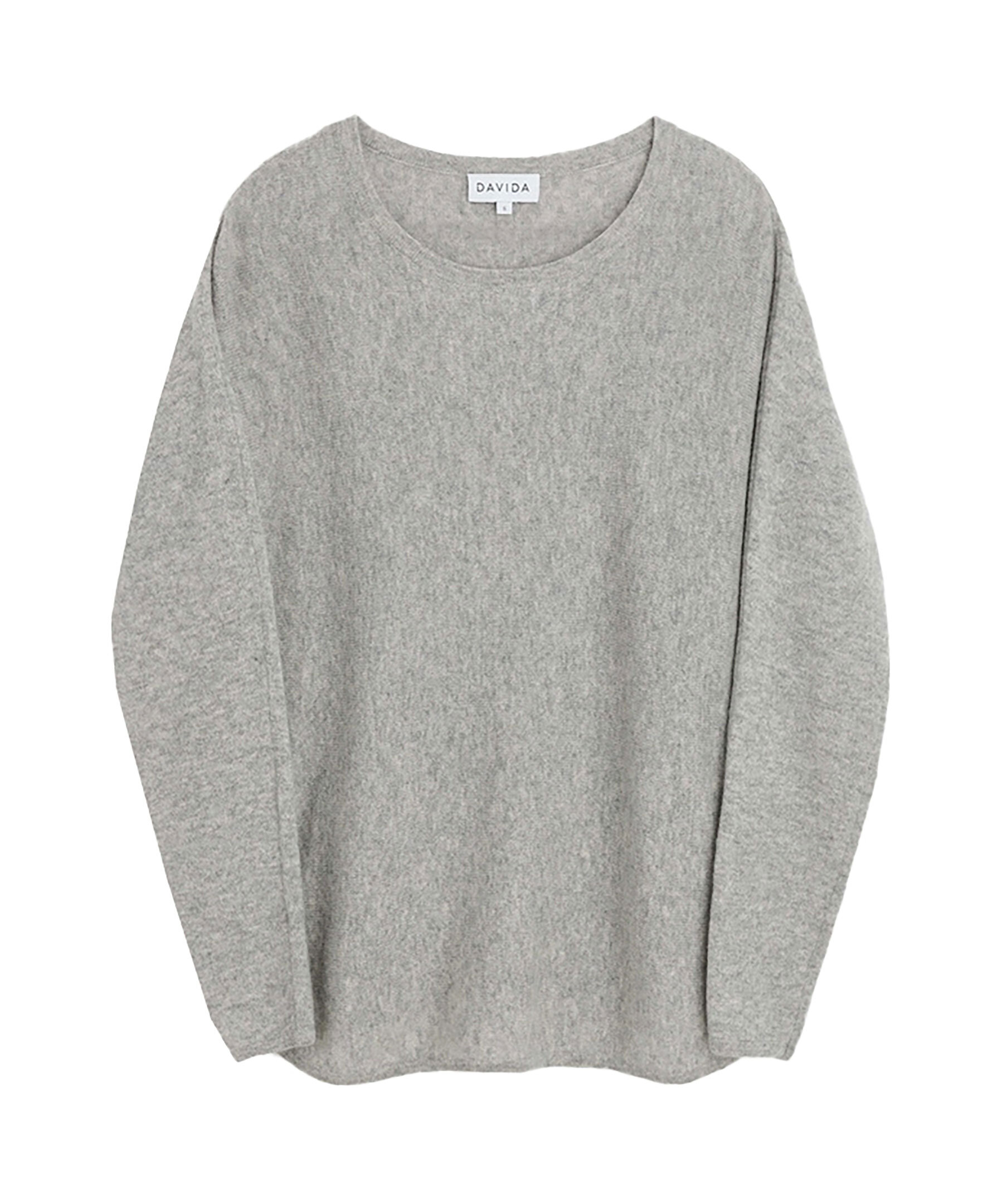Grå, stickad och långärmad tröja från Davida Cashmere. Tröjan har rundad halsringning och långa ärmar. Tillverkad i 100% kashmir.